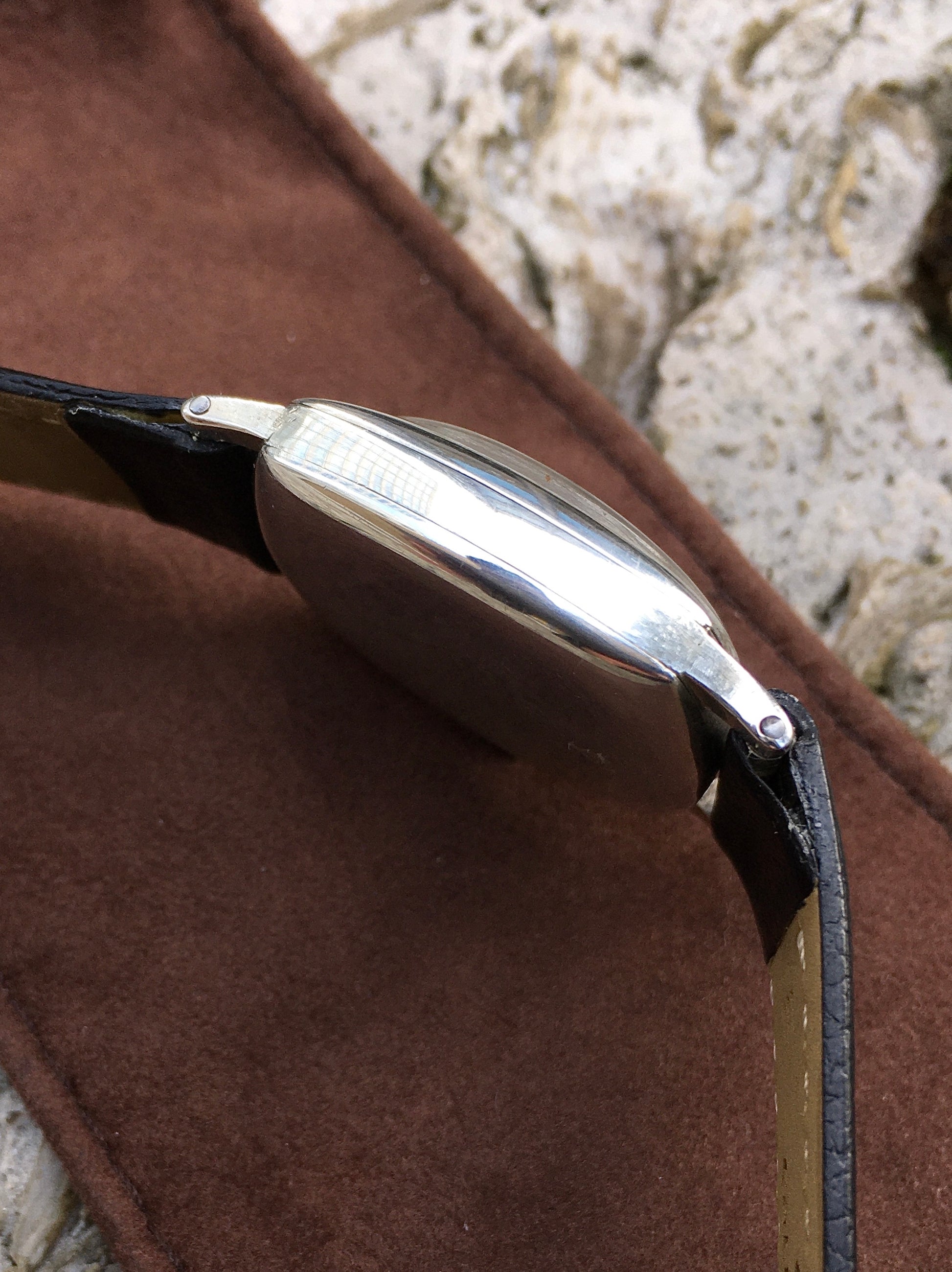 The white enamel dial is in fabulous condition considering it’s age and features a ‘chemin de fer’ minute track, black Breguet numerals, matching Breguet hands and a sub seconds dial at 6
