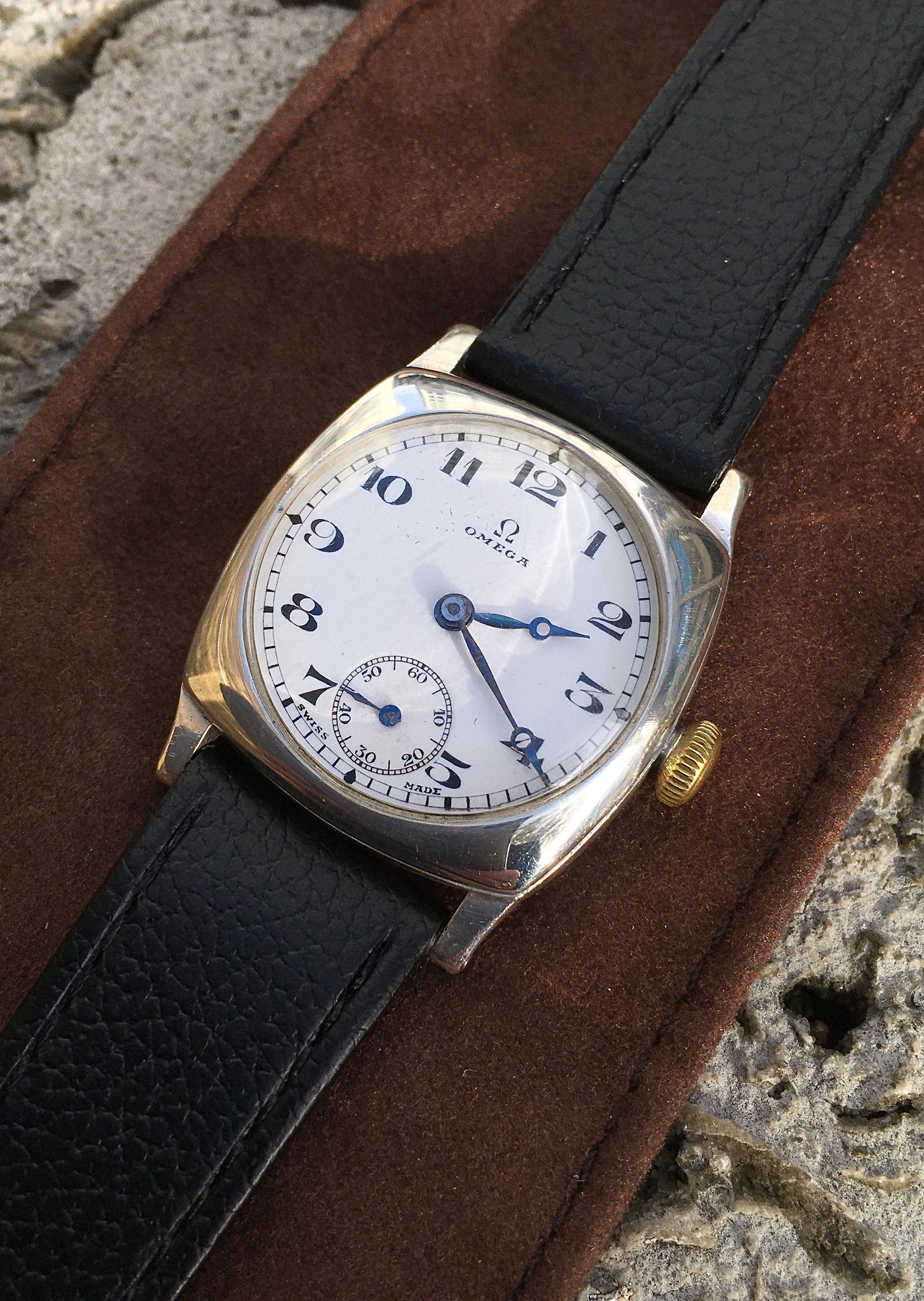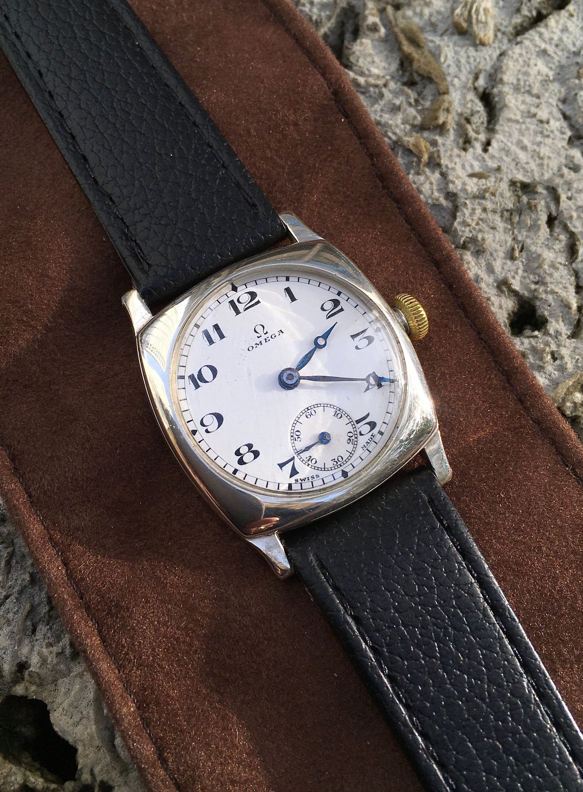A fabulous 1920s Sterling Silver cushion case Omega wristwatch