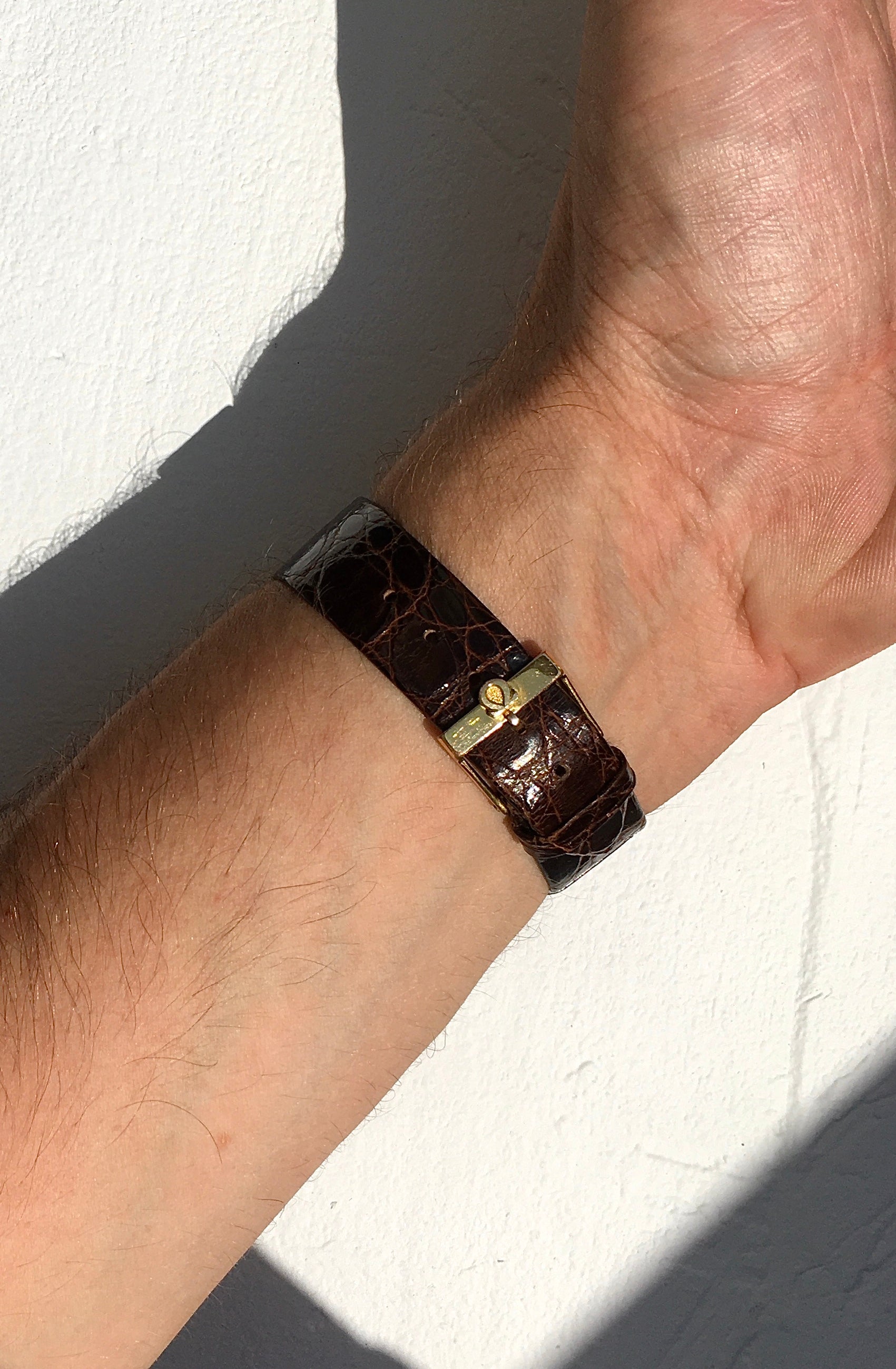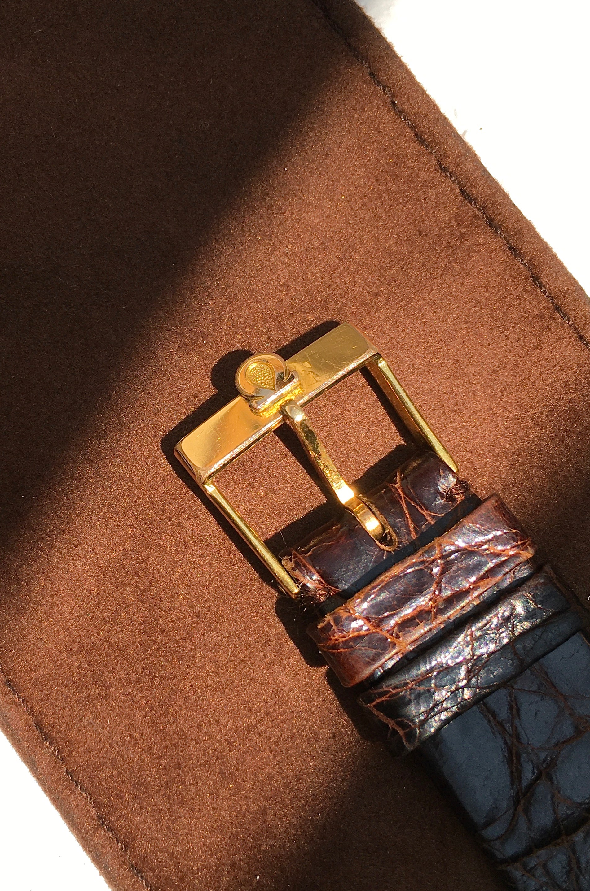 Fitted is a brown crocodile leather Bucherer strap of a similar vintage to the watch. No doubt the two have been together for many years