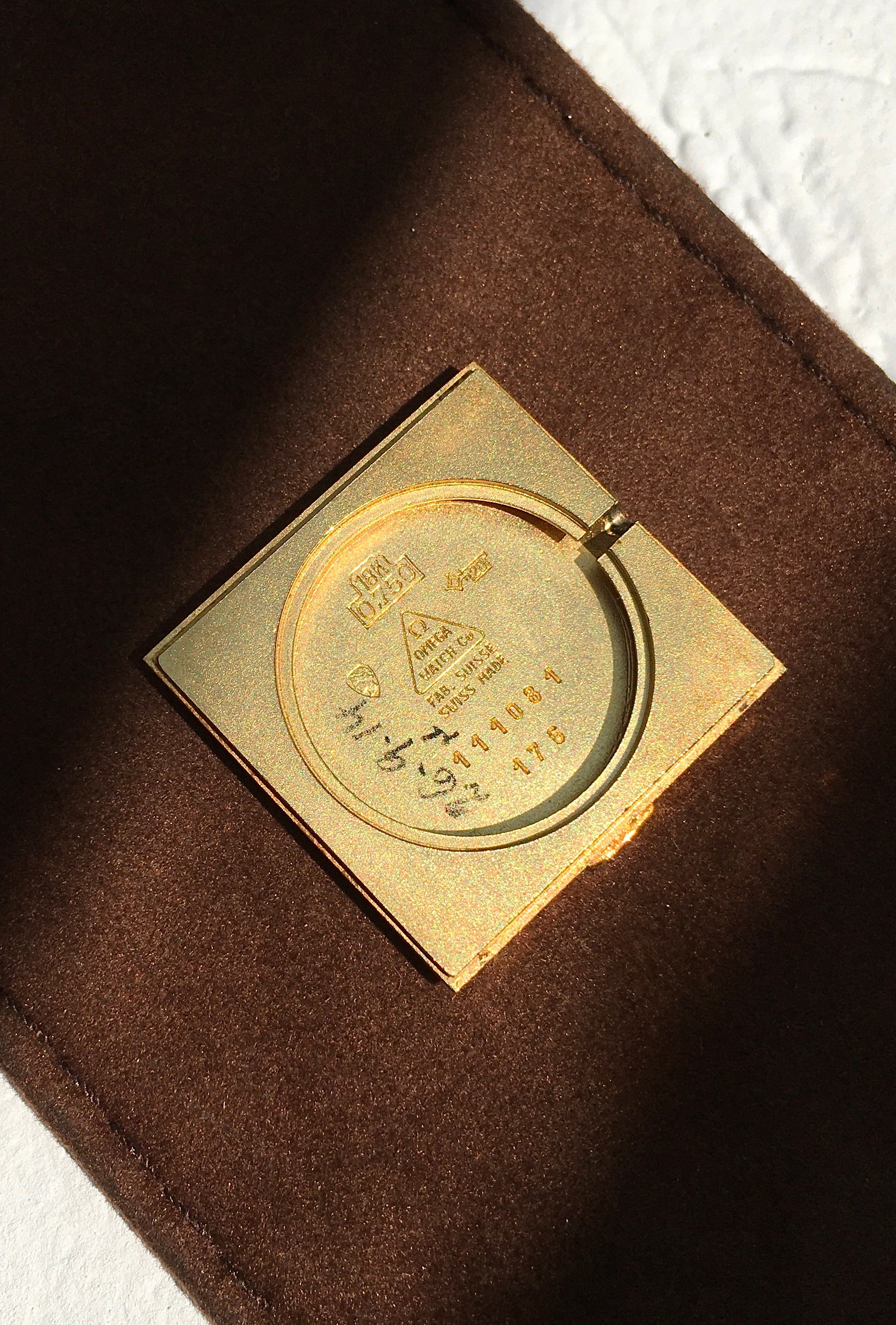 As well as being stamped ‘OR 18k’ to the right of the original winding crown (wonderfully aged), the case back is boldly hallmarked to the inside. Alongside the obvious fineness marks is stamped the profile of Helvetia, the female national personification of Switzerland and the county’s hallmark for 18 carat gold