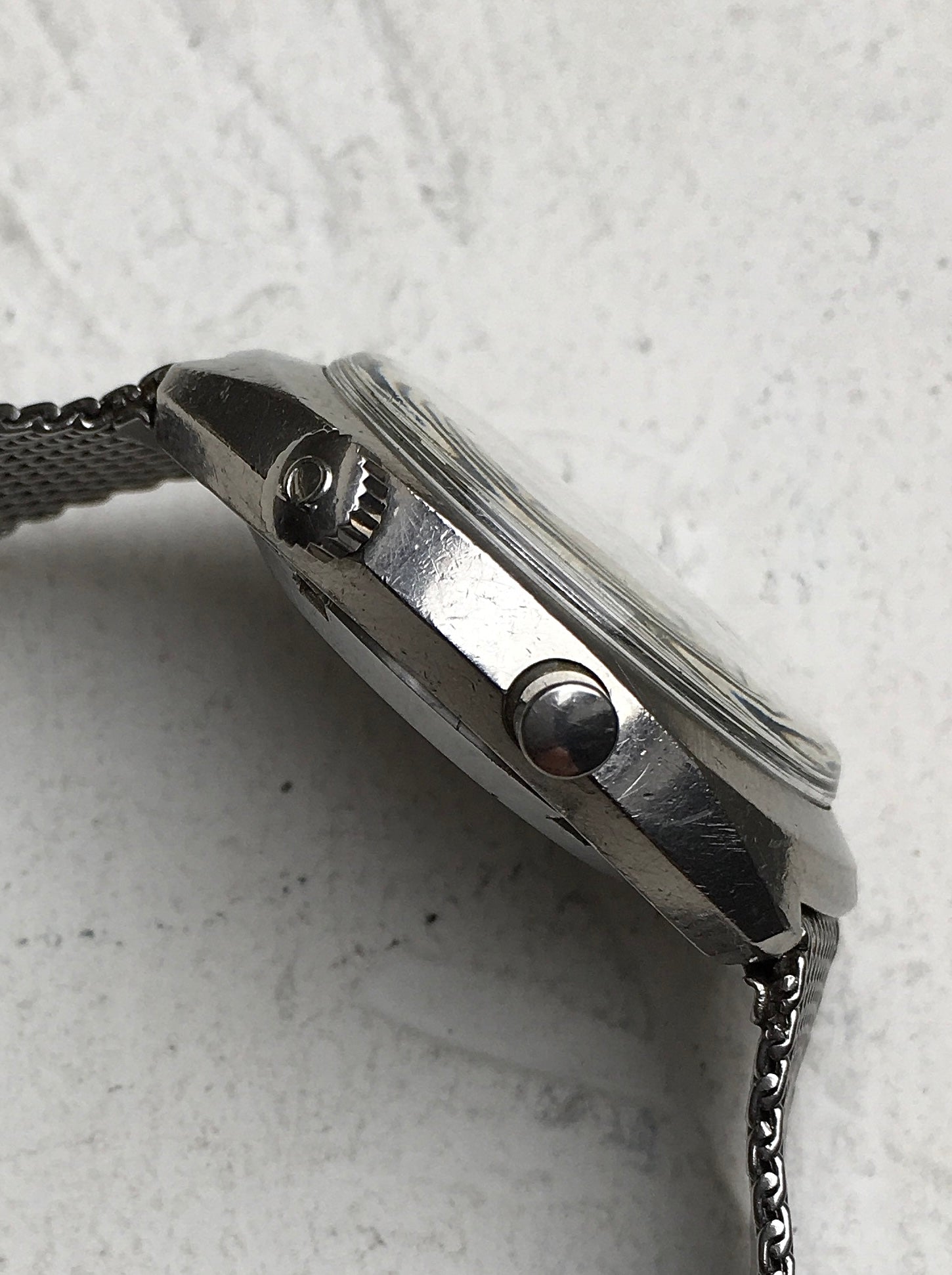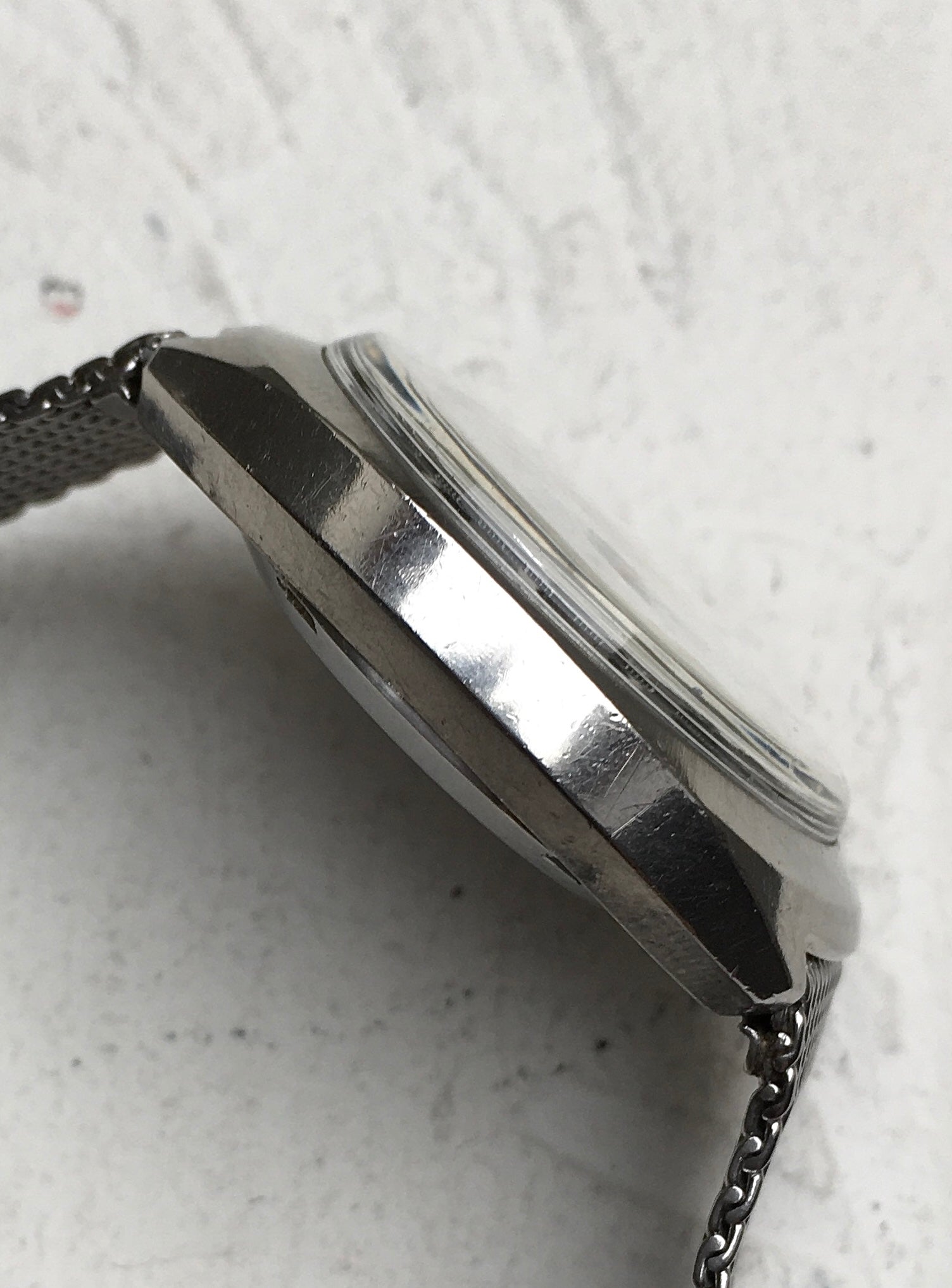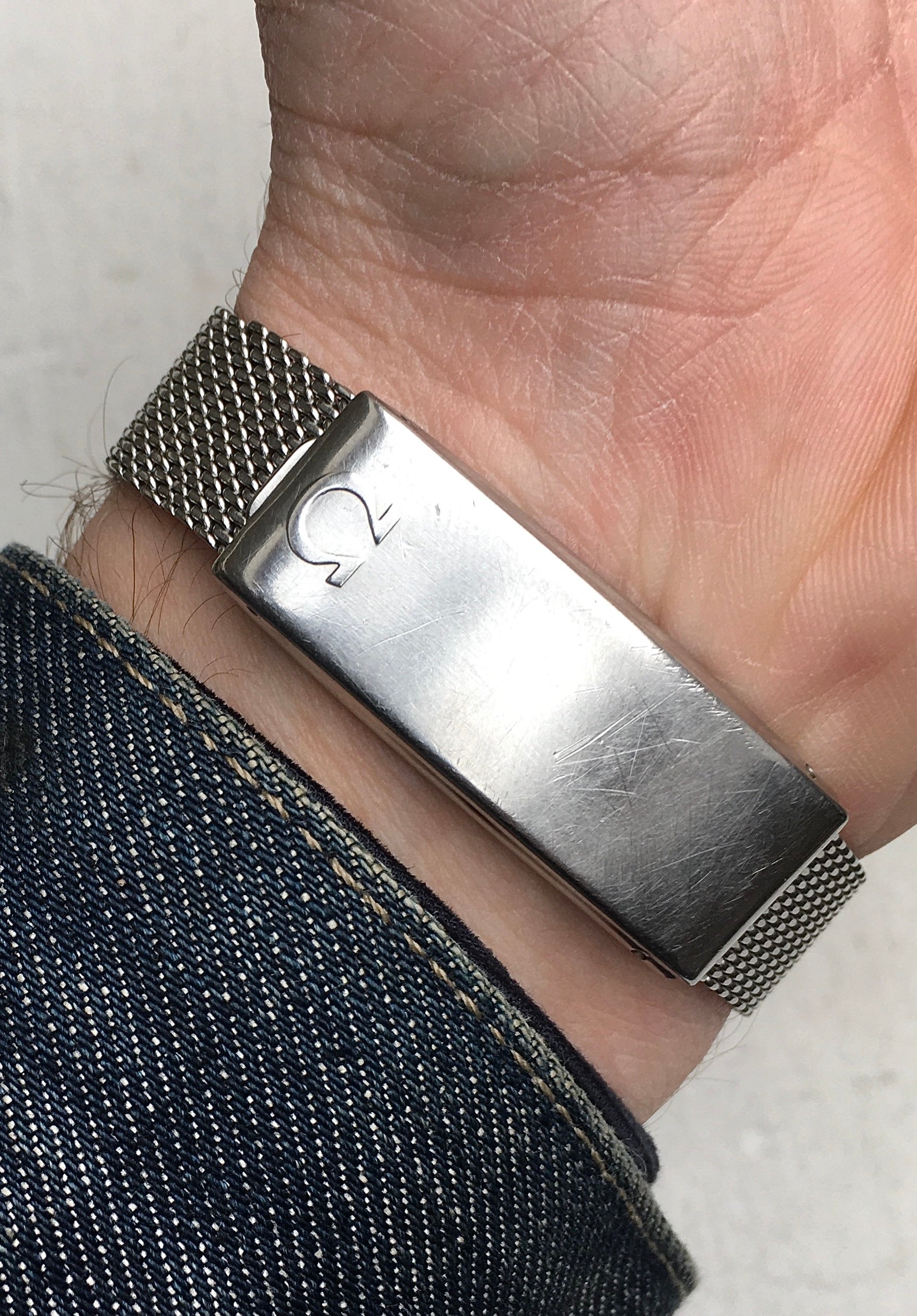 Alongside the rare driver’s dial, the original Milanese mesh bracelet makes this a very special piece. It’s fastened securely by the original Omega adjustable setting deployant/folding clasp
