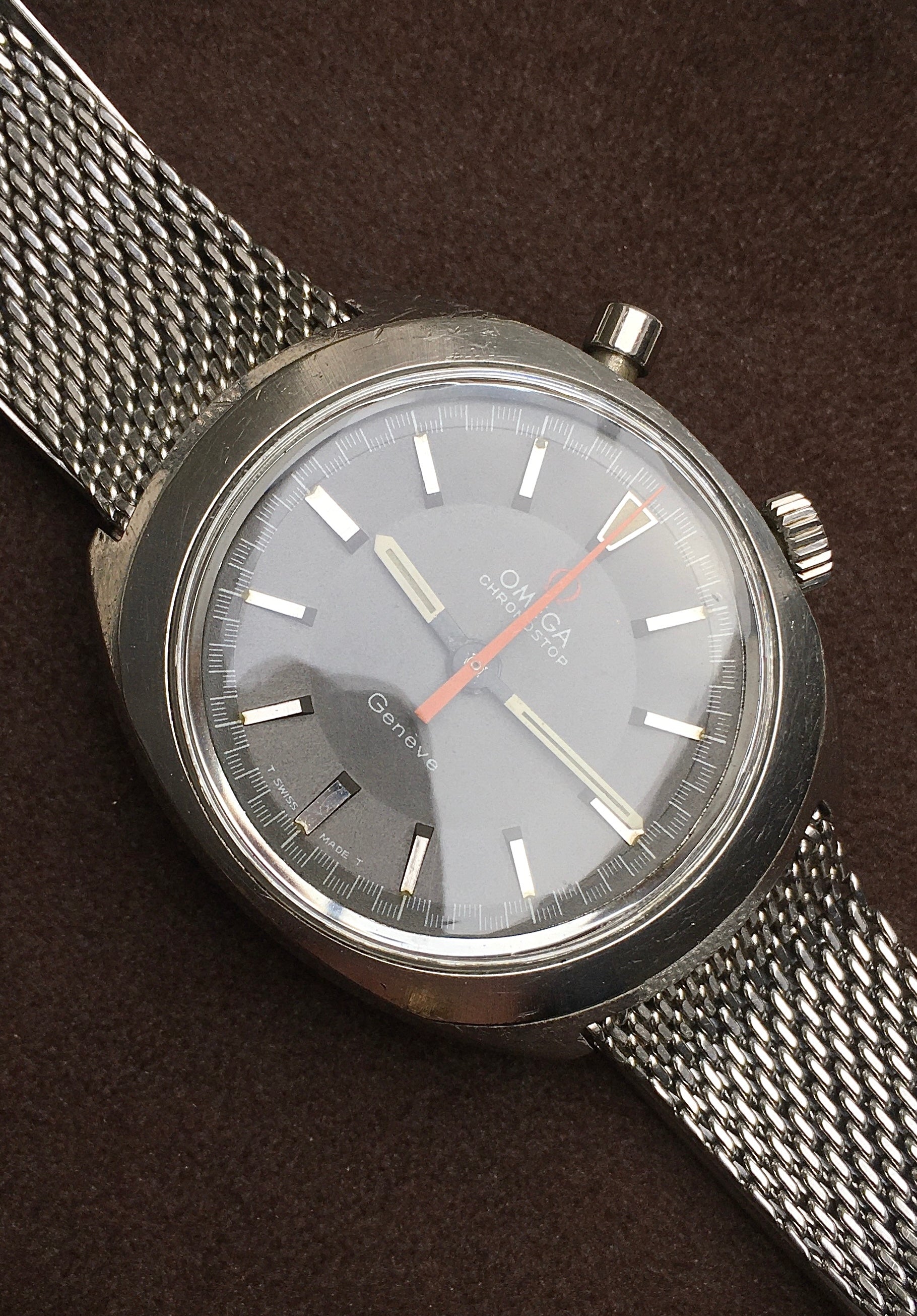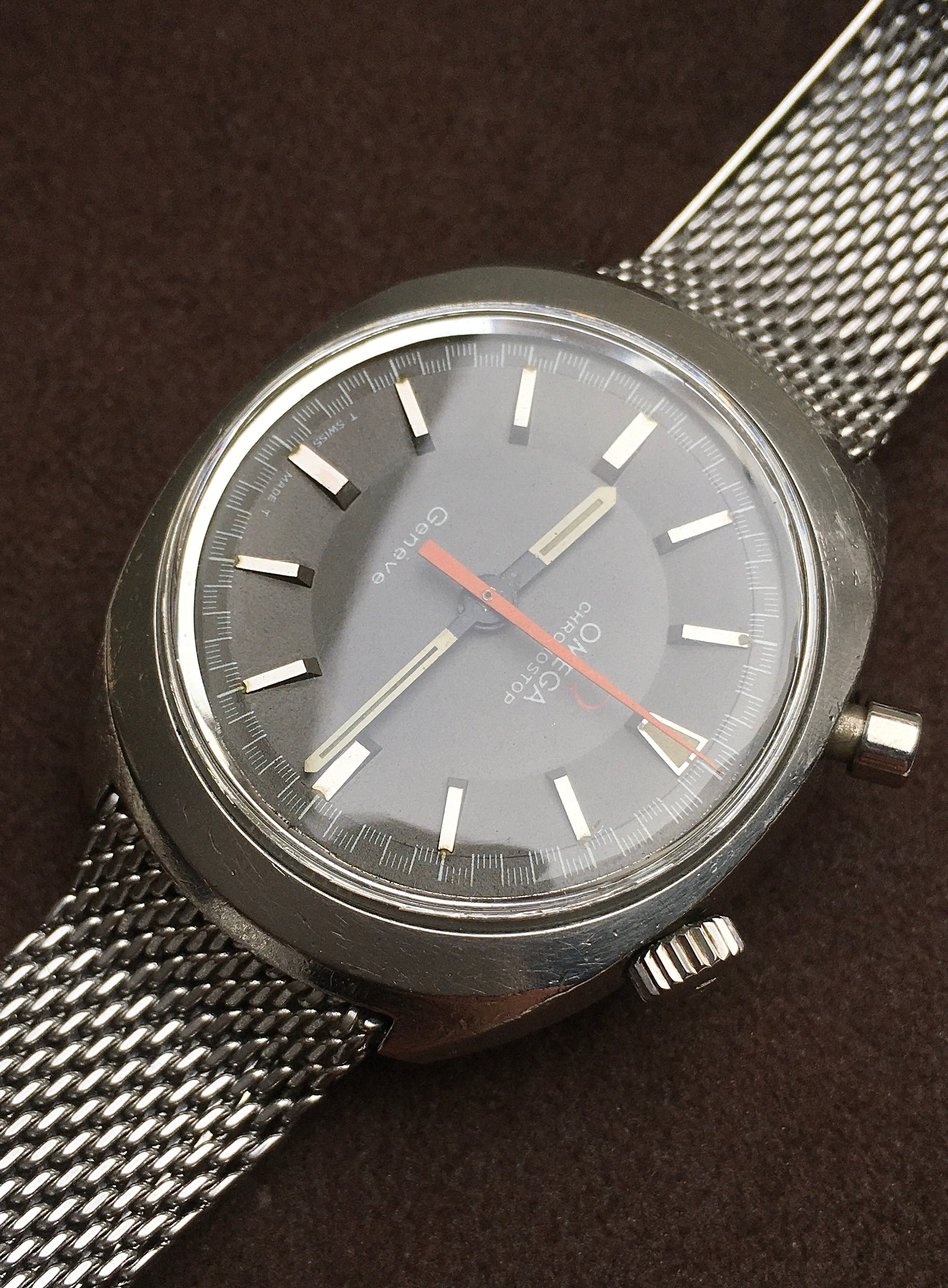 A circa 1967 Omega Chronostop driver’s watch, winner of the 1967 Swiss Watchmaking Federations Honour Prize for ‘chronographs and sport watches’ as well as at the Utrecht Spring Fair for Industrial Aesthetics ins 1968