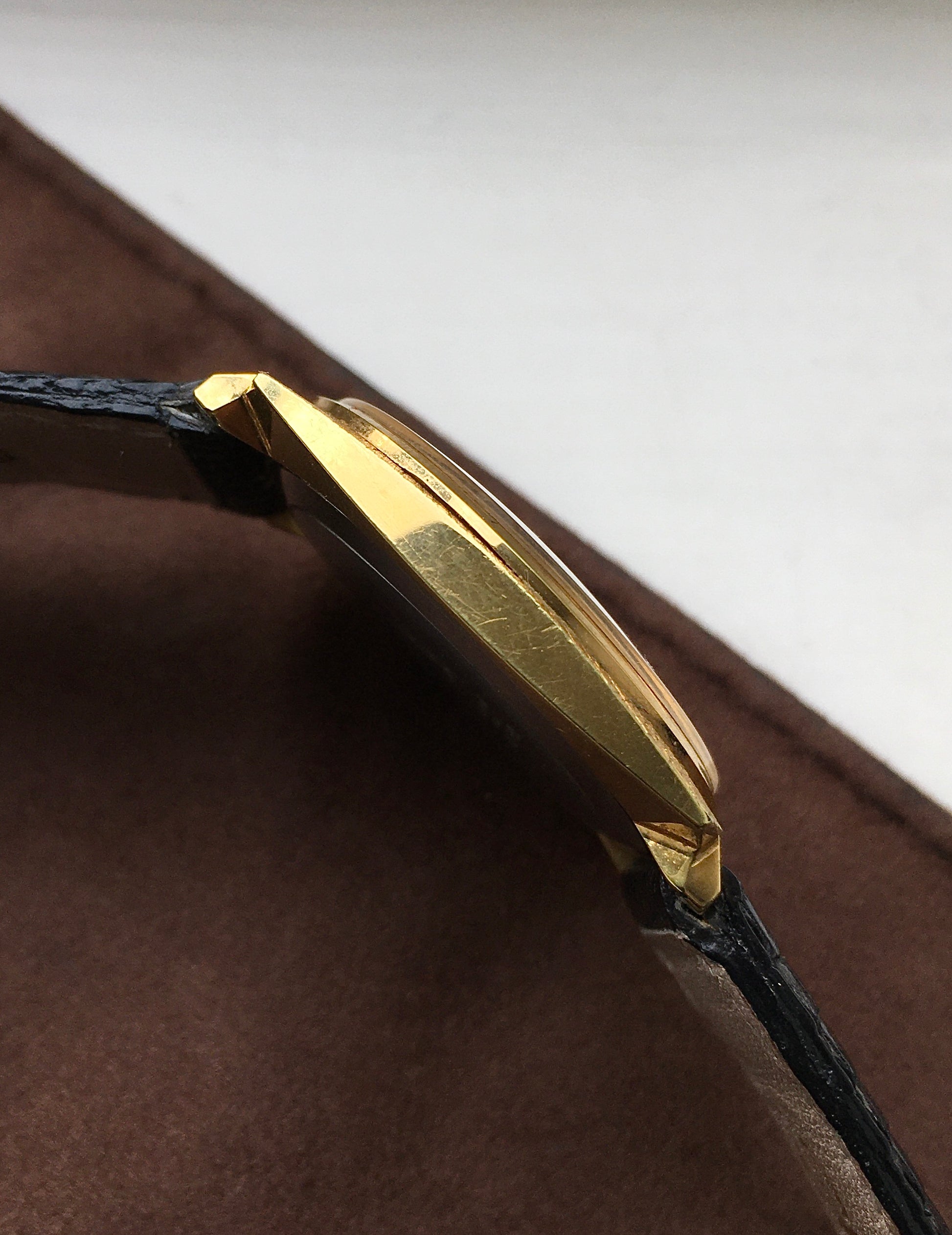 The gold plated case remains in wonderful condition with very few signs of wear and features a mix of a polished and textured ‘sunray’ finish