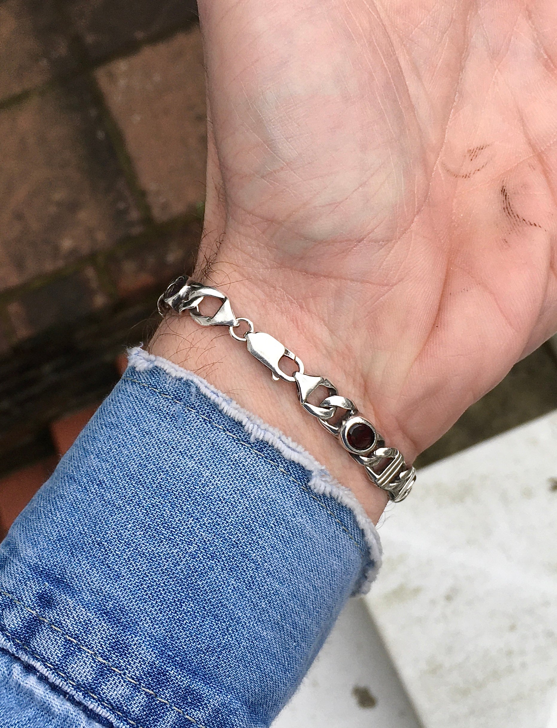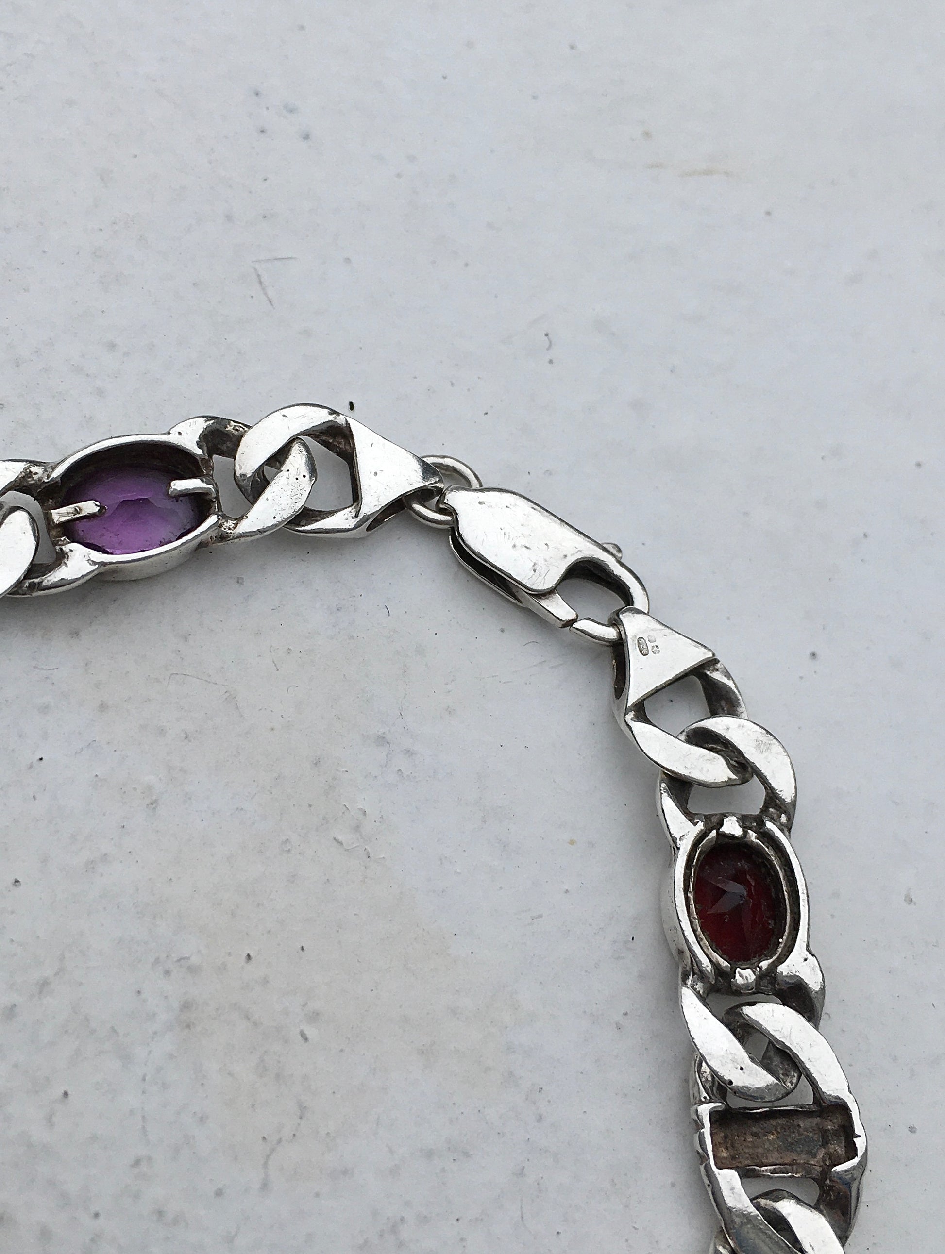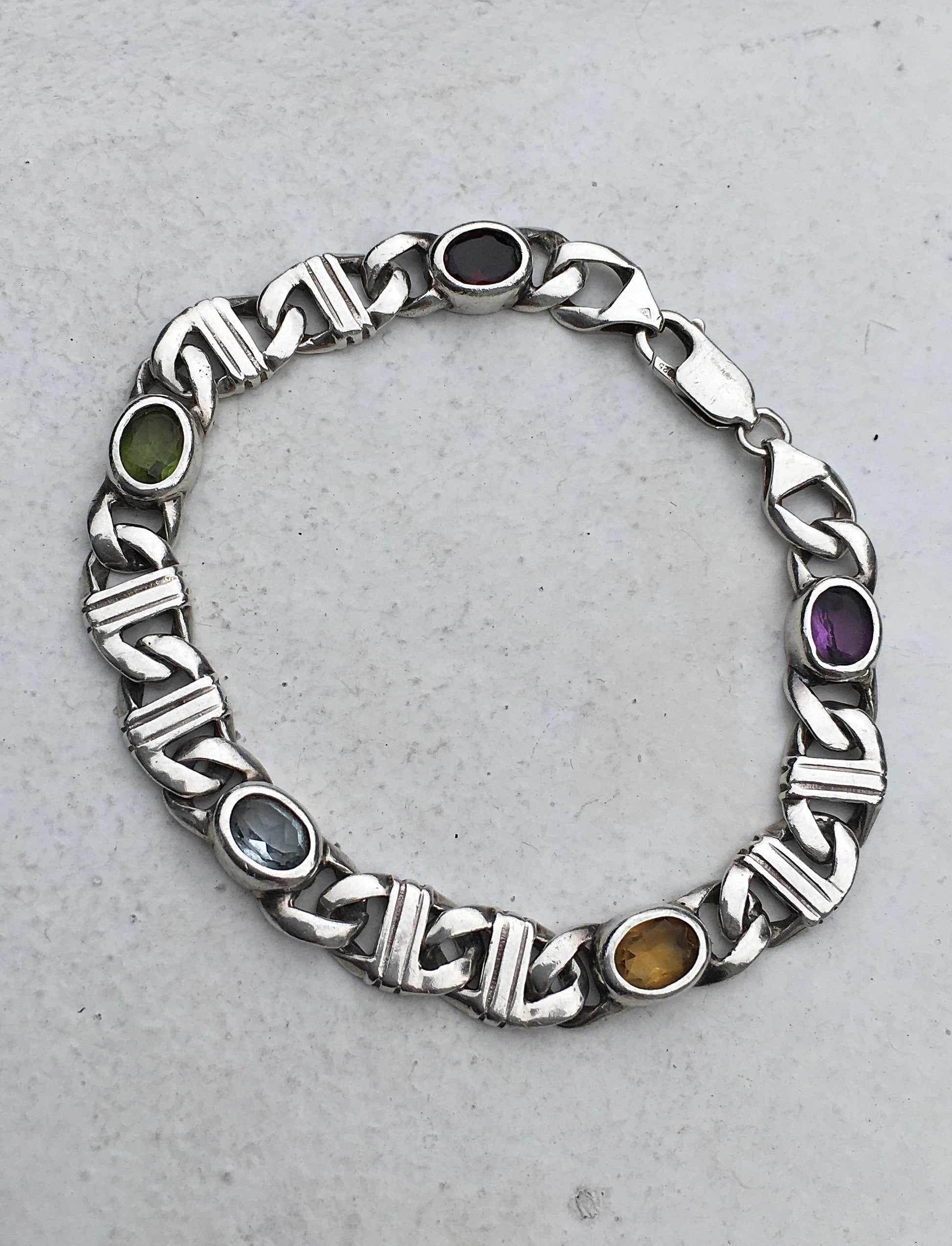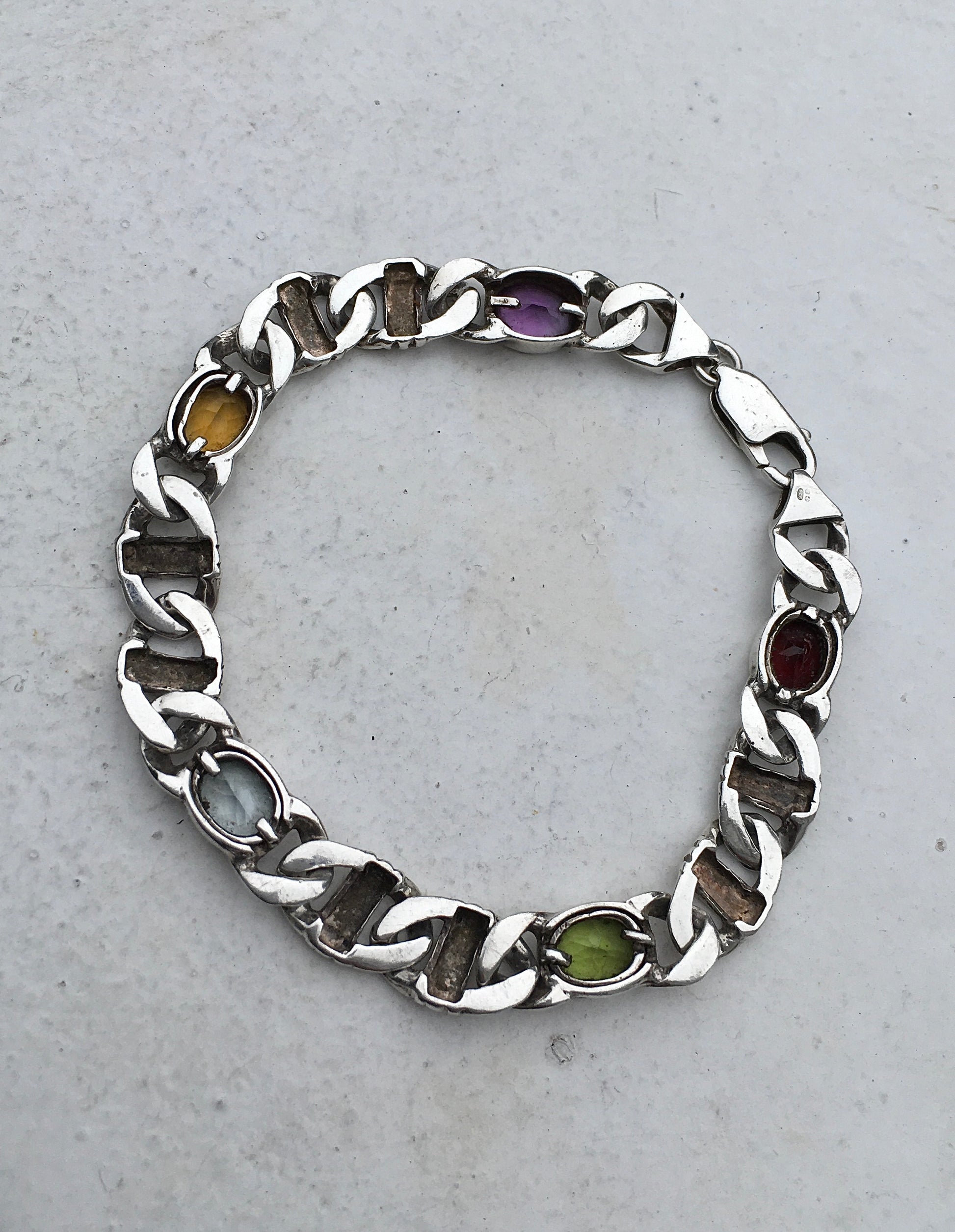 A vintage 1973 sterling silver Mariner link chain set with faceted semi-precious gemstones