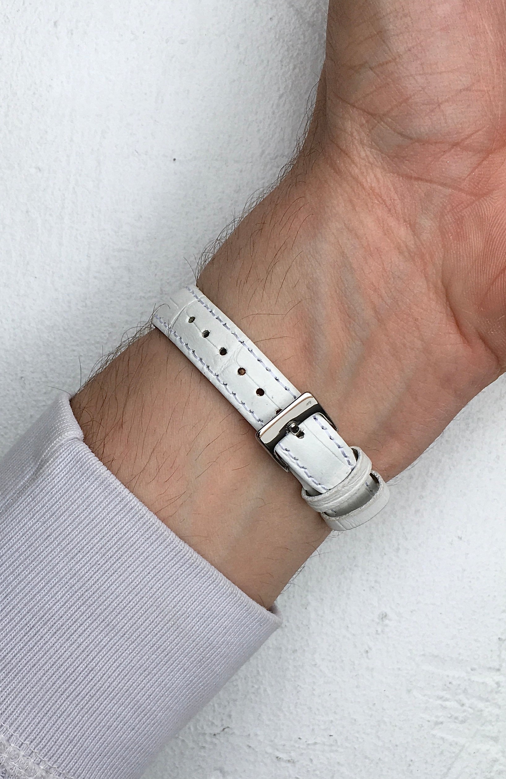 Fitted is brand new pressed white calf skin strap and silver tone buckle