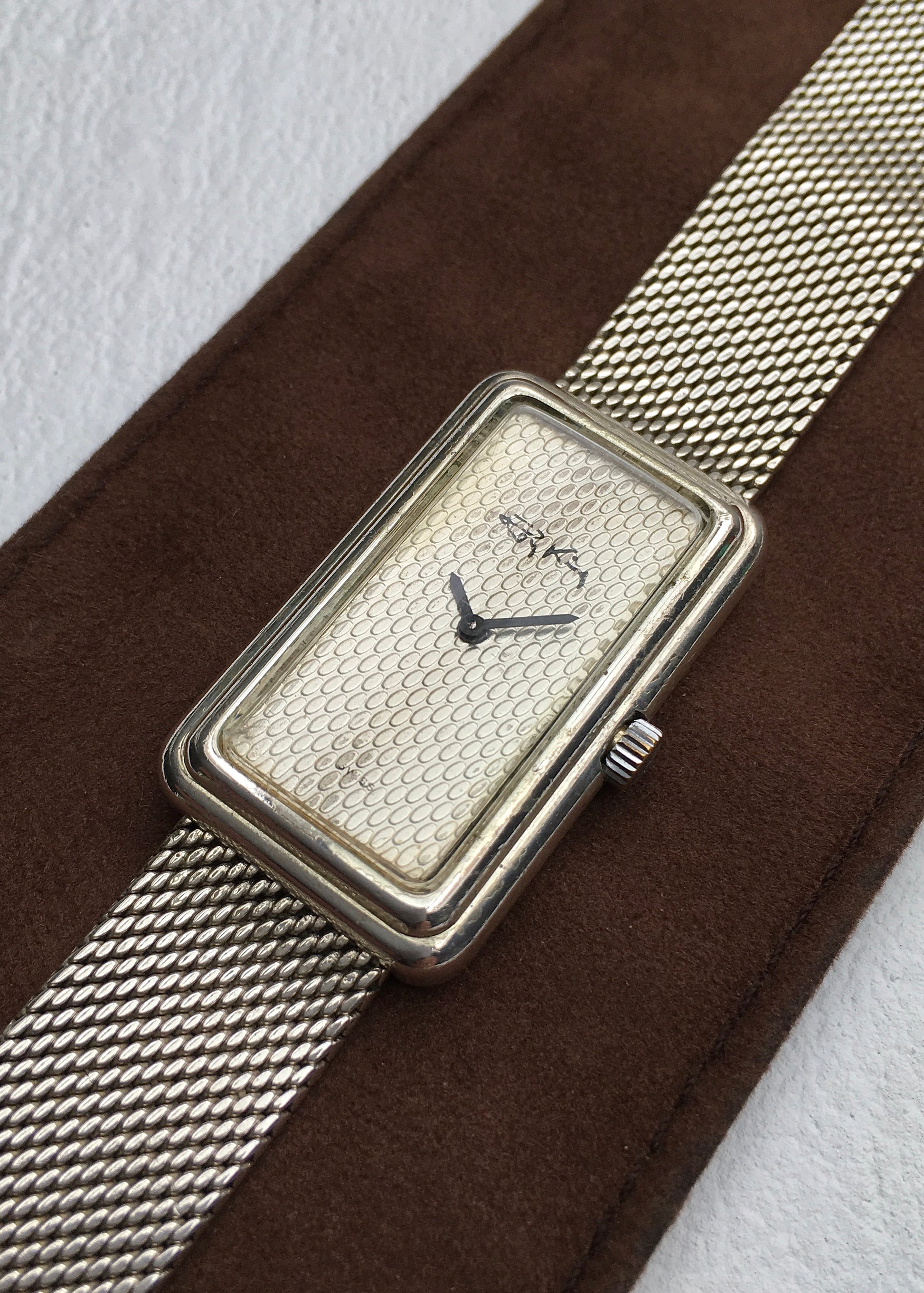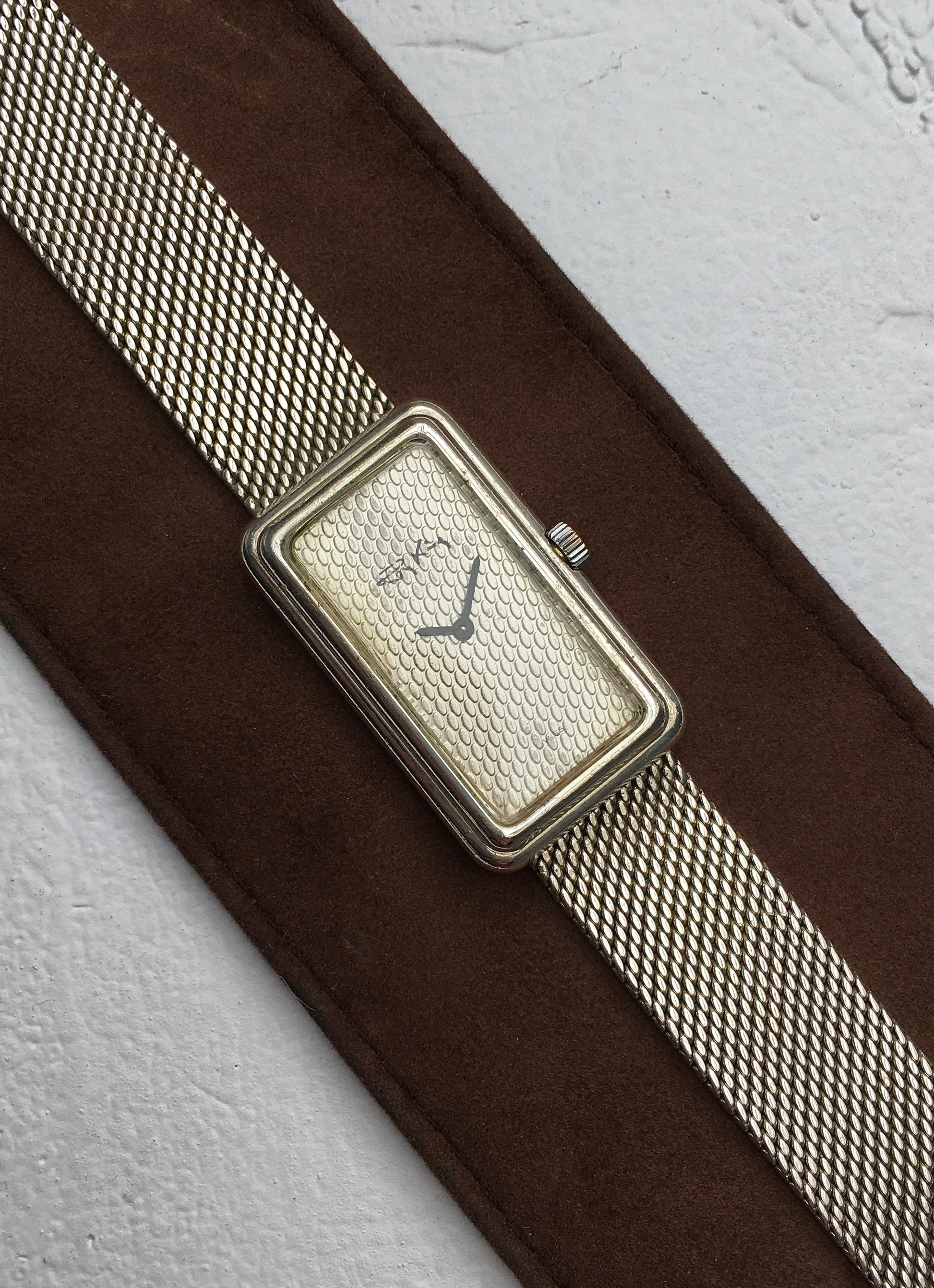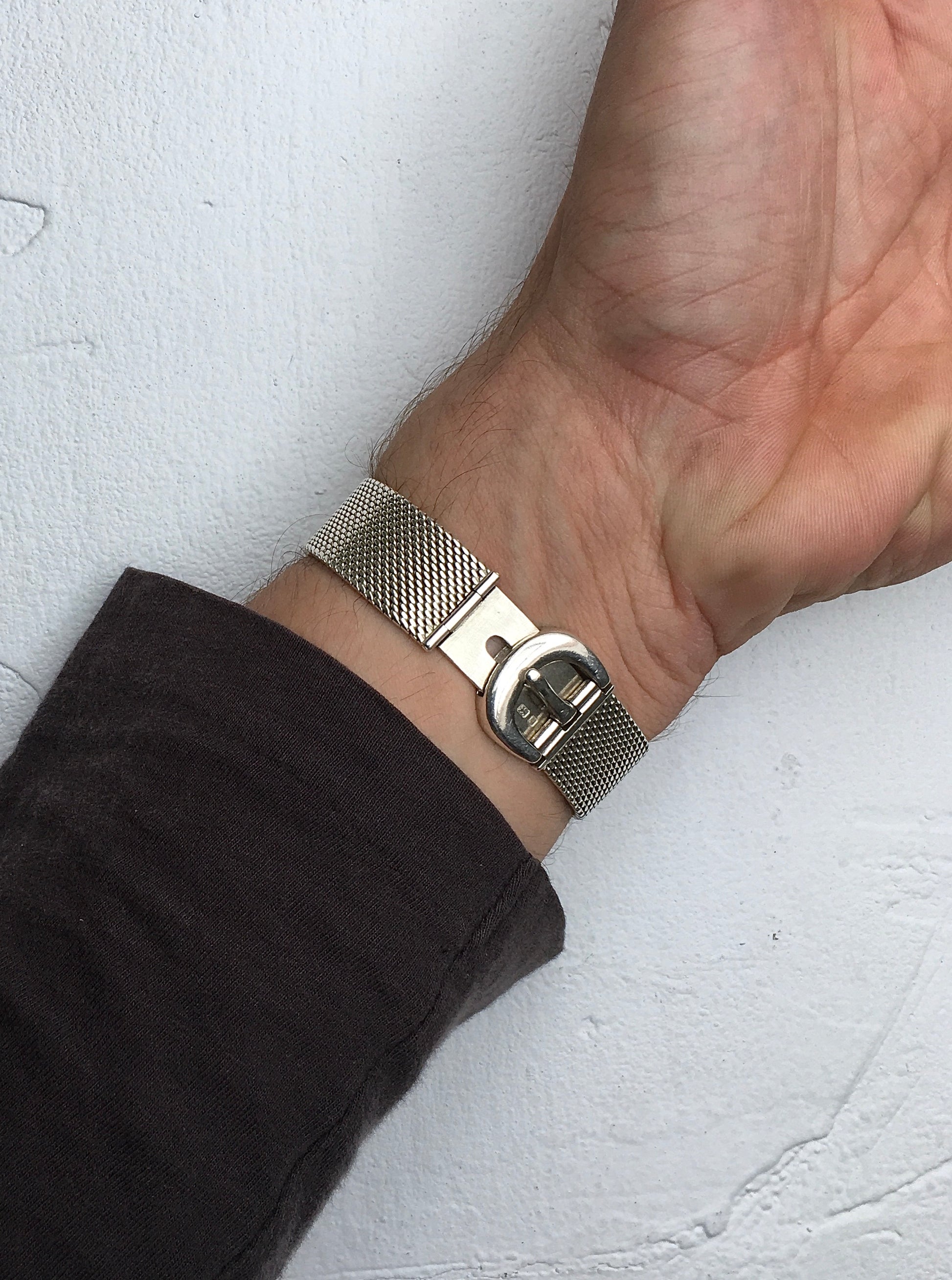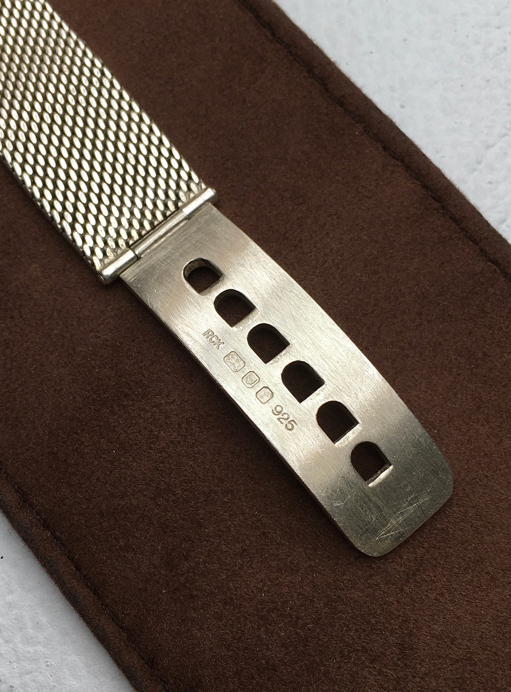 The Milanese mesh bracelet remains taught and in excellent condition without signs of stretching and fastens securely via King’s signature multi setting buckle clasp. It too is boldly stamped for London 1974