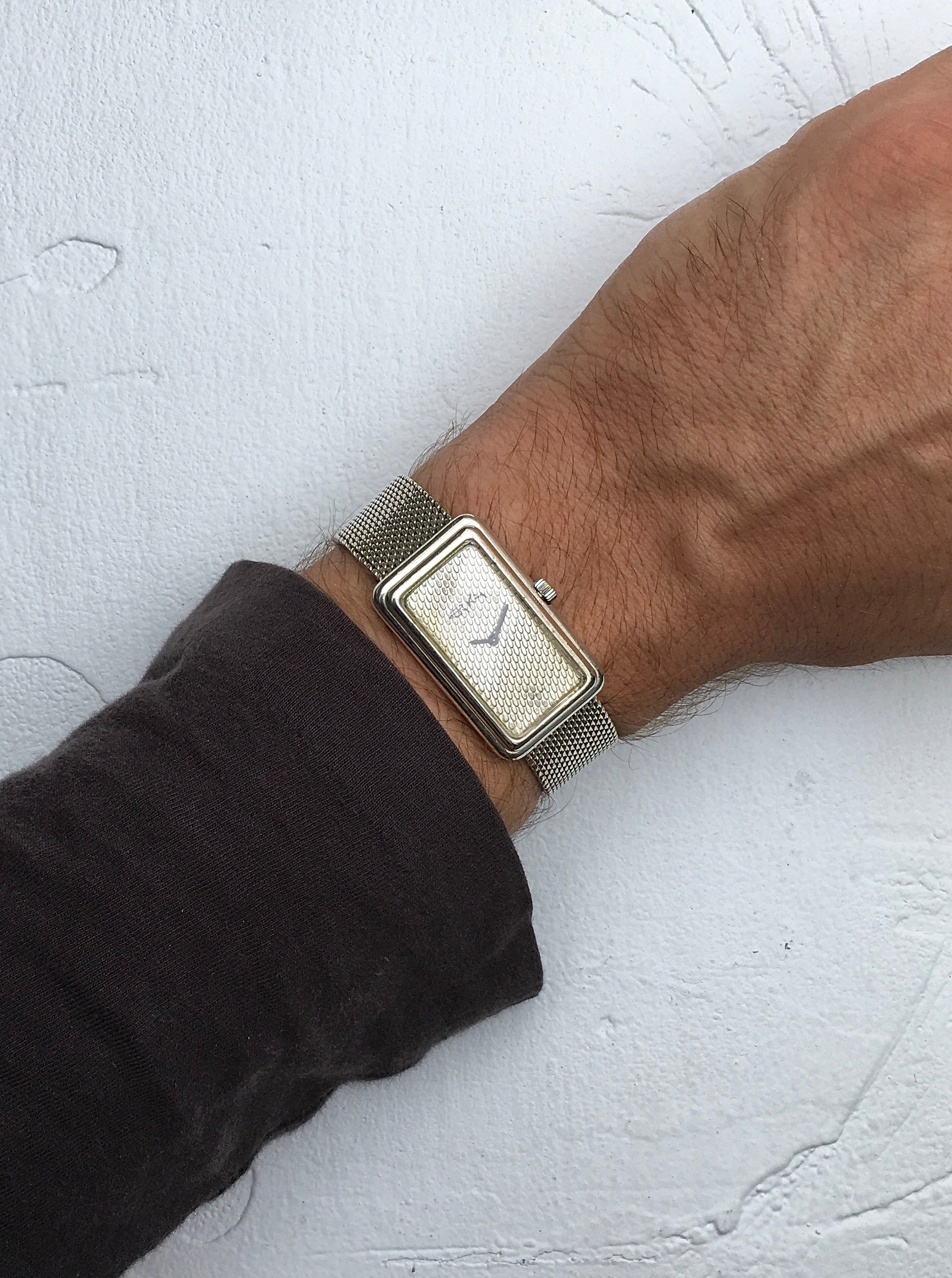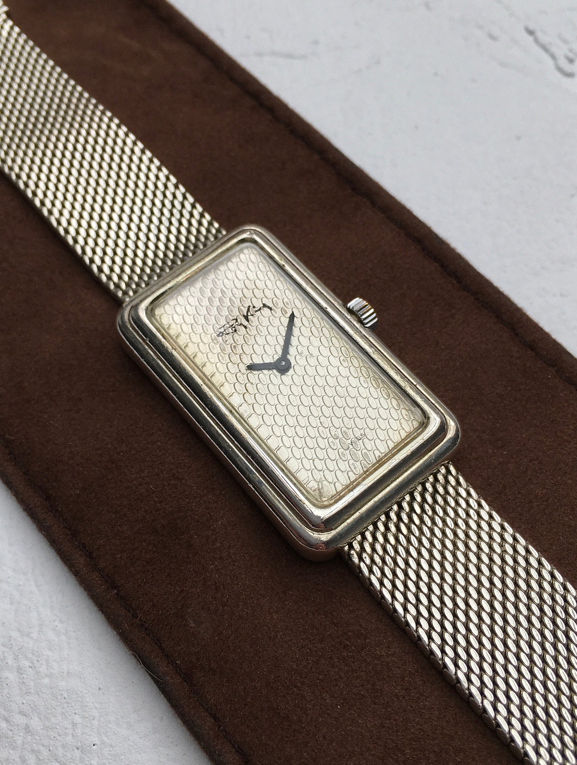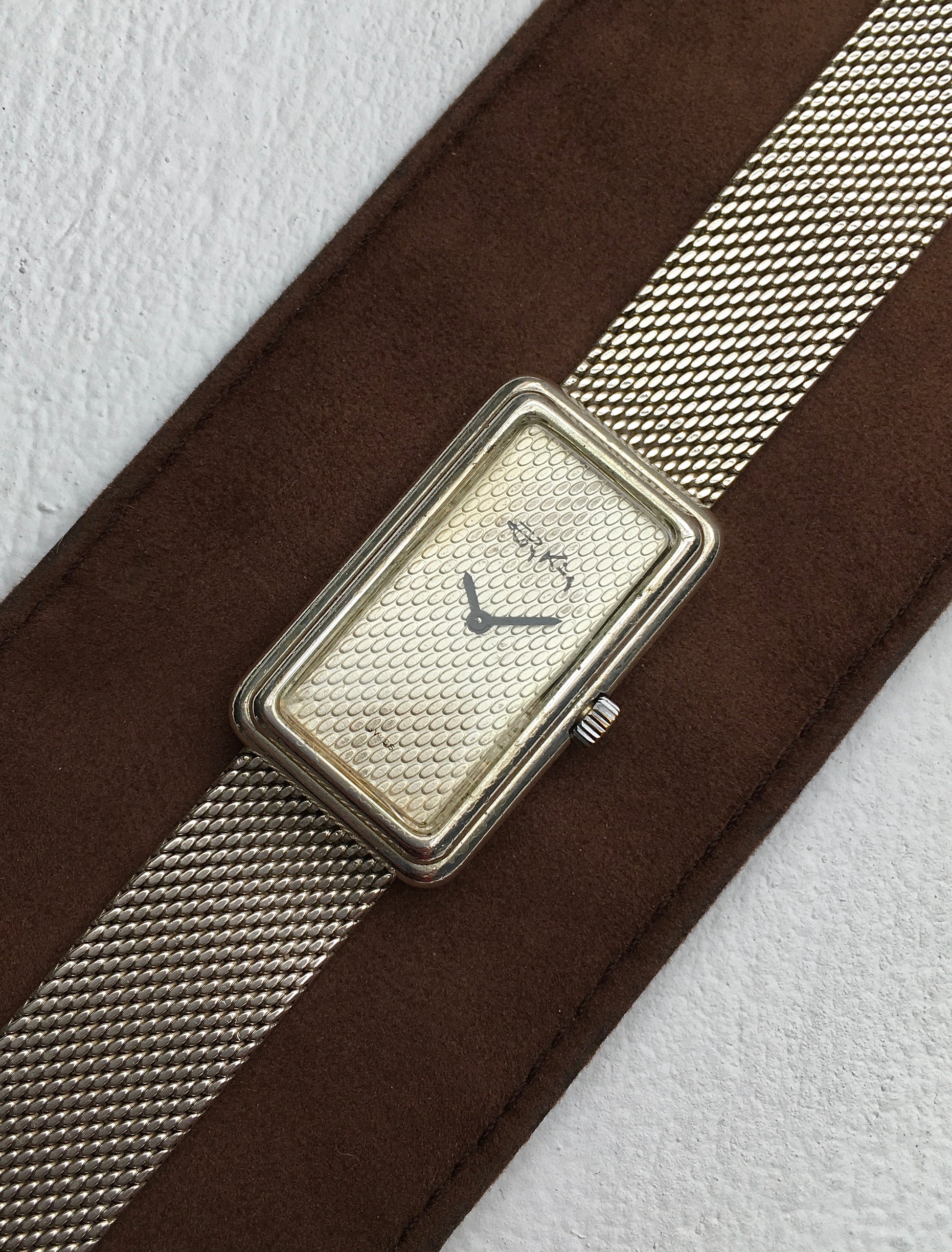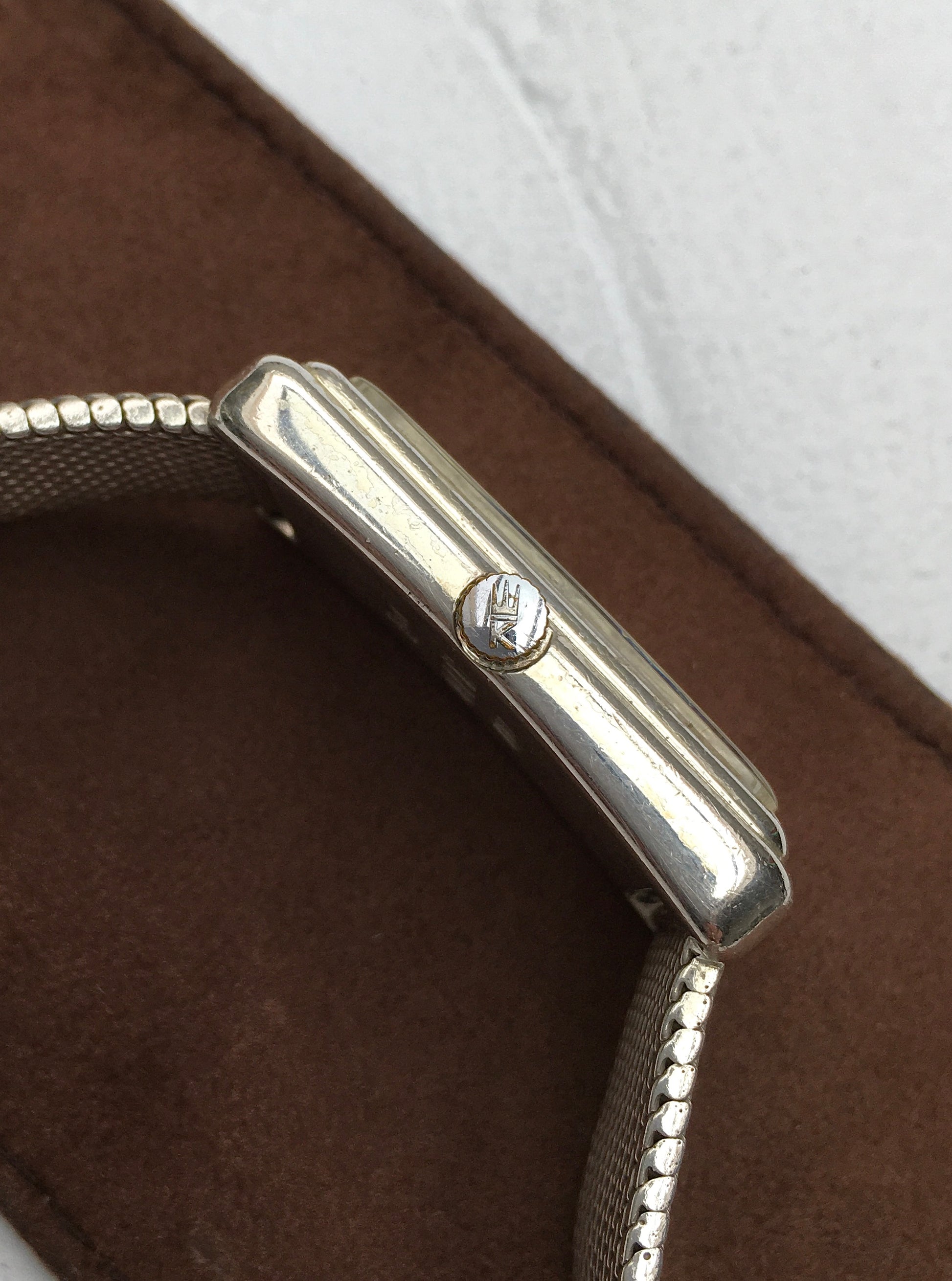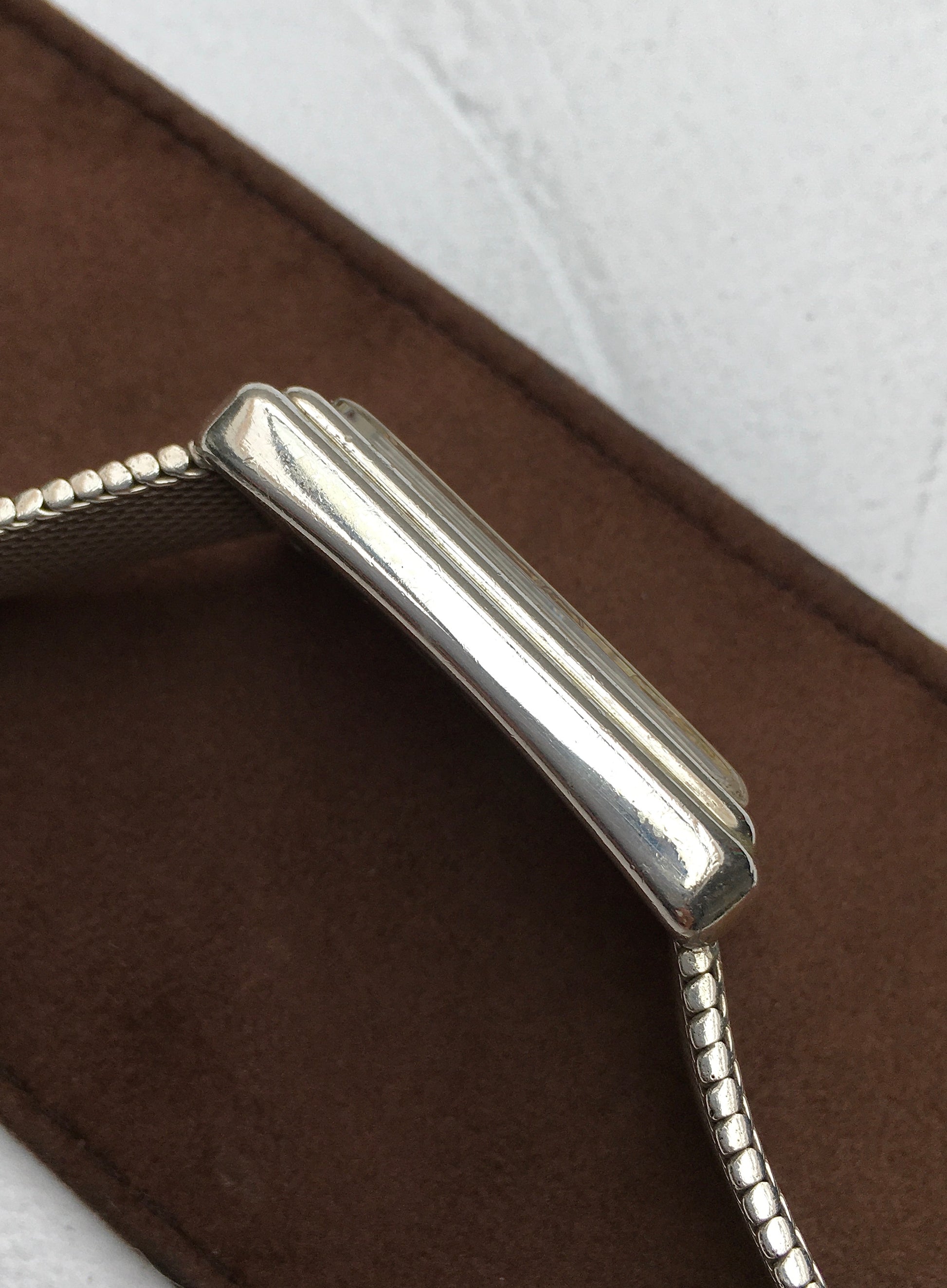The Milanese mesh bracelet remains taught and in excellent condition without signs of stretching and fastens securely via King’s signature multi setting buckle clasp. It too is boldly stamped for London 1974