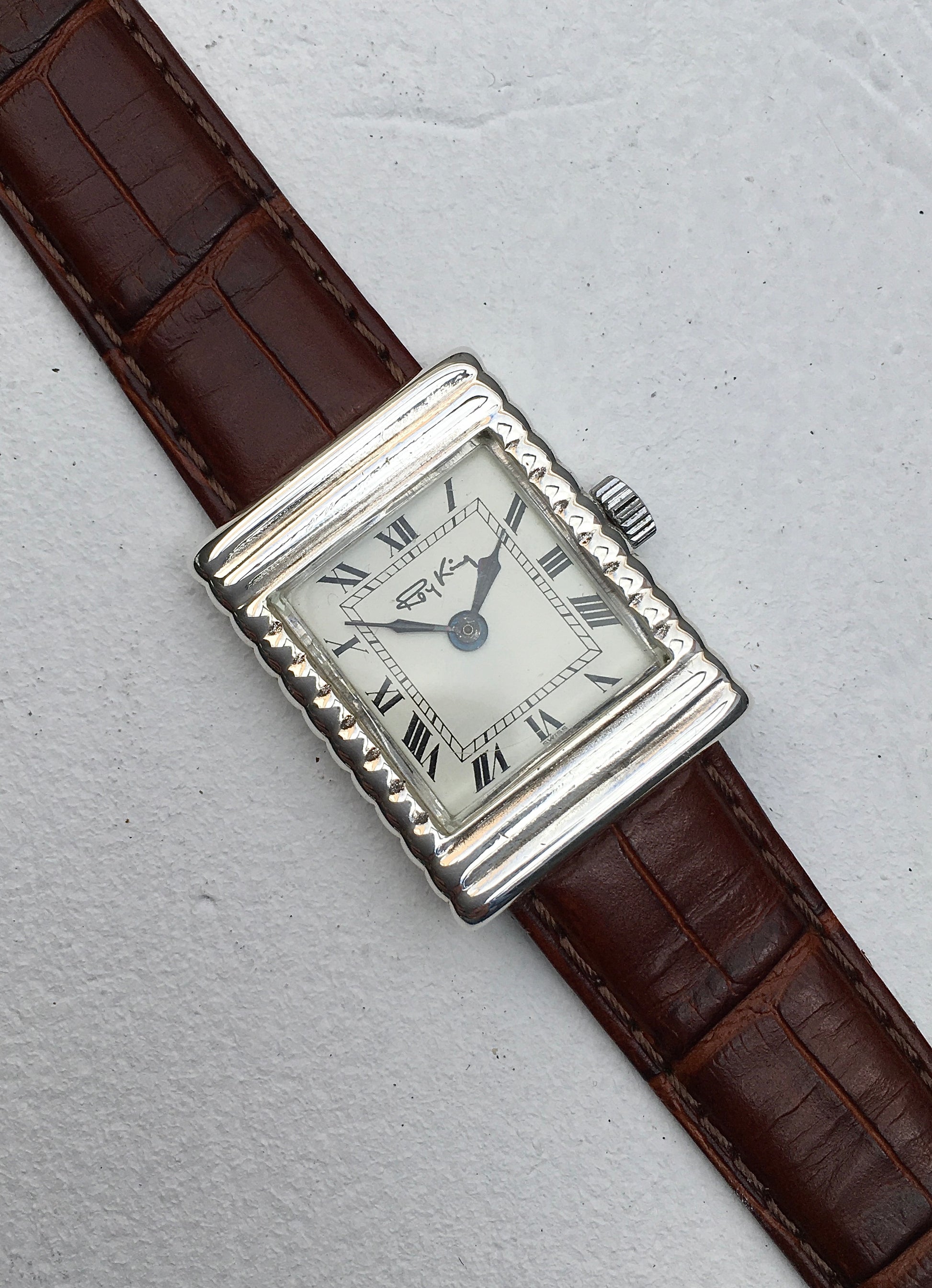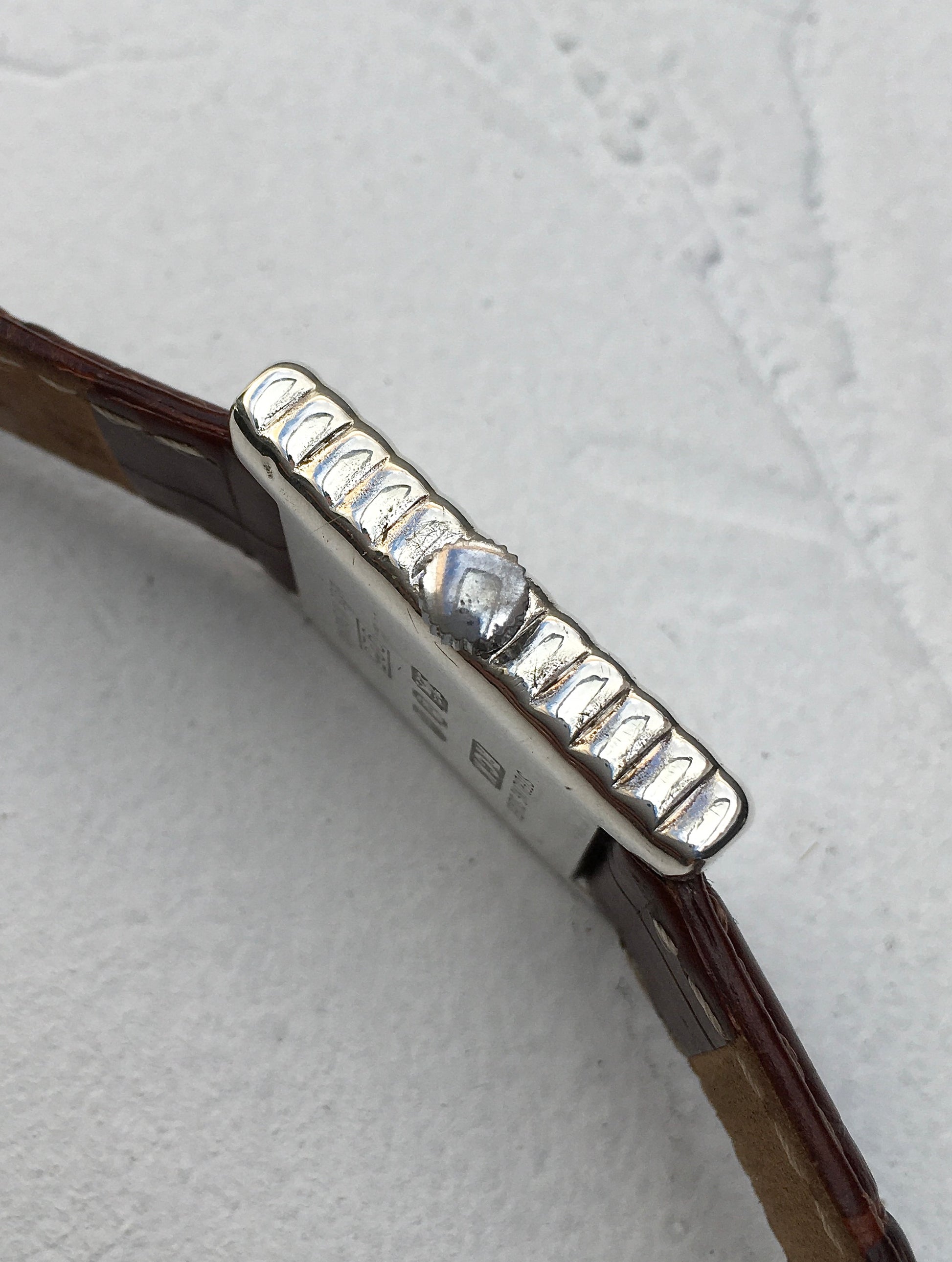 The ridged/godron Sterling silver monocoque case is in excellent condition and has undergone a professional polish. The case back bears the marque’s iconic bold hallmarks for London 1973