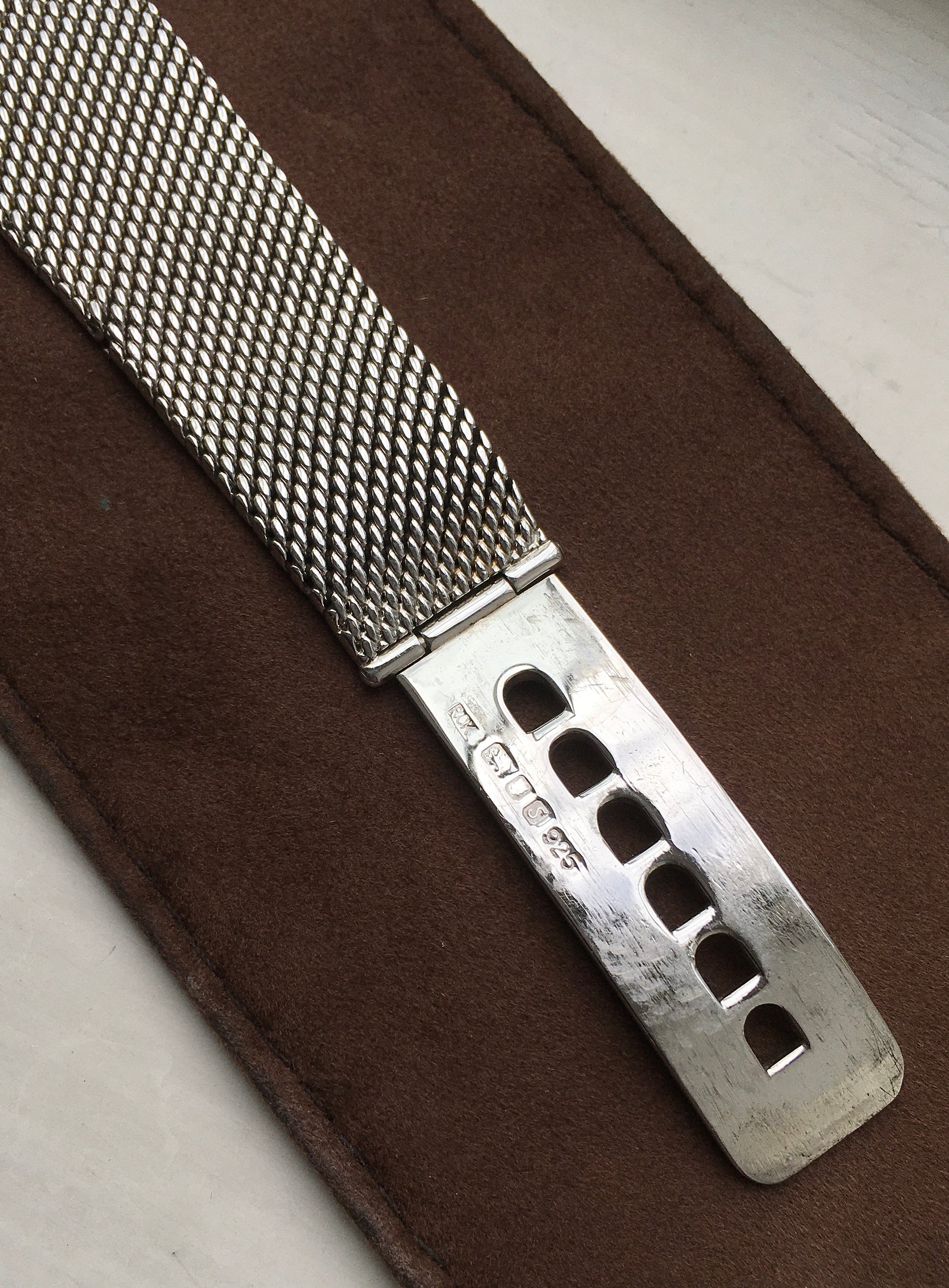 The Milanese mesh bracelet remains in good condition. It’s fastened securely by King’s iconic multi setting buckle clasp, boldly hallmarked for London 1973
