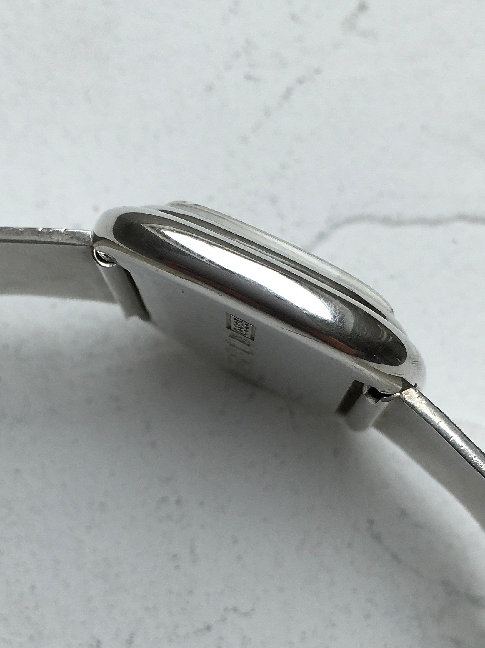 The original branded winding crown powers a manual wind FHF cal.69 moment that runs smoothly and keeps good time
