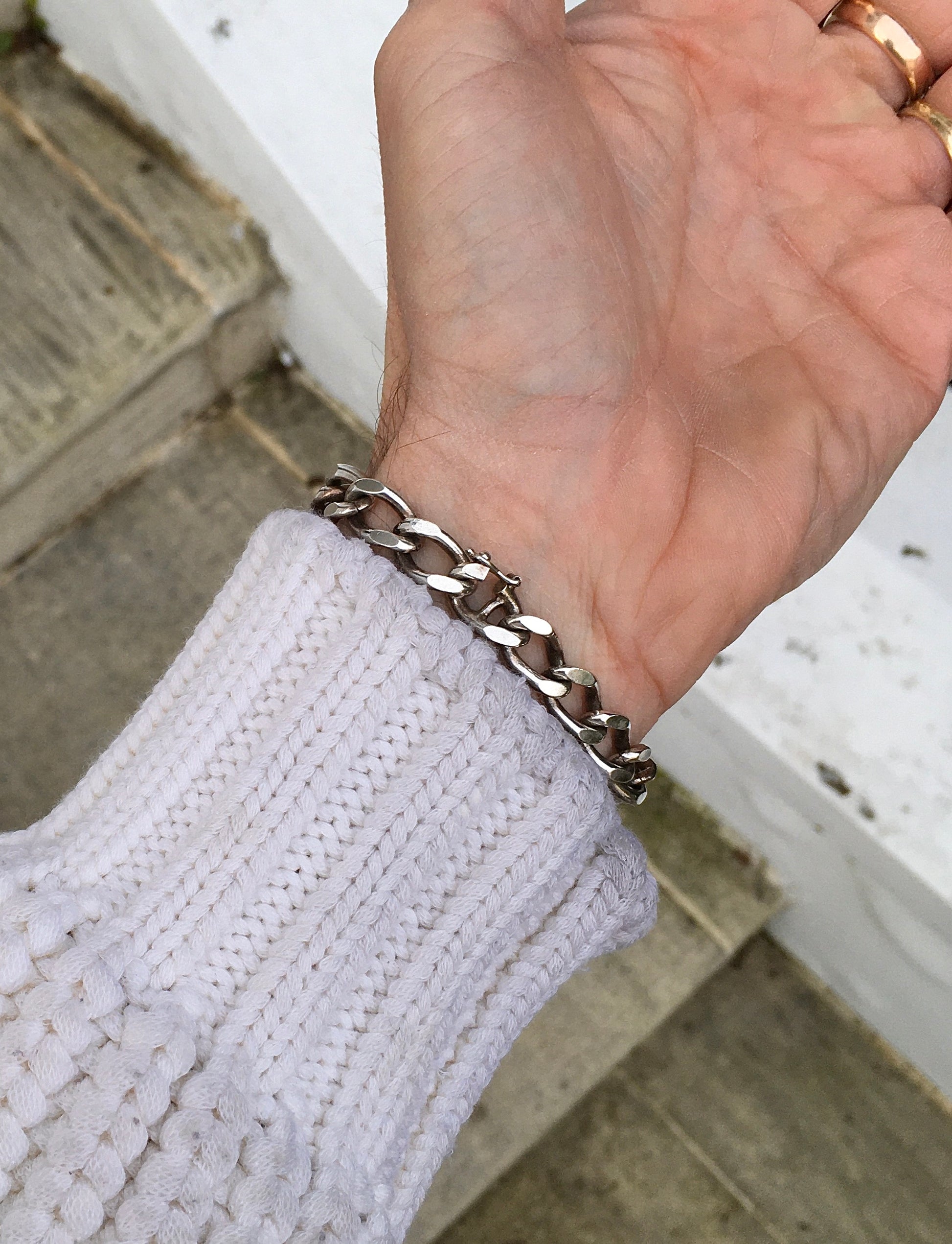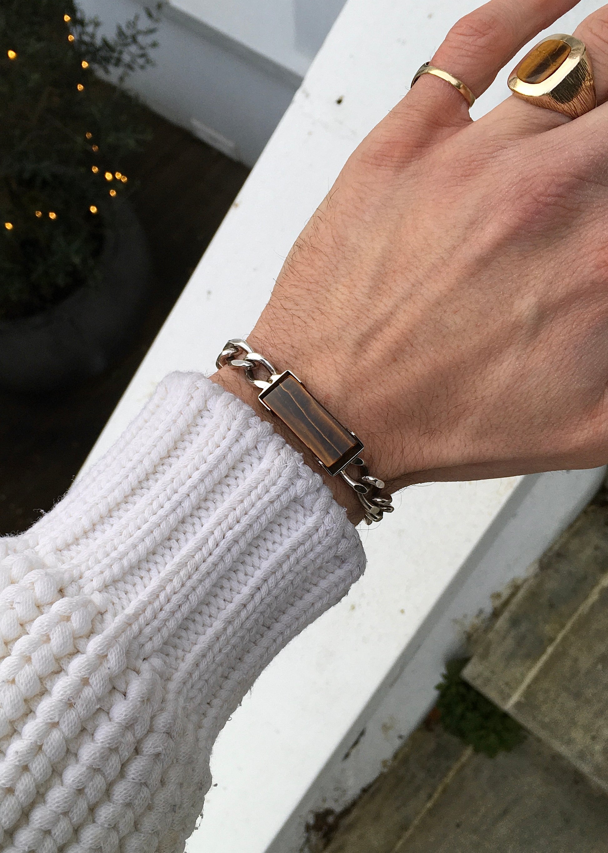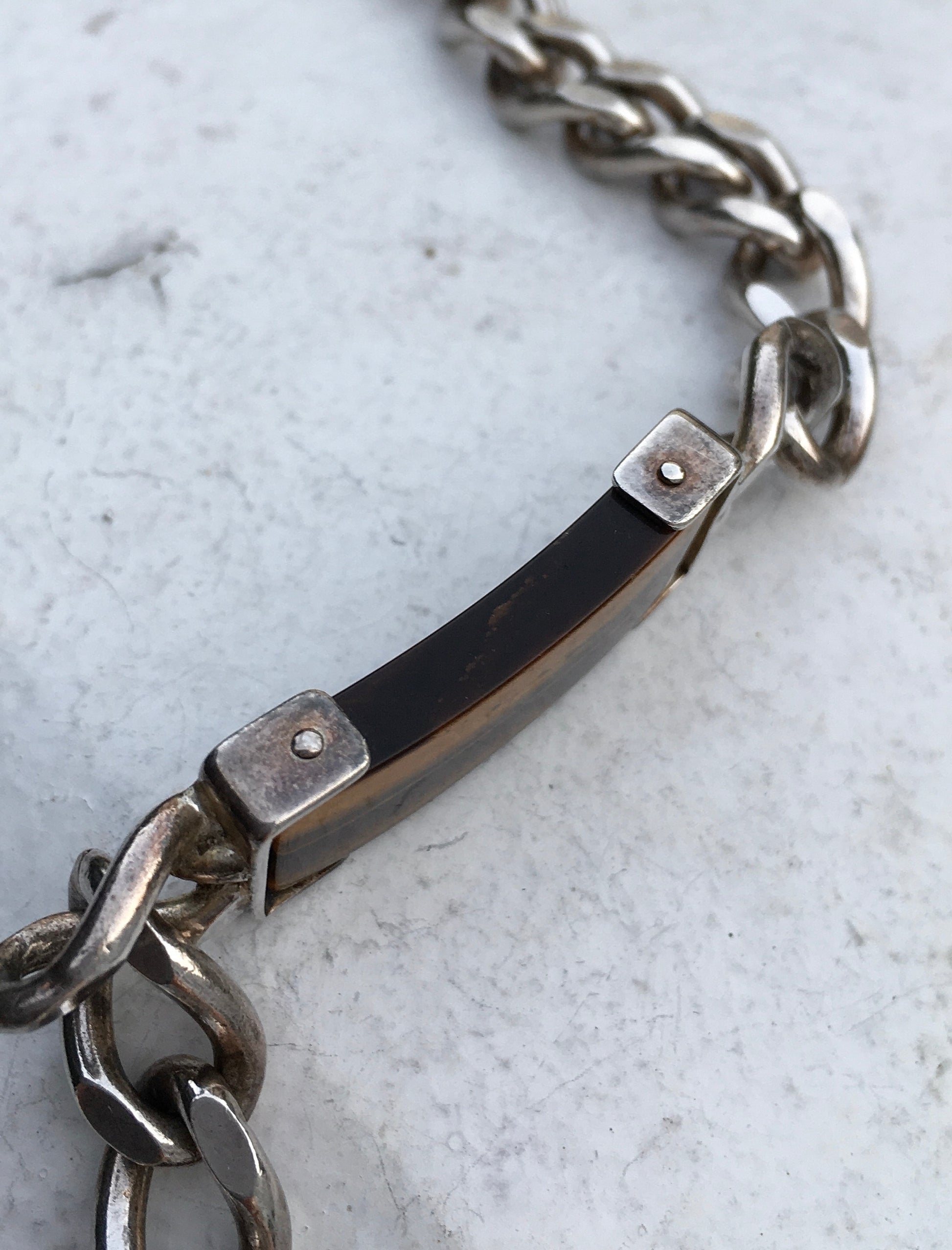 Vintage 1970s sterling silver curb link bracelet with a eye catching Tiger’s Eye where the would usually be an ID plaque