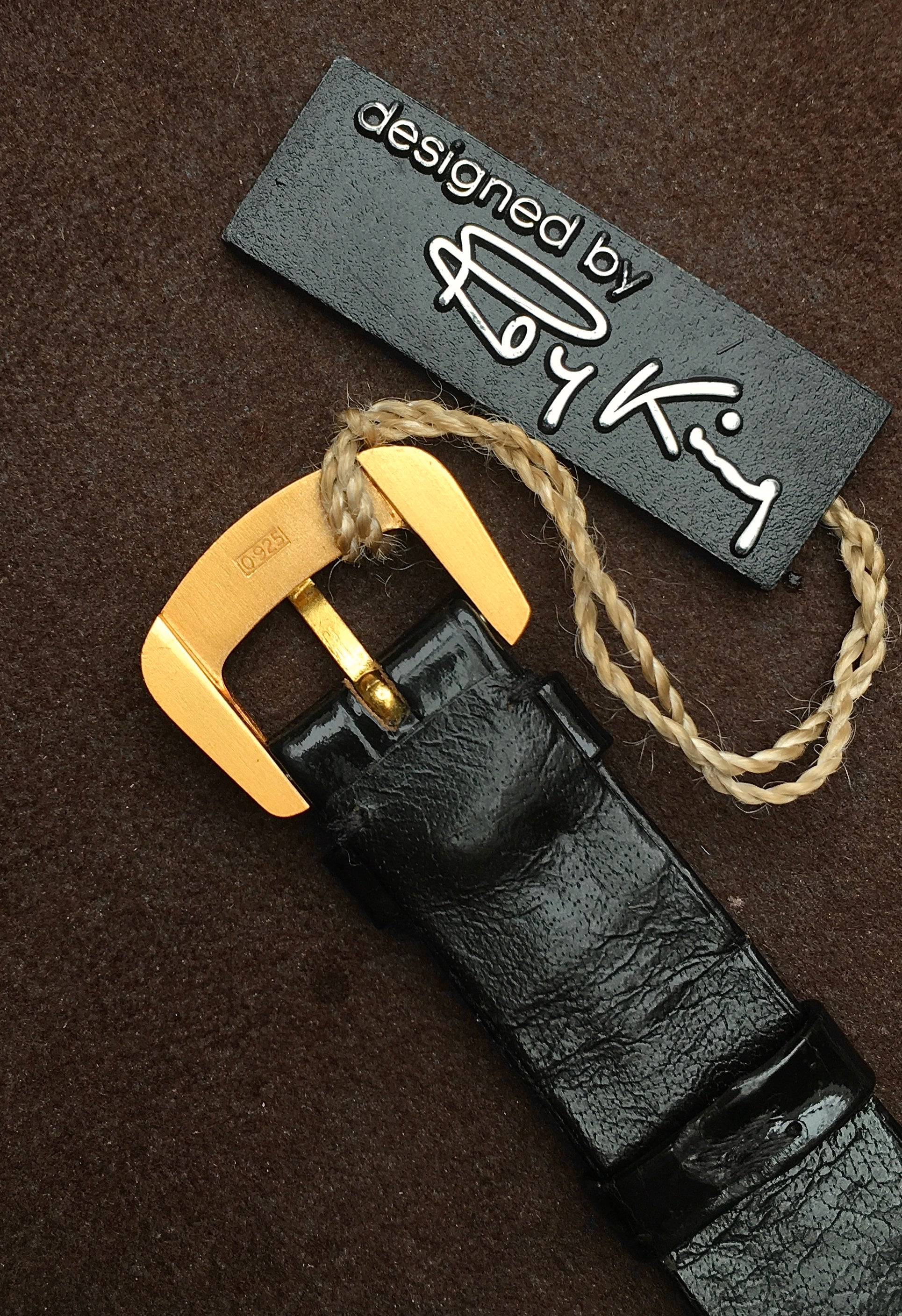 The original Roy King black pressed leather strap is in superb cosmetic condition aside from some age related cracking to the upper near the end