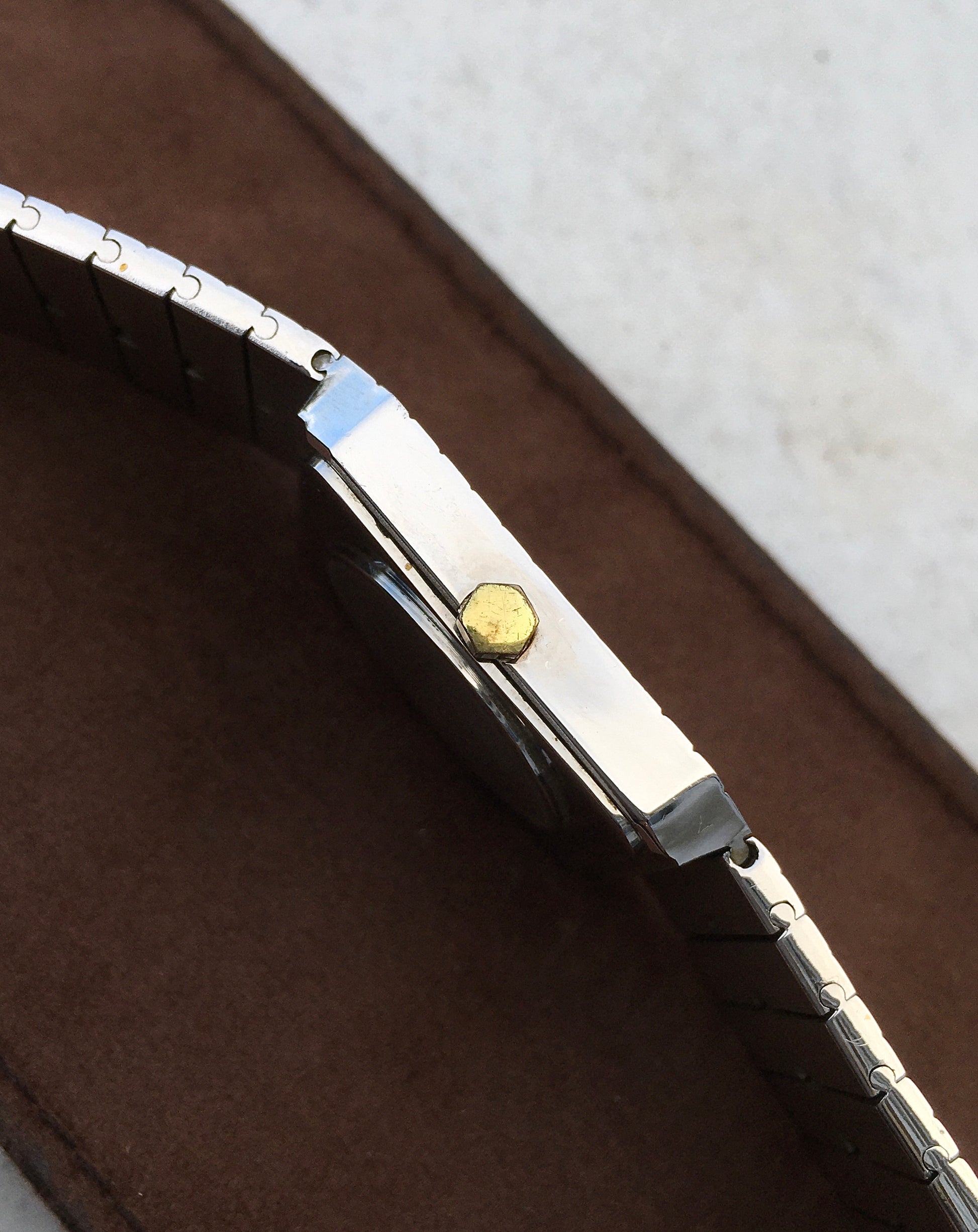 The bi-colour steel and gold plated finish on the case continues through from the bracelet, a design reminiscent of the Piaget Polo