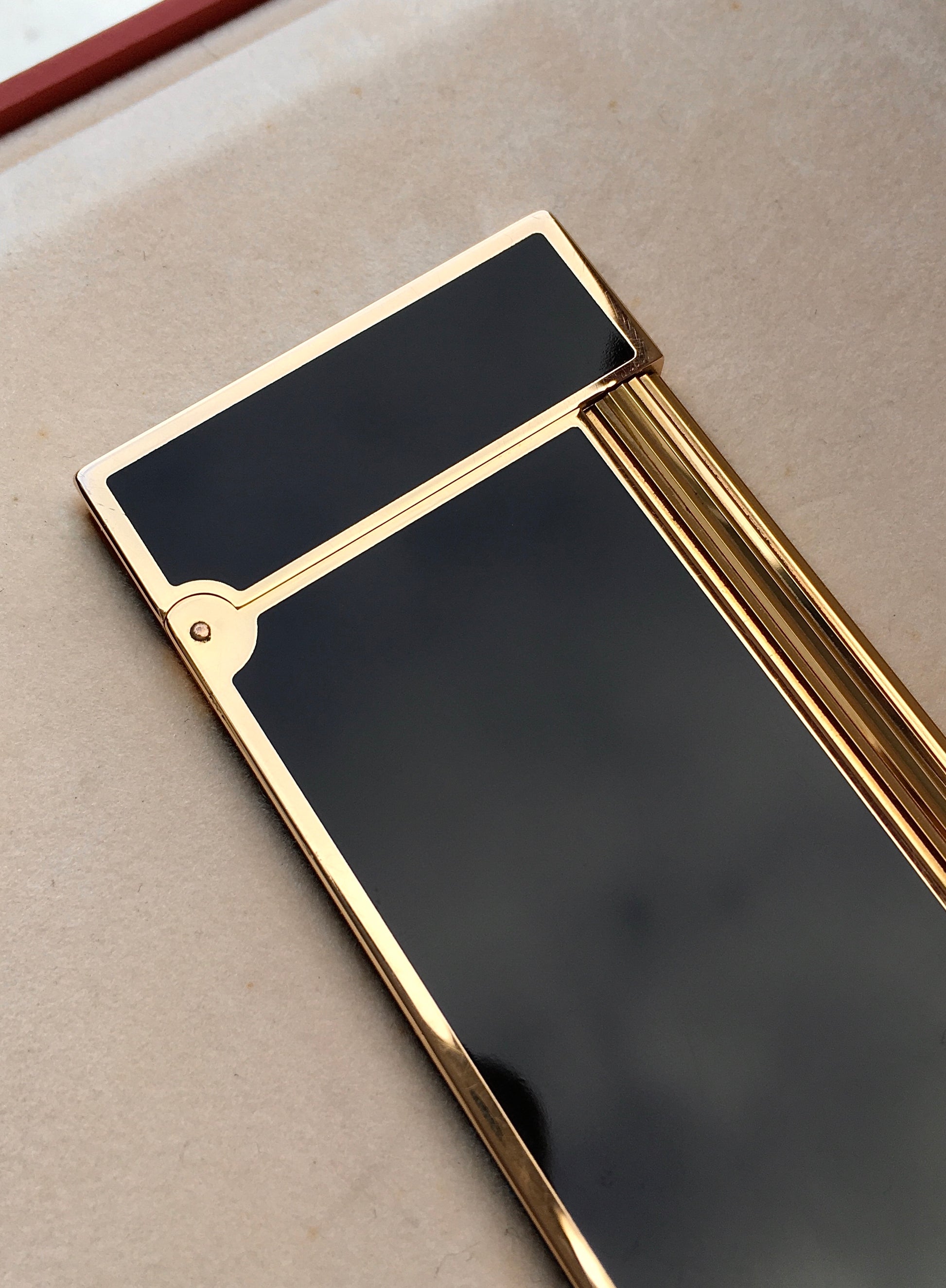 20 micron 18k yellow gold plated and featuring black ‘Lacque de Chine’ panelling, this table top masterpiece is presented in its original, oversized box that’s in just as wonderful a condition as the lighter