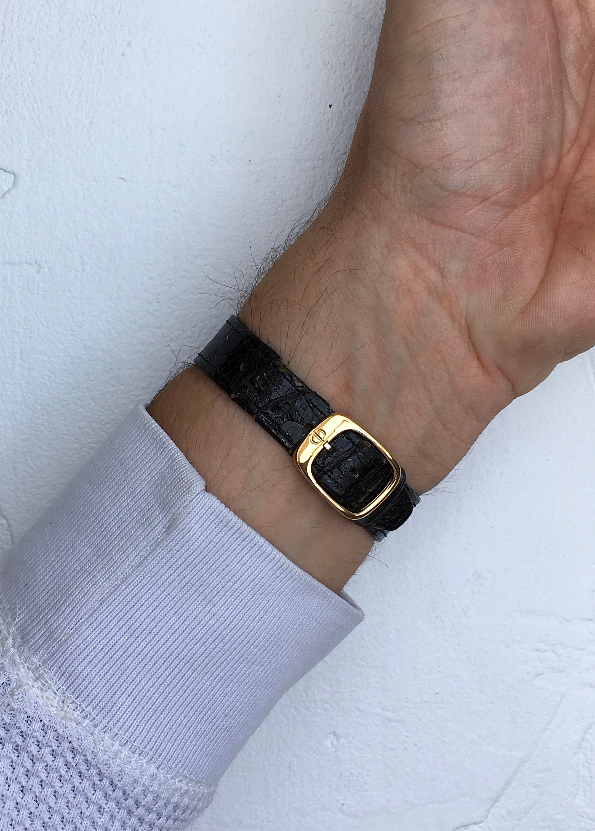 The original Baume & Mercier black crocodile strap is in good wearable condition with slight wear to the end of the 6 o’clock half