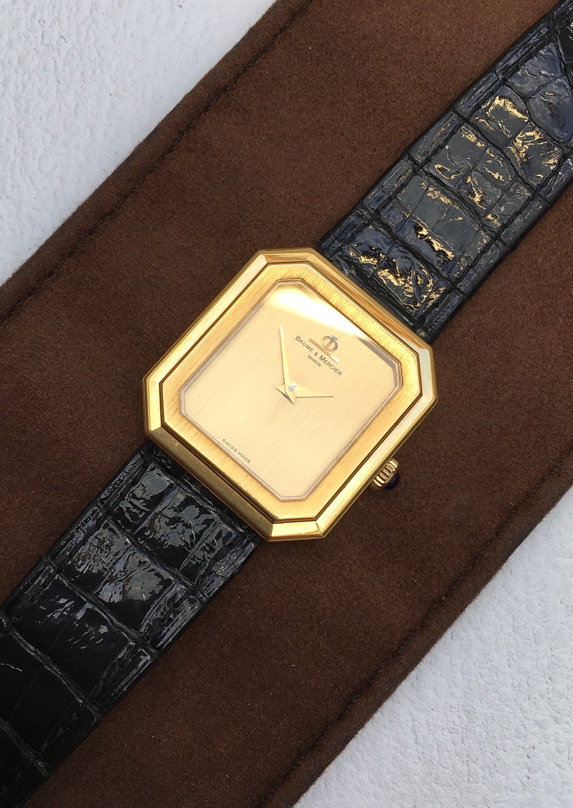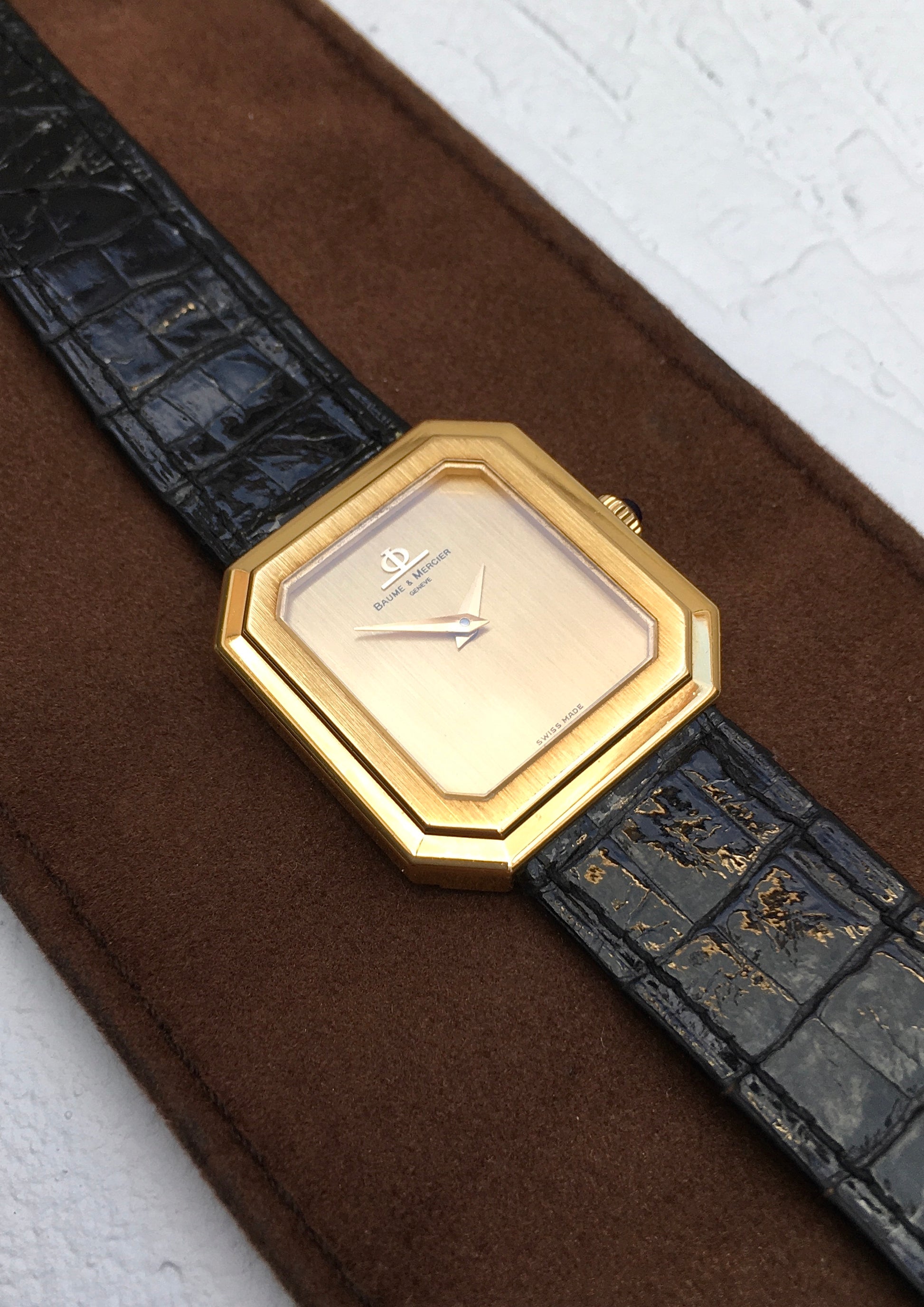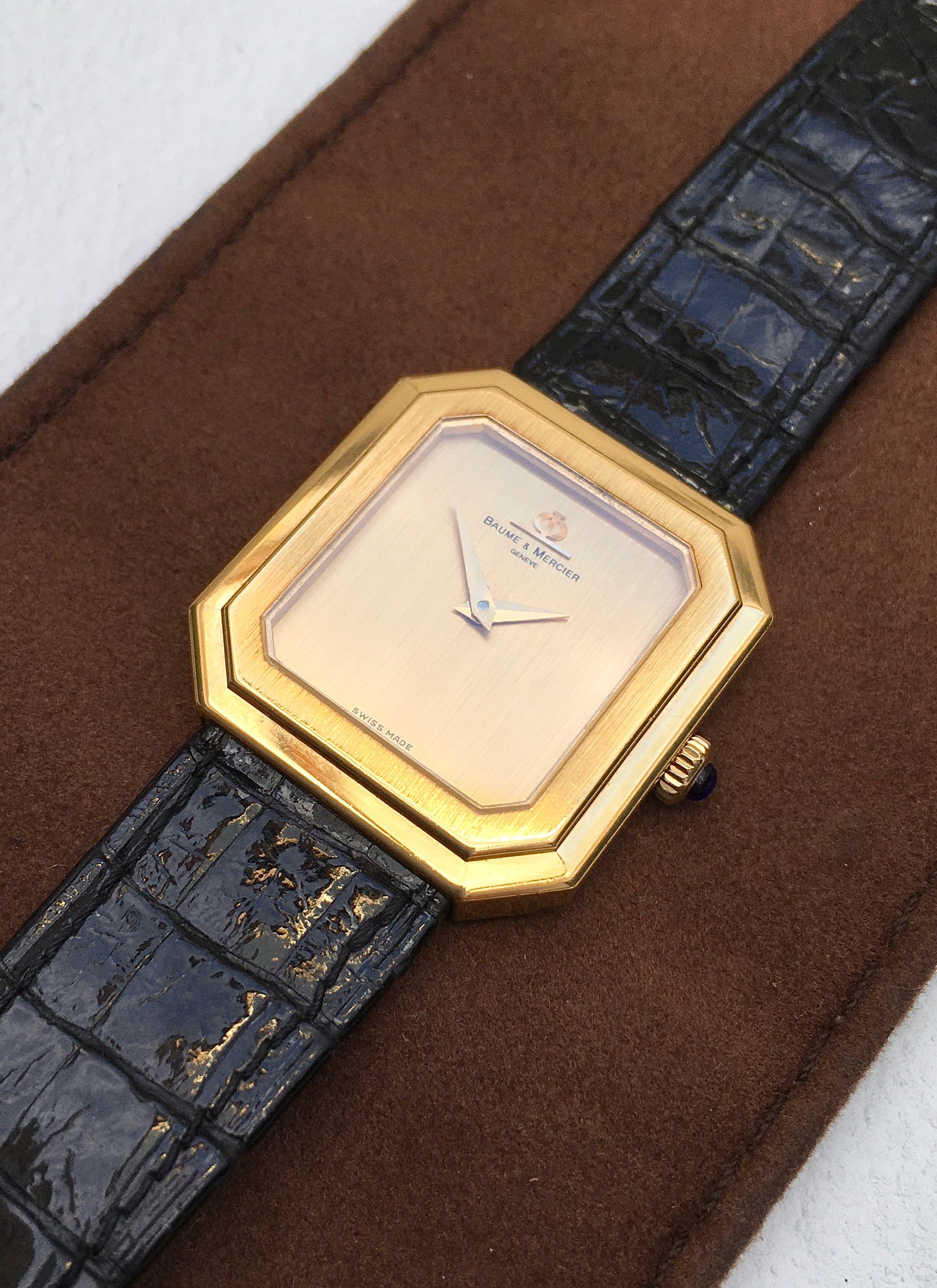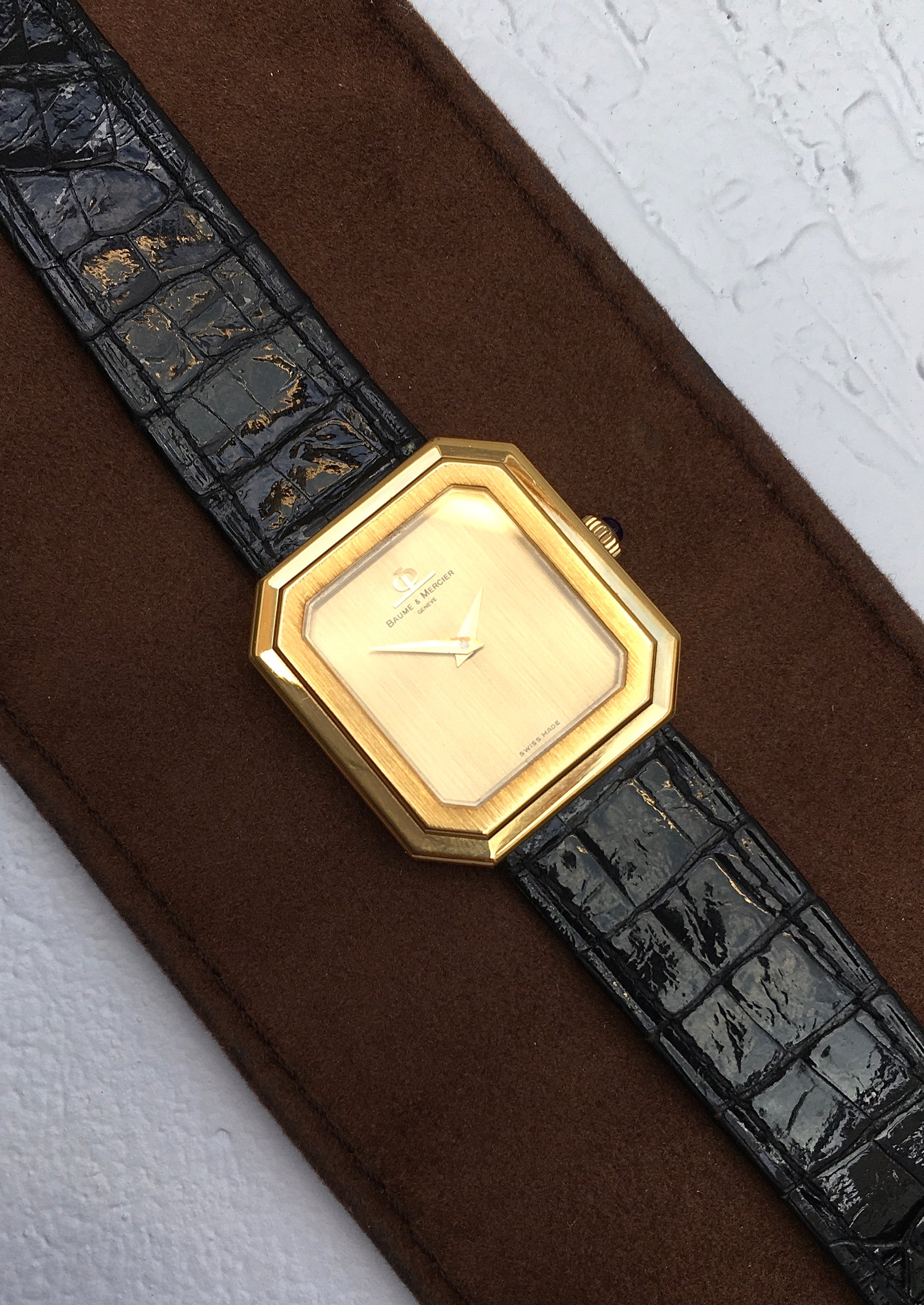 An elegant 1980s solid 18k yellow gold Baume & Mercier