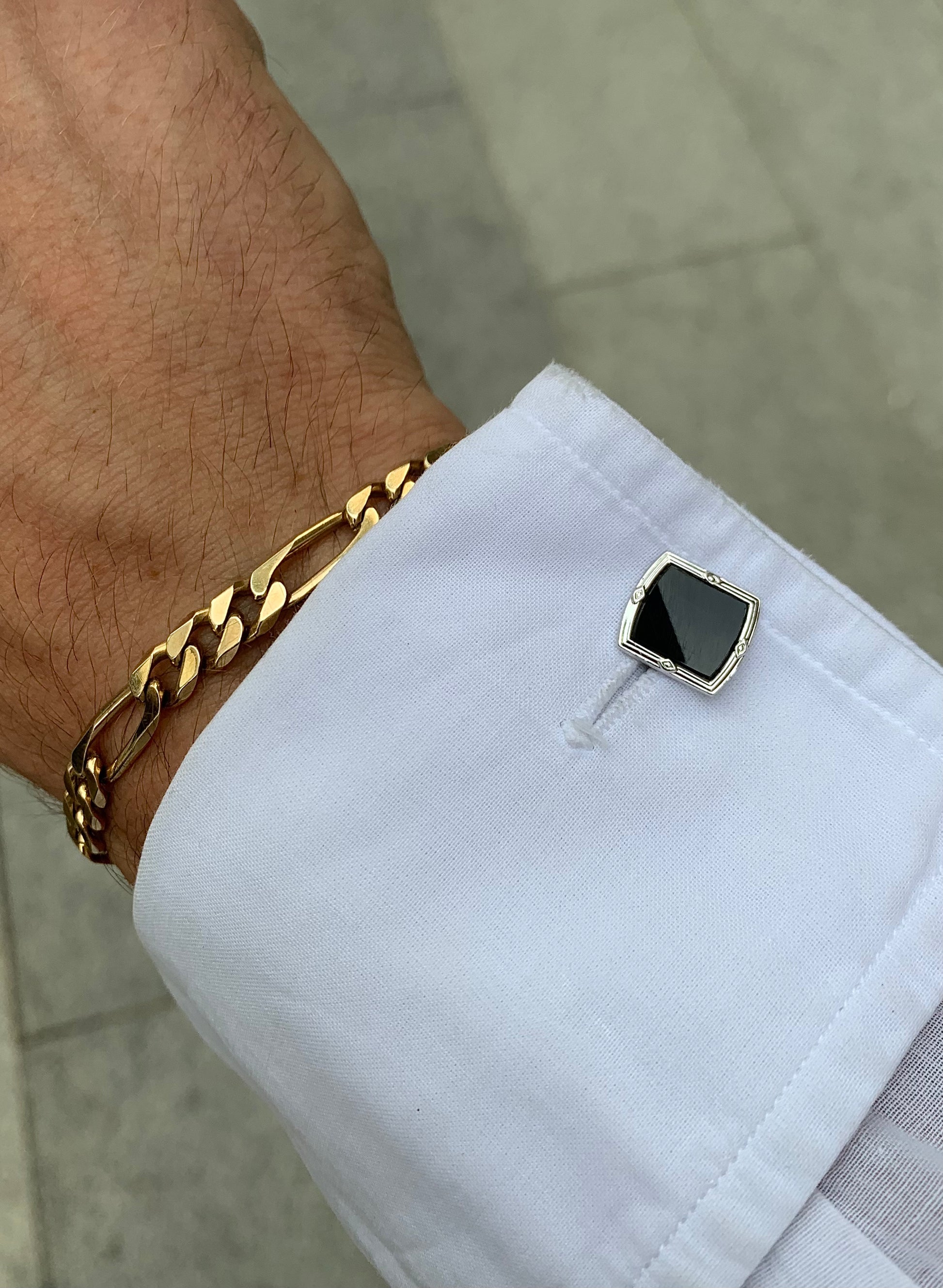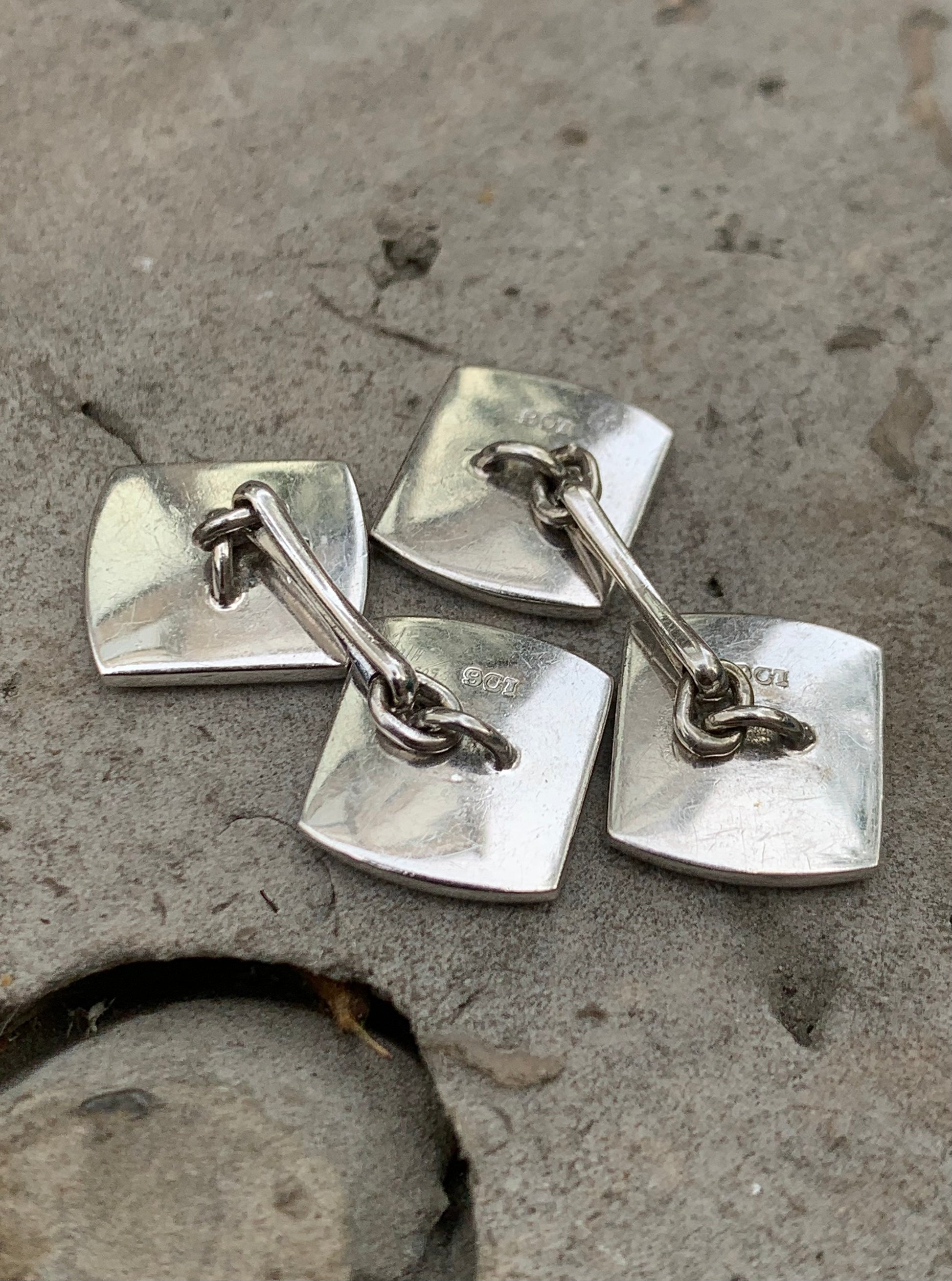 Unusual 9 Carat White Gold cufflinks inlayed with flat top cut Onyx