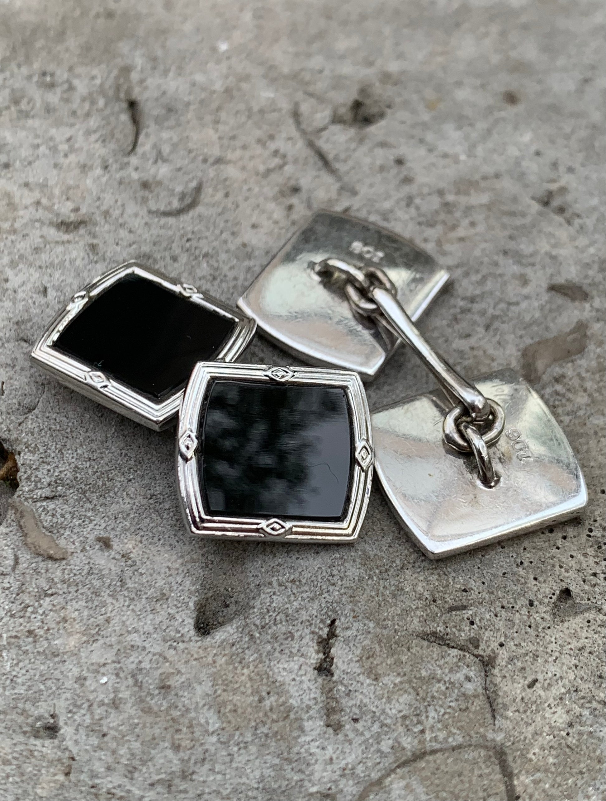 9ct White Gold x Onyx Cufflinks