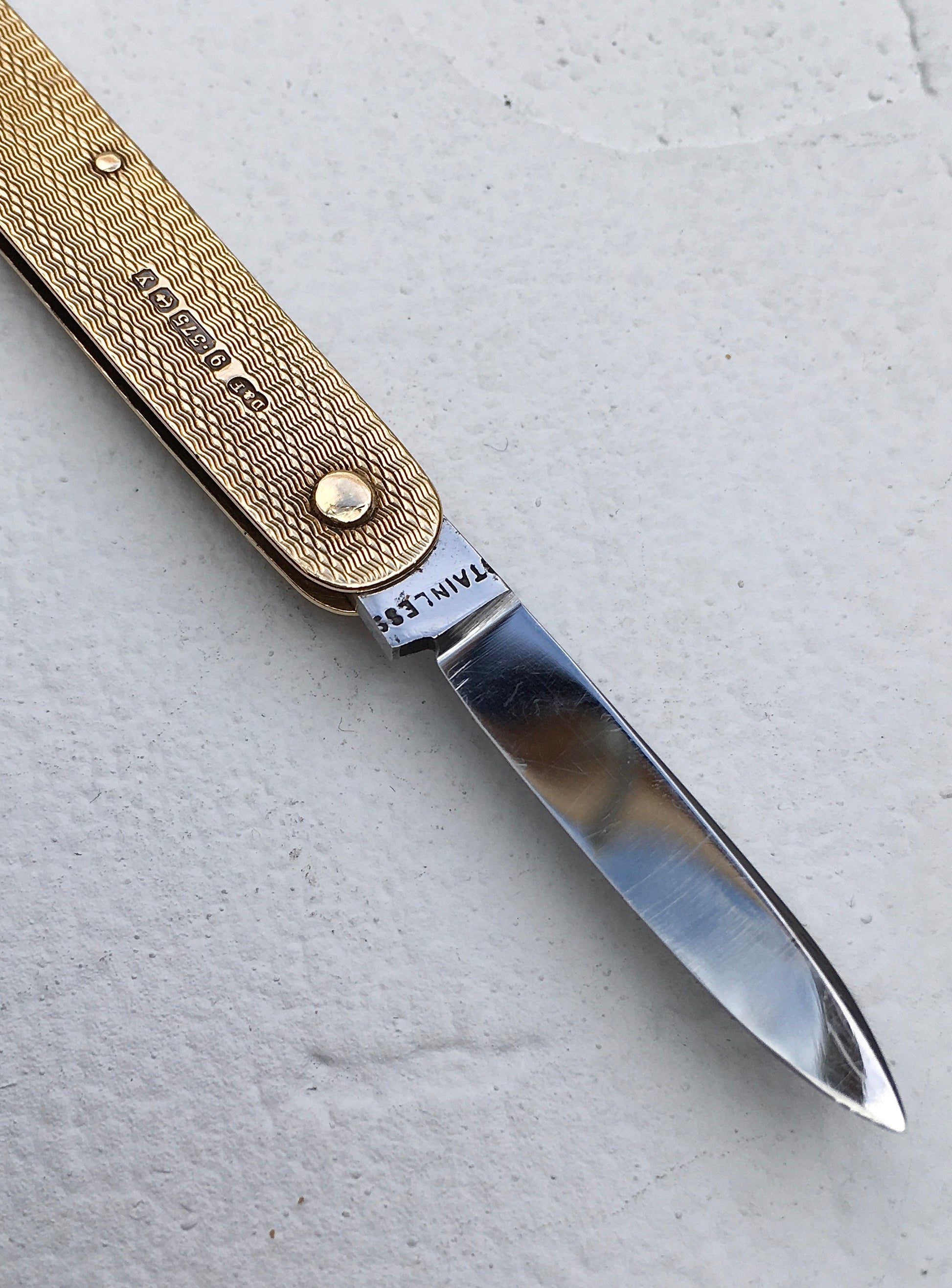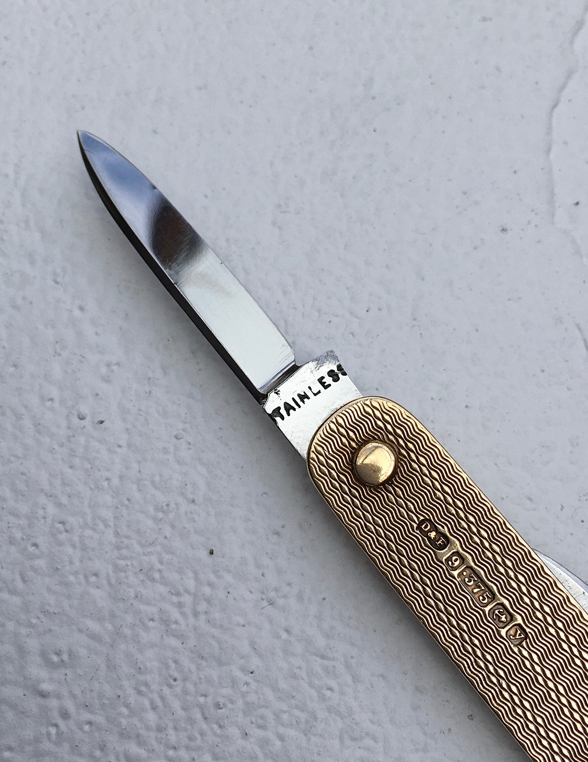 An exceptional solid 9ct yellow gold twin blade fruit/pocket knife by England’s oldest family jeweller Deakin & Francis