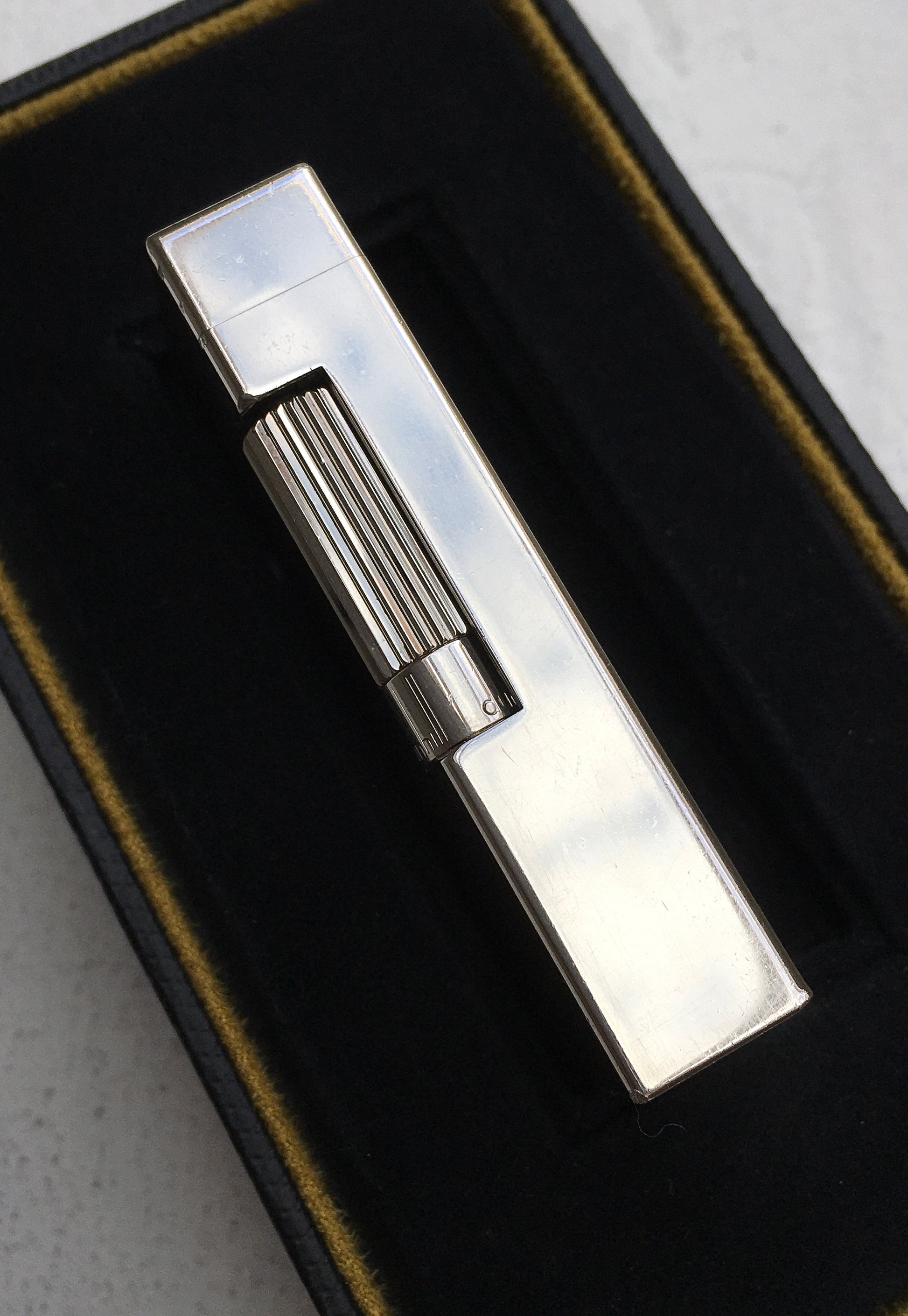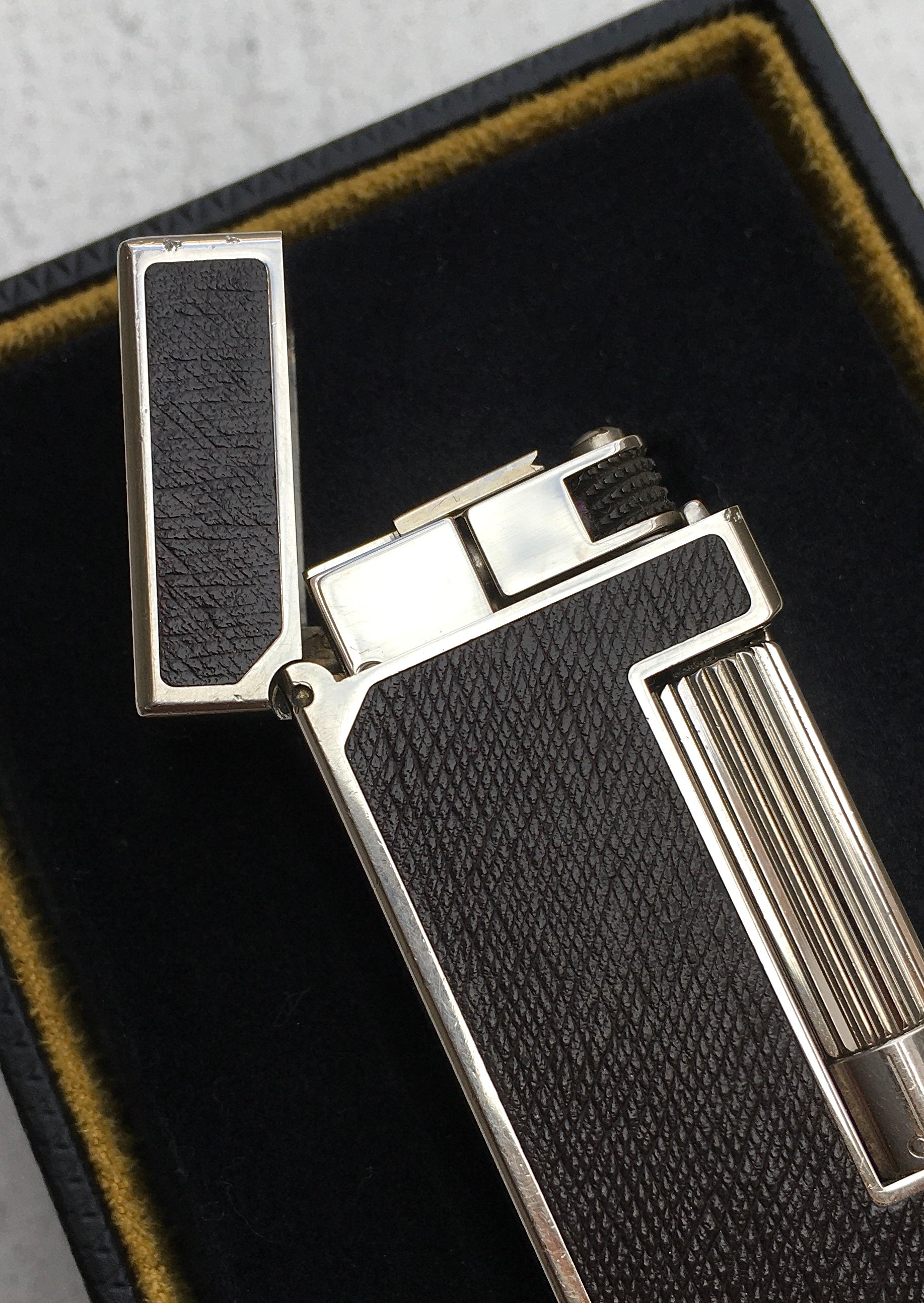 A new generation black leather and Palladium plated Dunhill Rollagas butane lighter
