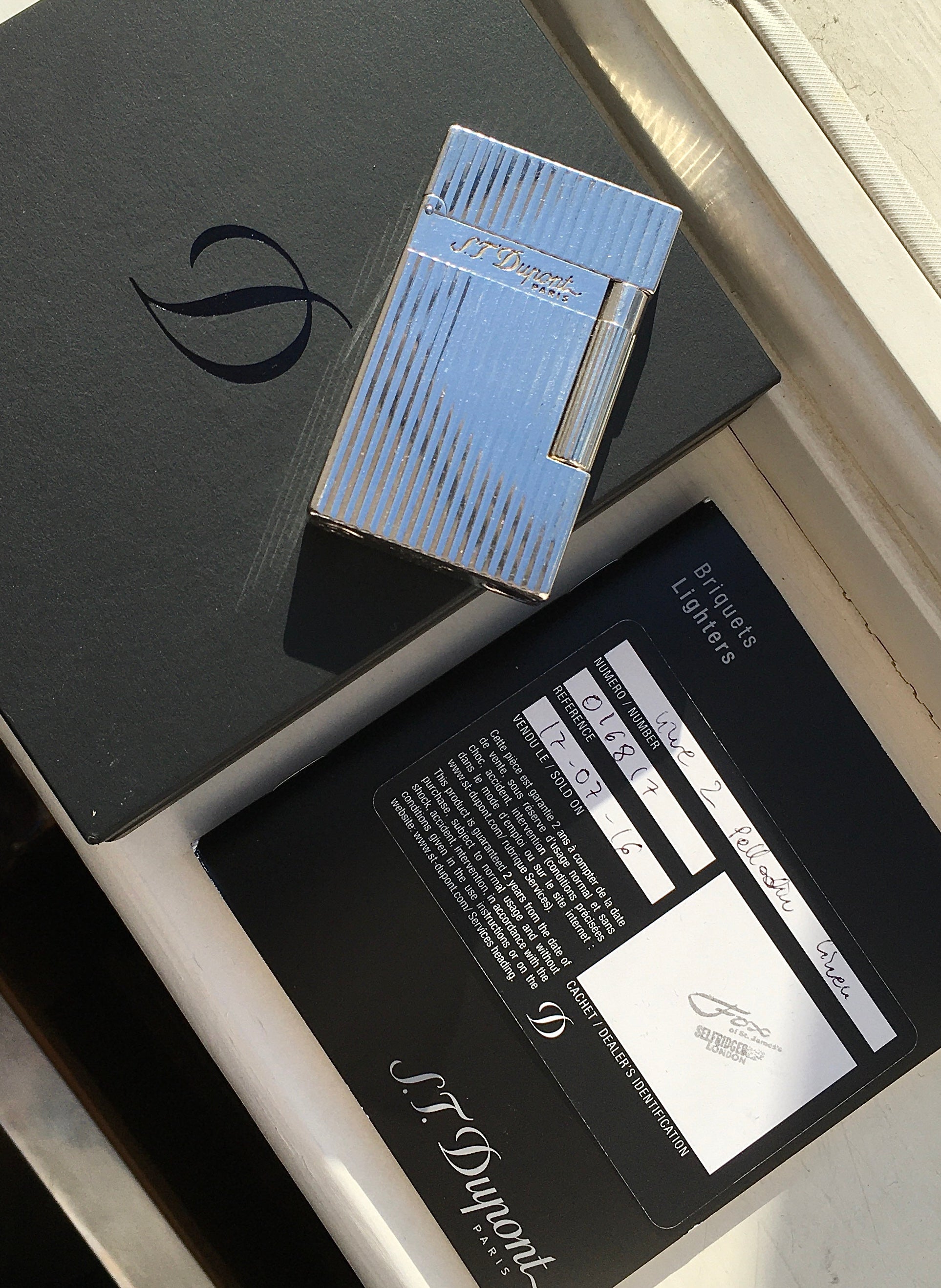 This contemporary example, factory fitted with a split valve/twin flame to accommodate for cigar smokers, was purchased in Selfridges London in 2016