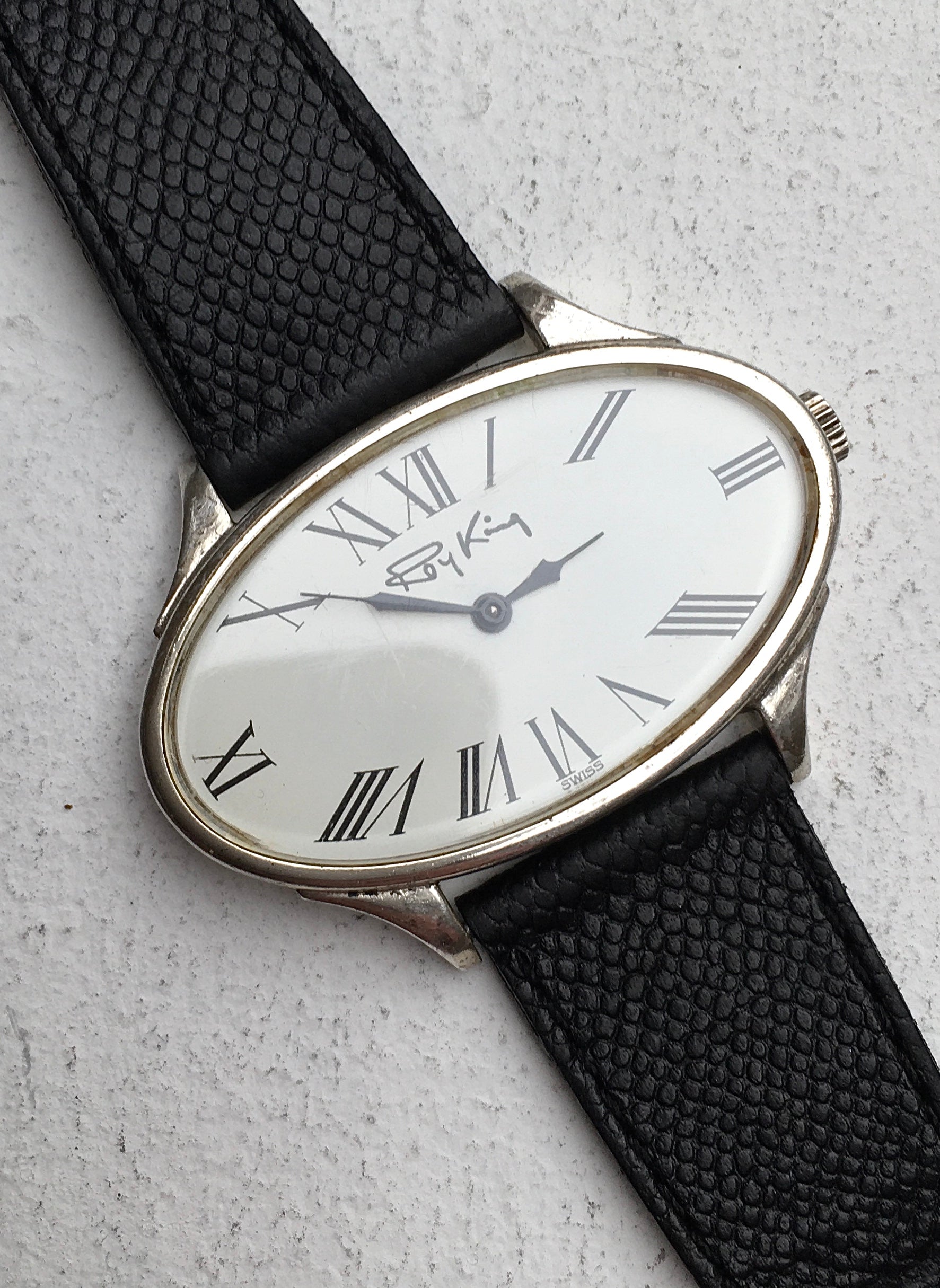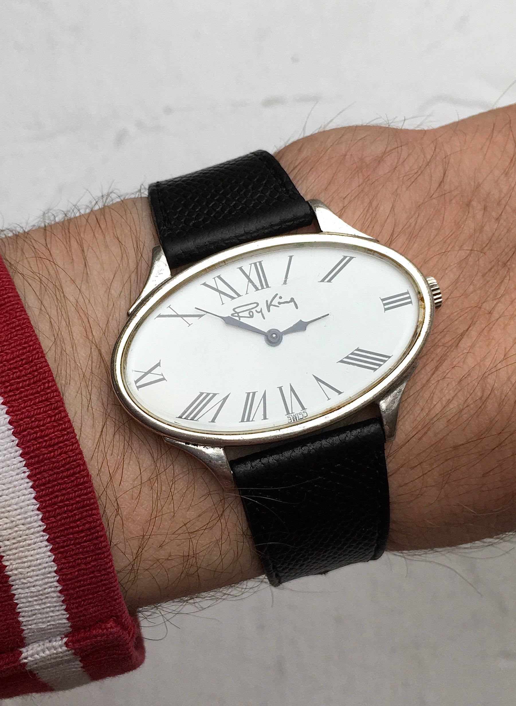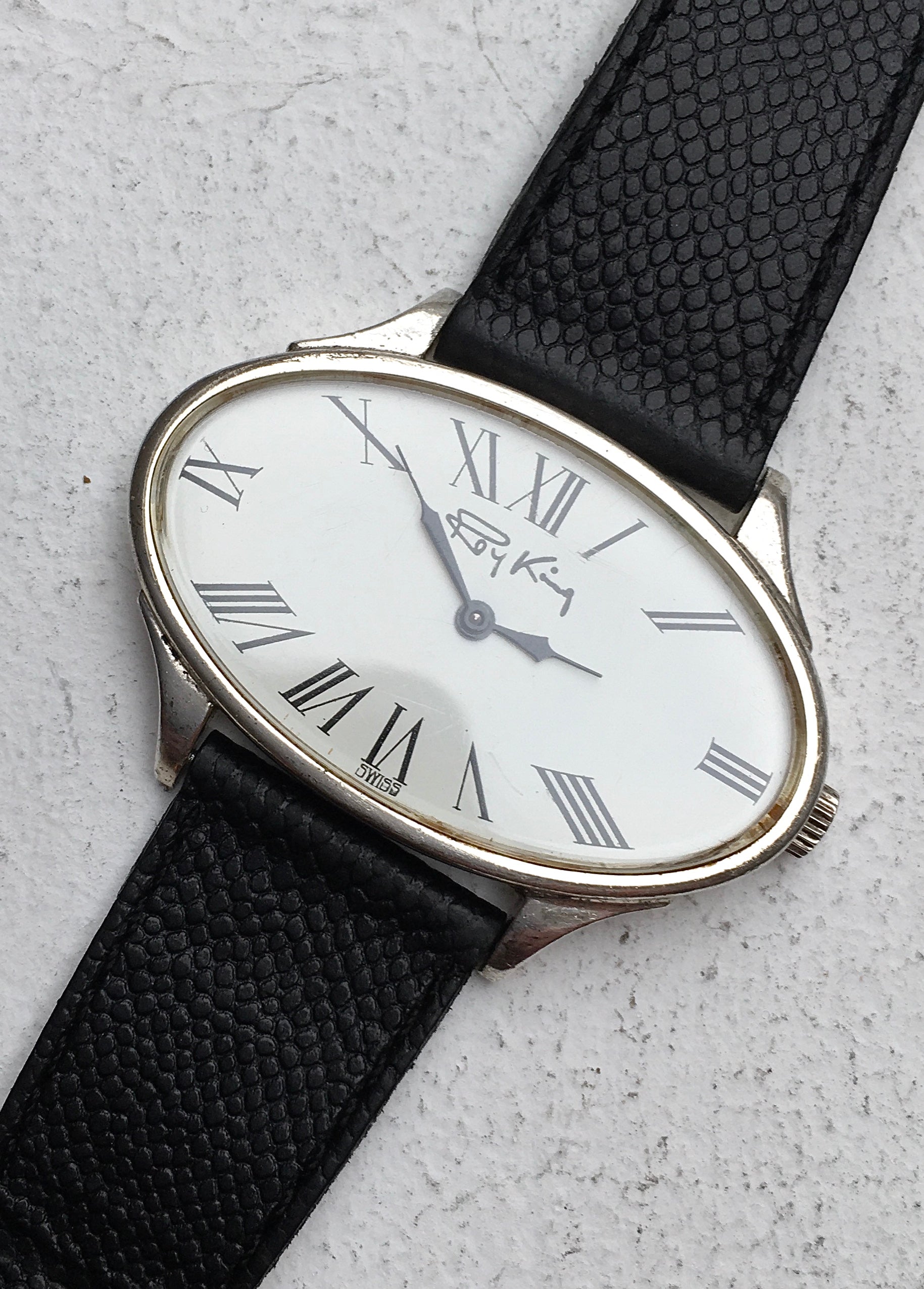 An oval case Sterling Silver Roy King wristwatch assayed in London in 1975