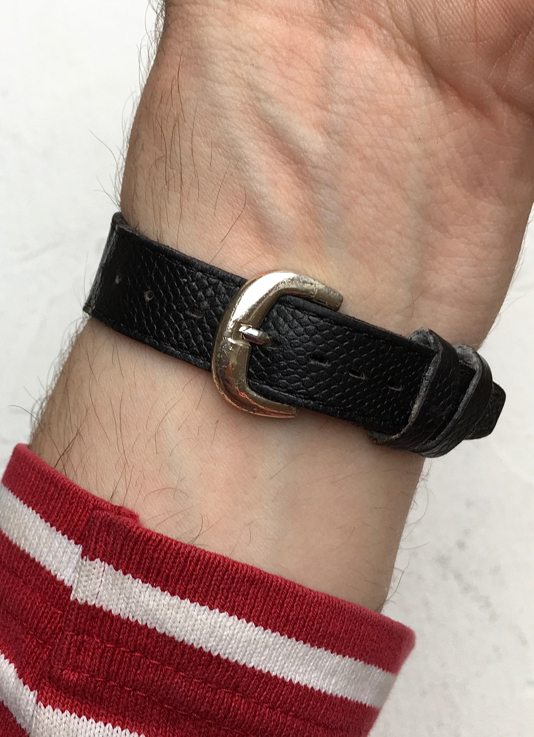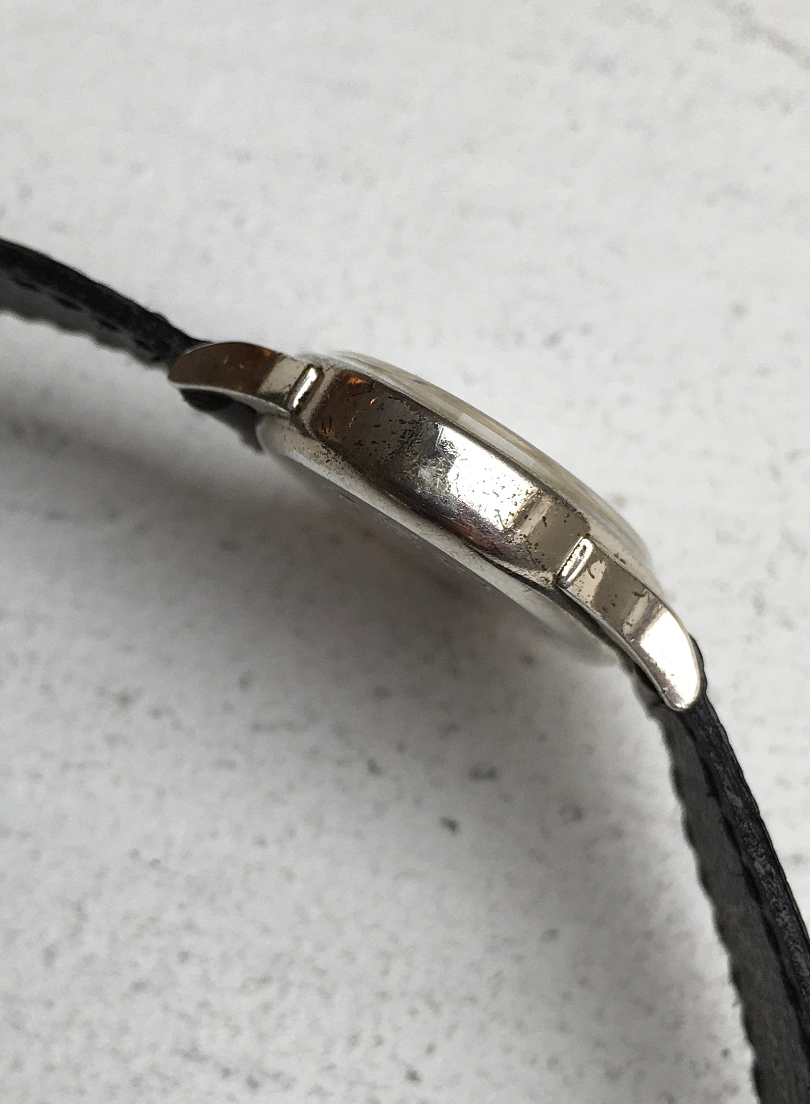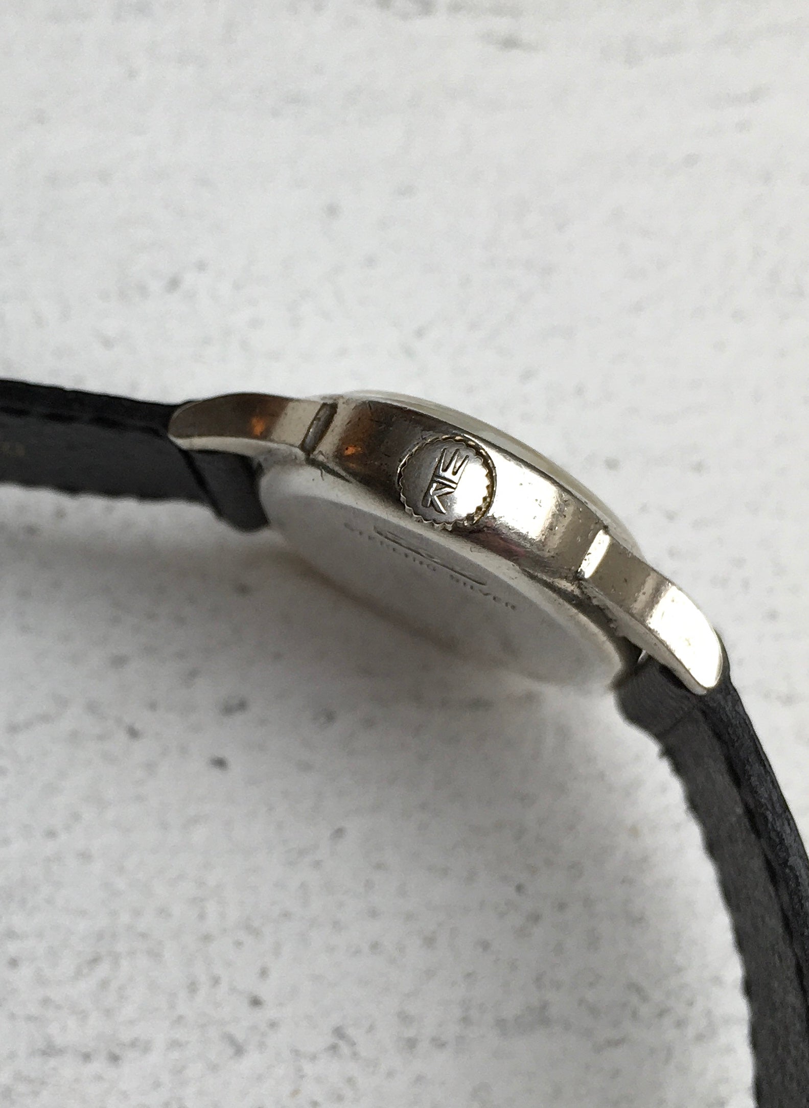 Although the black pressed leather strap is a later addition, the Sterling Silver buckle is very much original