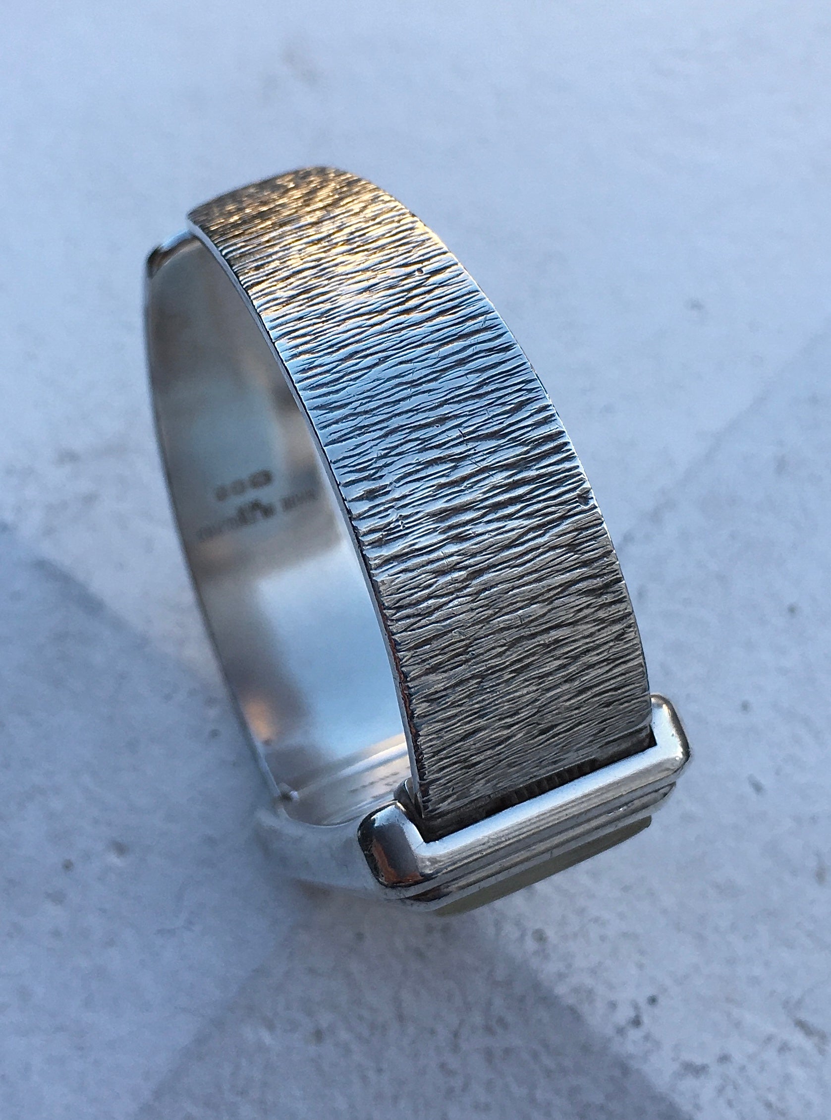 Featuring a fabulous sprung/hinged bangle bracelet with a bark effect finish that continues seamlessly through the dial, which is adorned with King’s signature, baton hands and framed by a stepped bezel