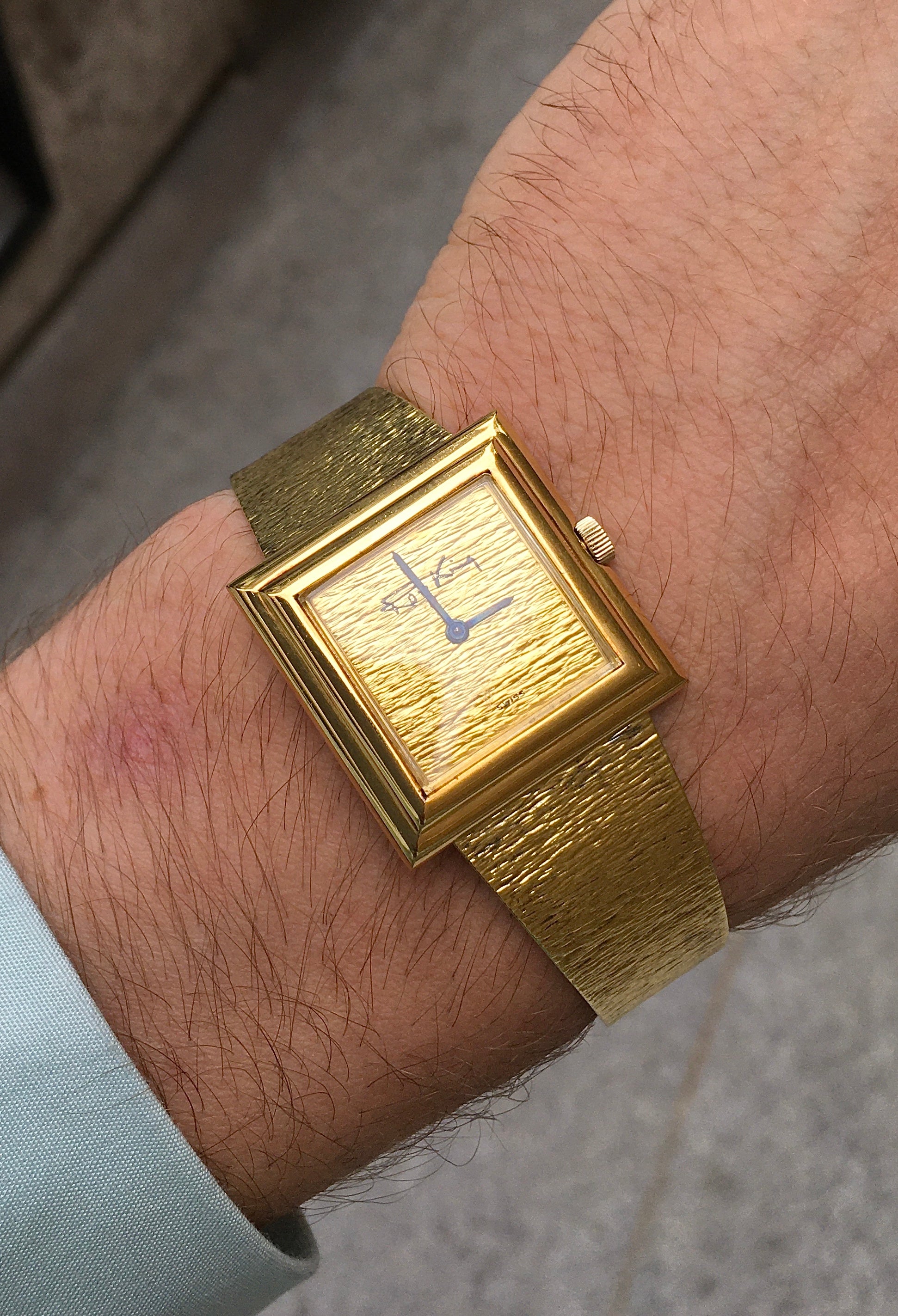 The gilding is in superb condition with only minor signs of wear to the inside of the bracelet, and the Swiss made Bueche-Girod manual wind movement runs smoothly and keeps excellent time