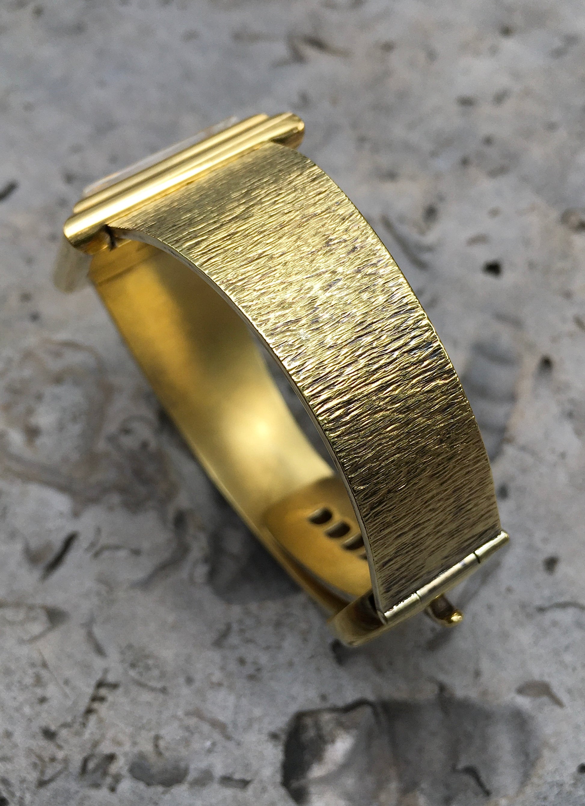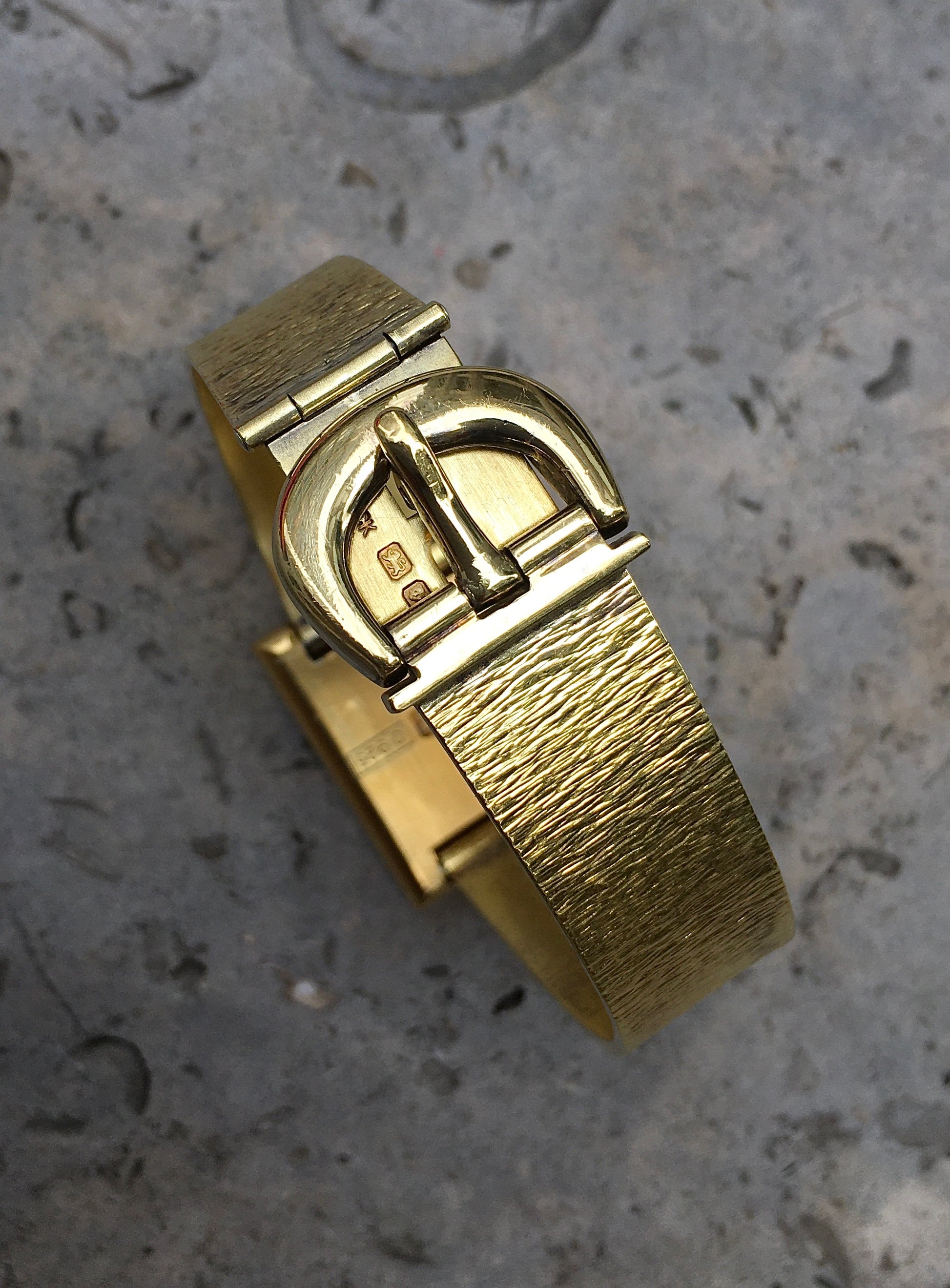 This remarkable piece was assayed in London in 1973 and features a hinged bark effect bangle and King’s iconic buckle clasp