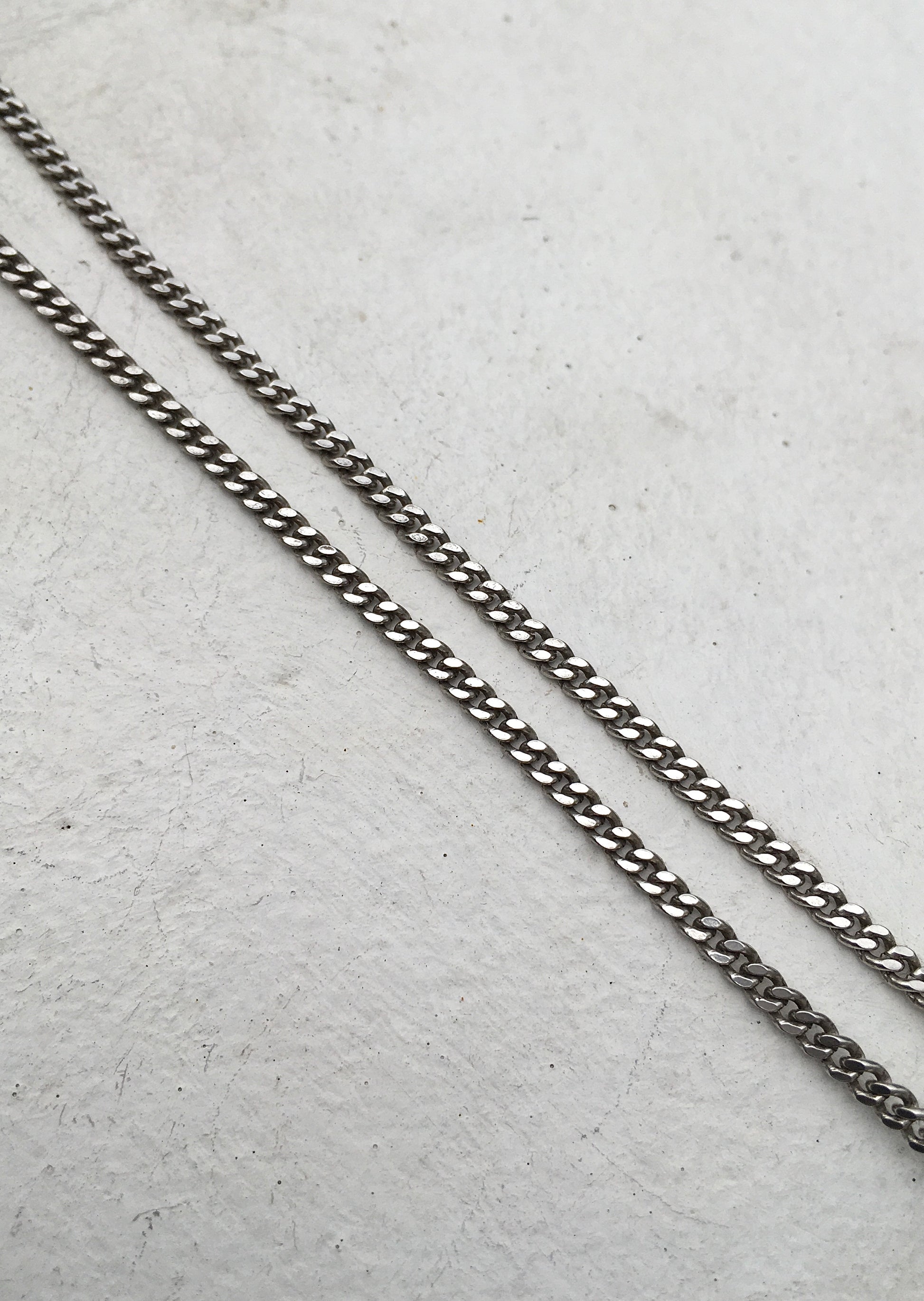 Hung from a Sterling Silver curb link chain of a similar vintage