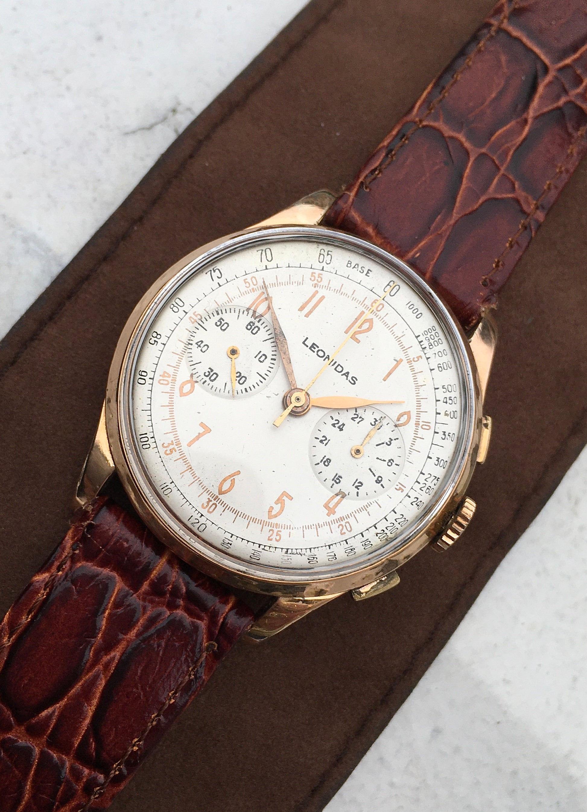 Vintage 1950s 18k Rose Gold Leonidas Chronograph