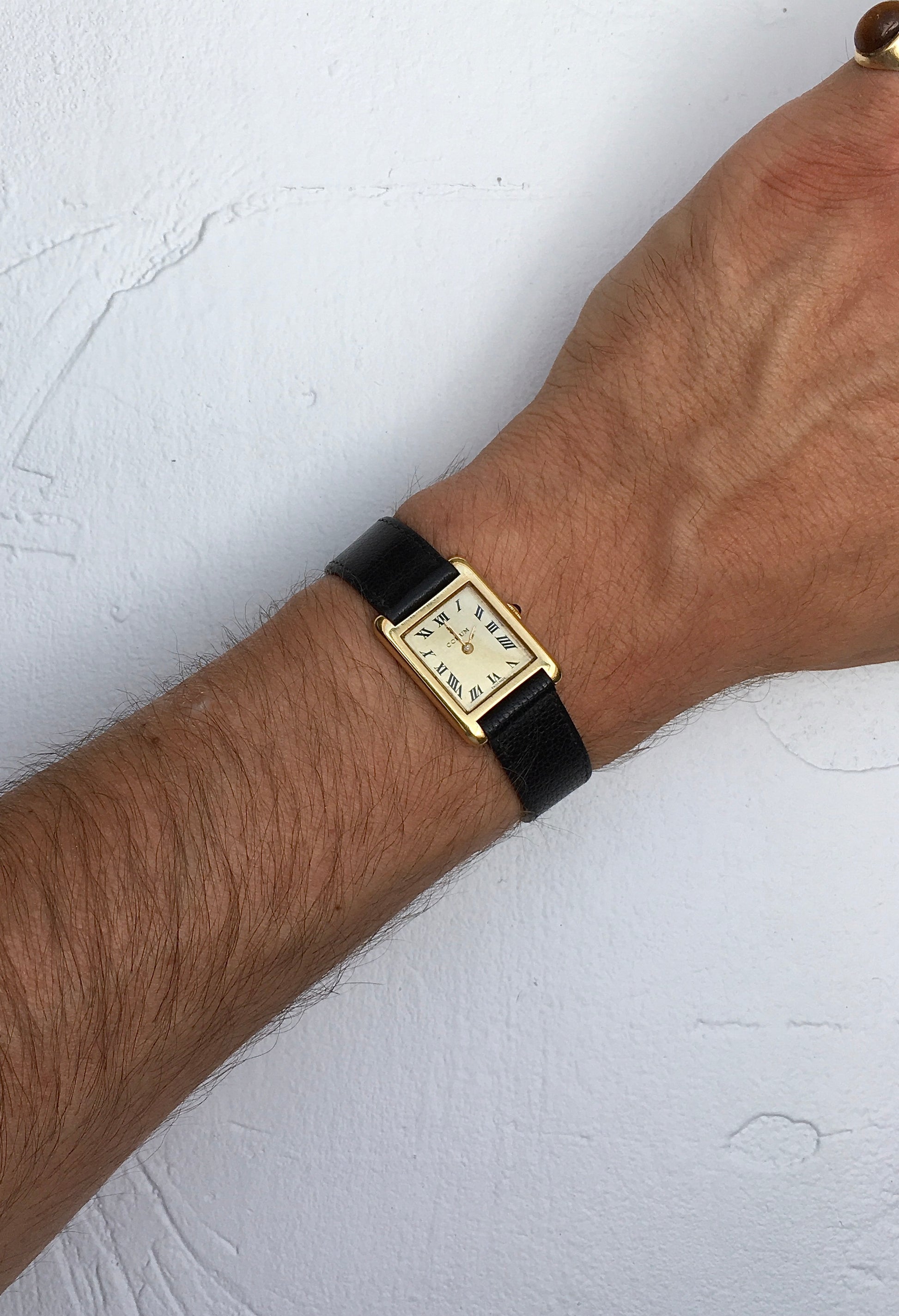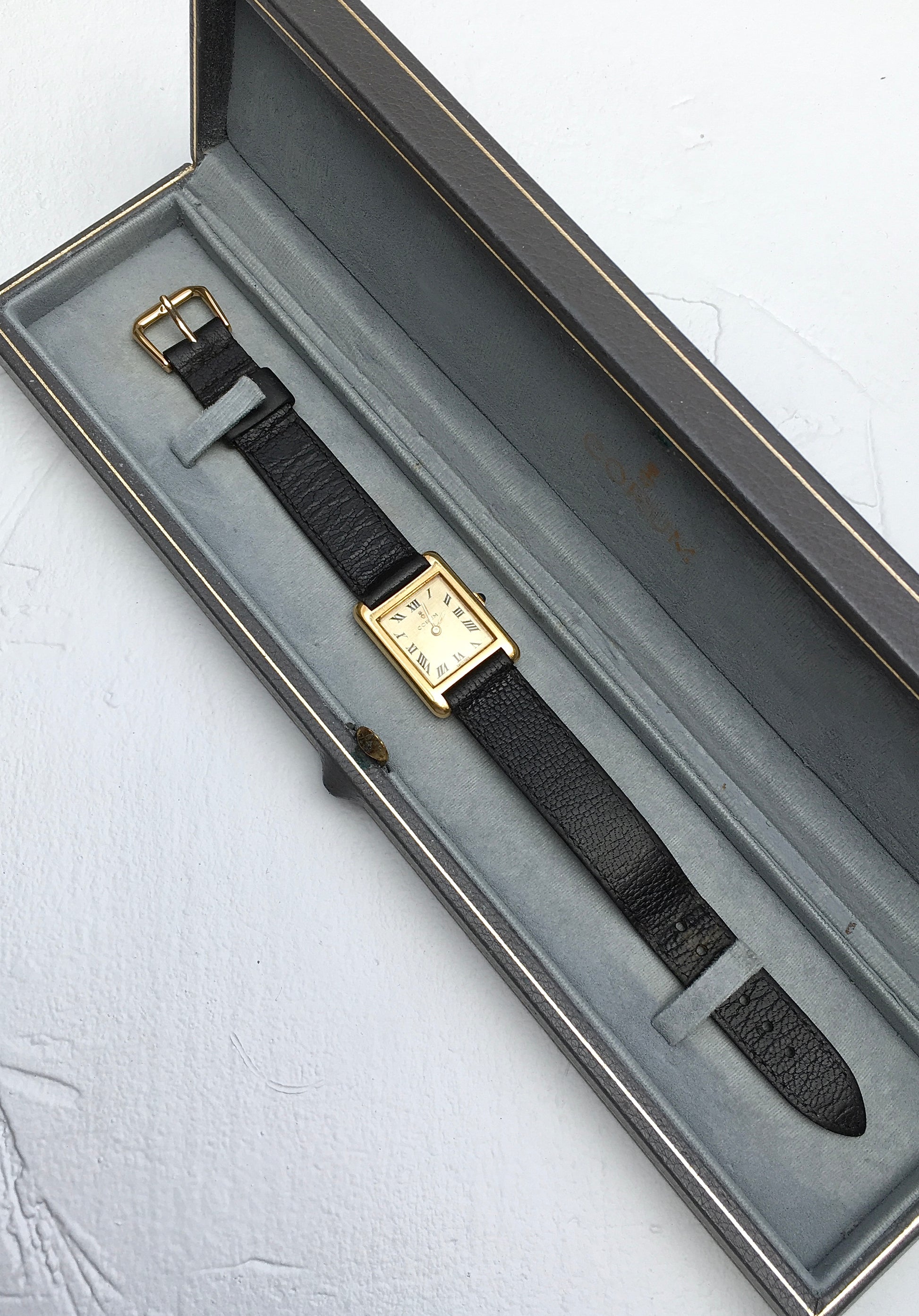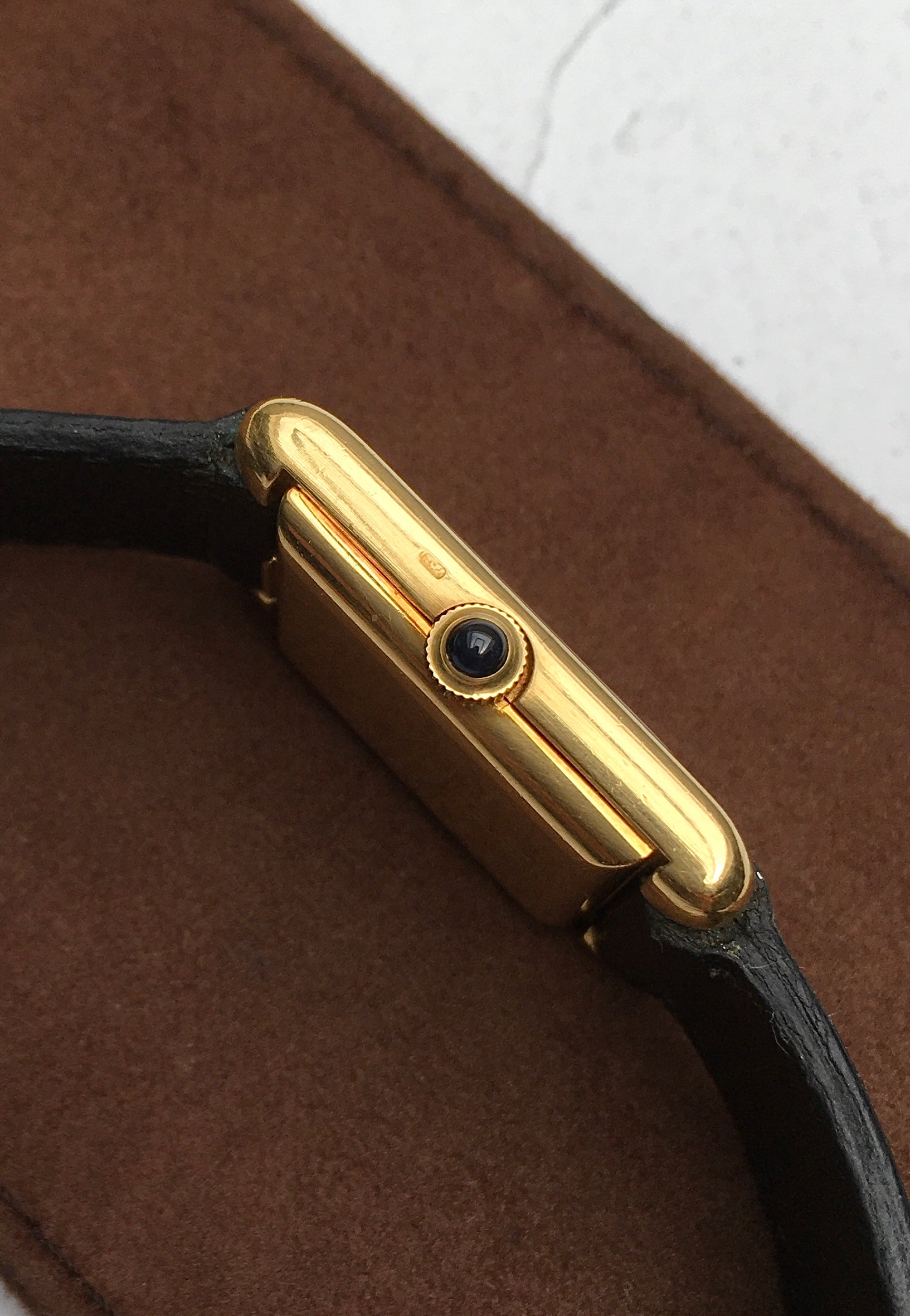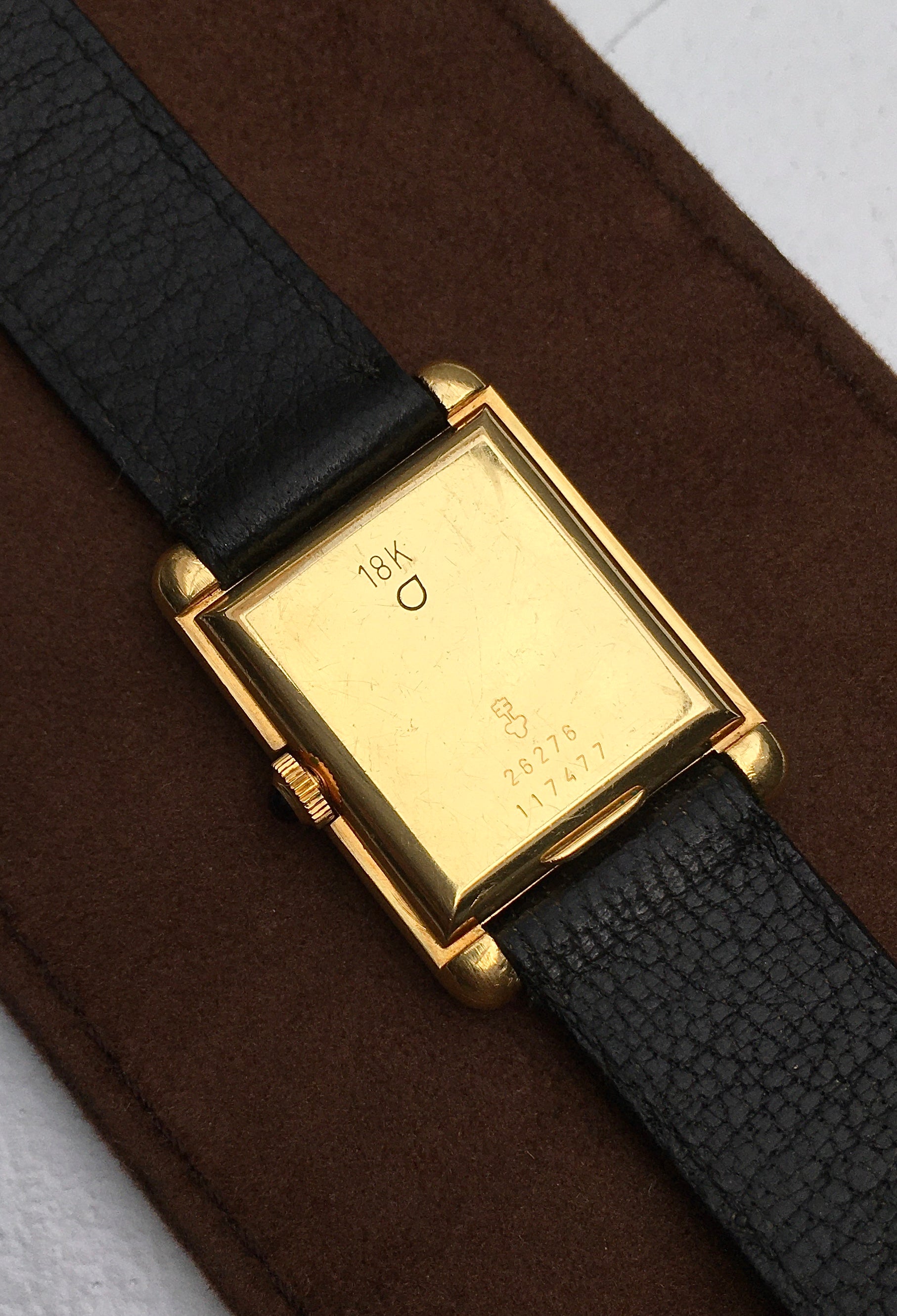 A classically elegant 1979 18 carat yellow gold Corum Tank style wristwatch