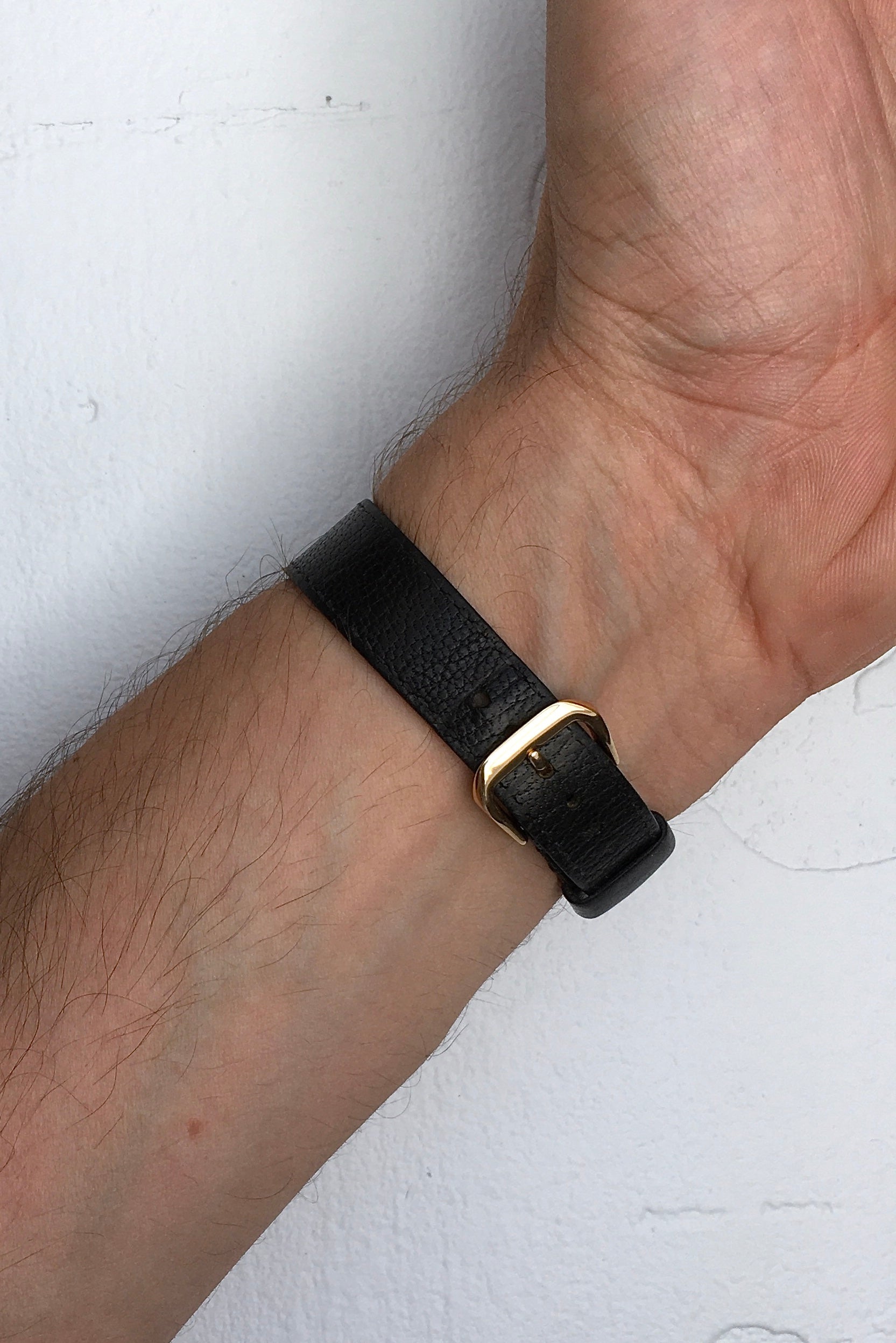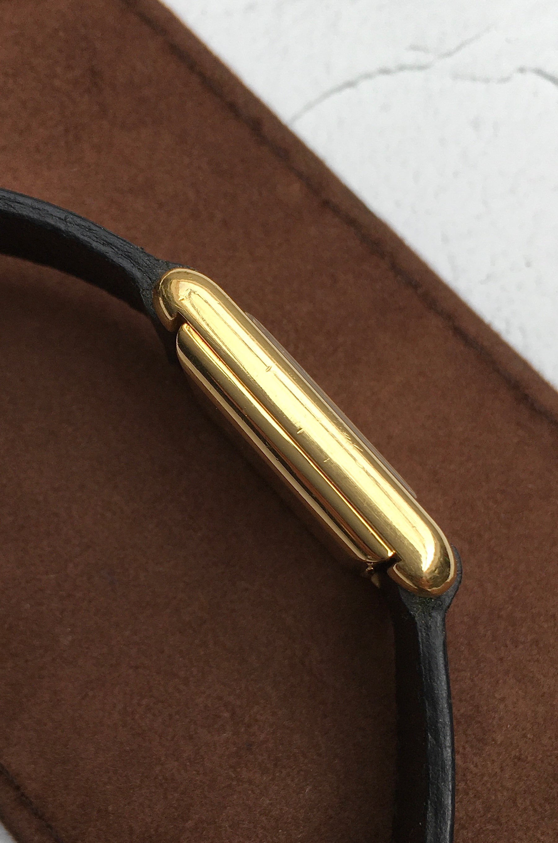 As well as a stamp to the side of the crown, the inside of the case back is boldly hallmarked, showing import marks for Sheffield 1979 (including ‘SAO’ for the Sheffield Assay Office) as well as fineness markings of 750. Also present is the profile of Helvetia, the national personification of Switzerland and the country’s hallmark for 18ct gold