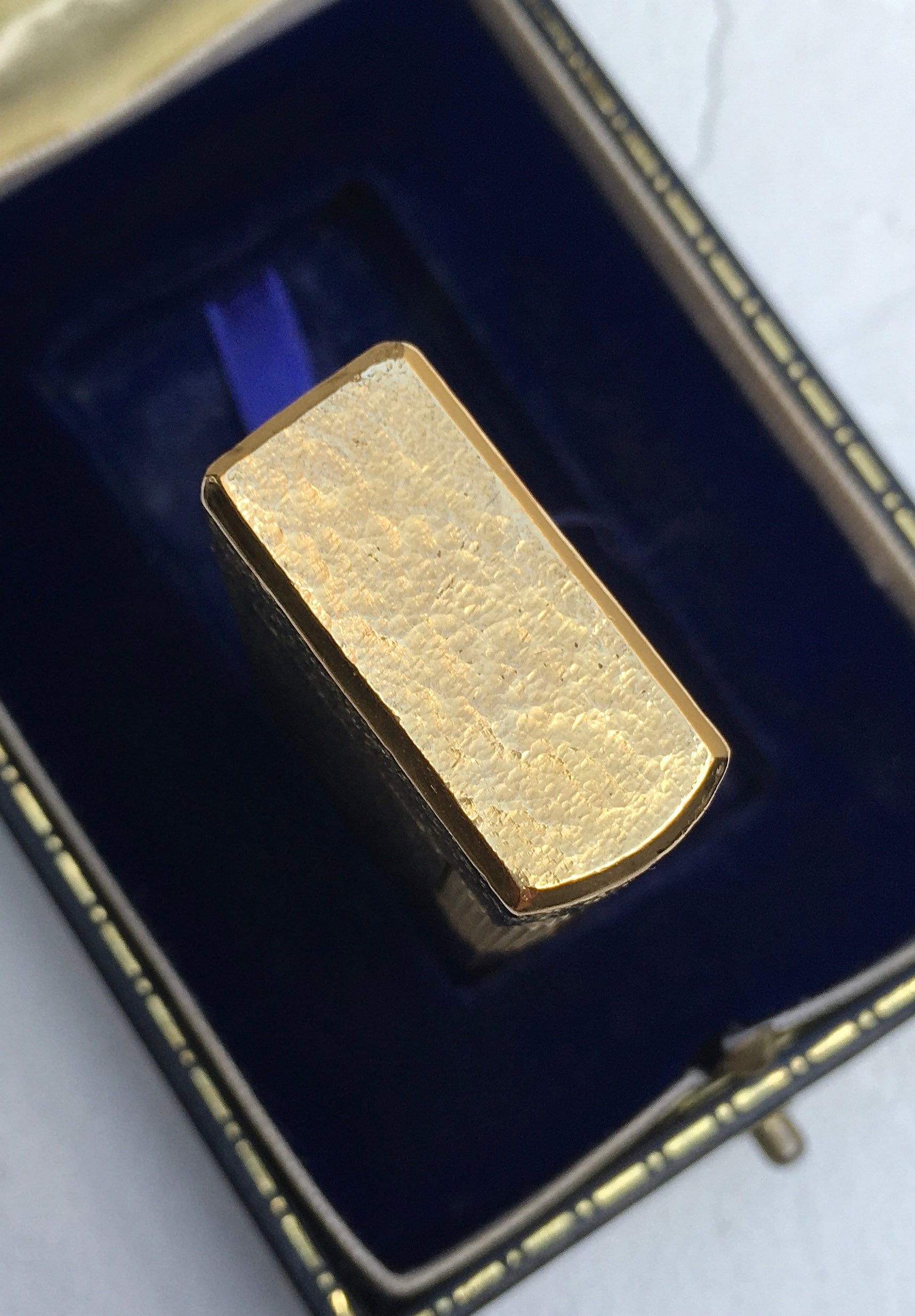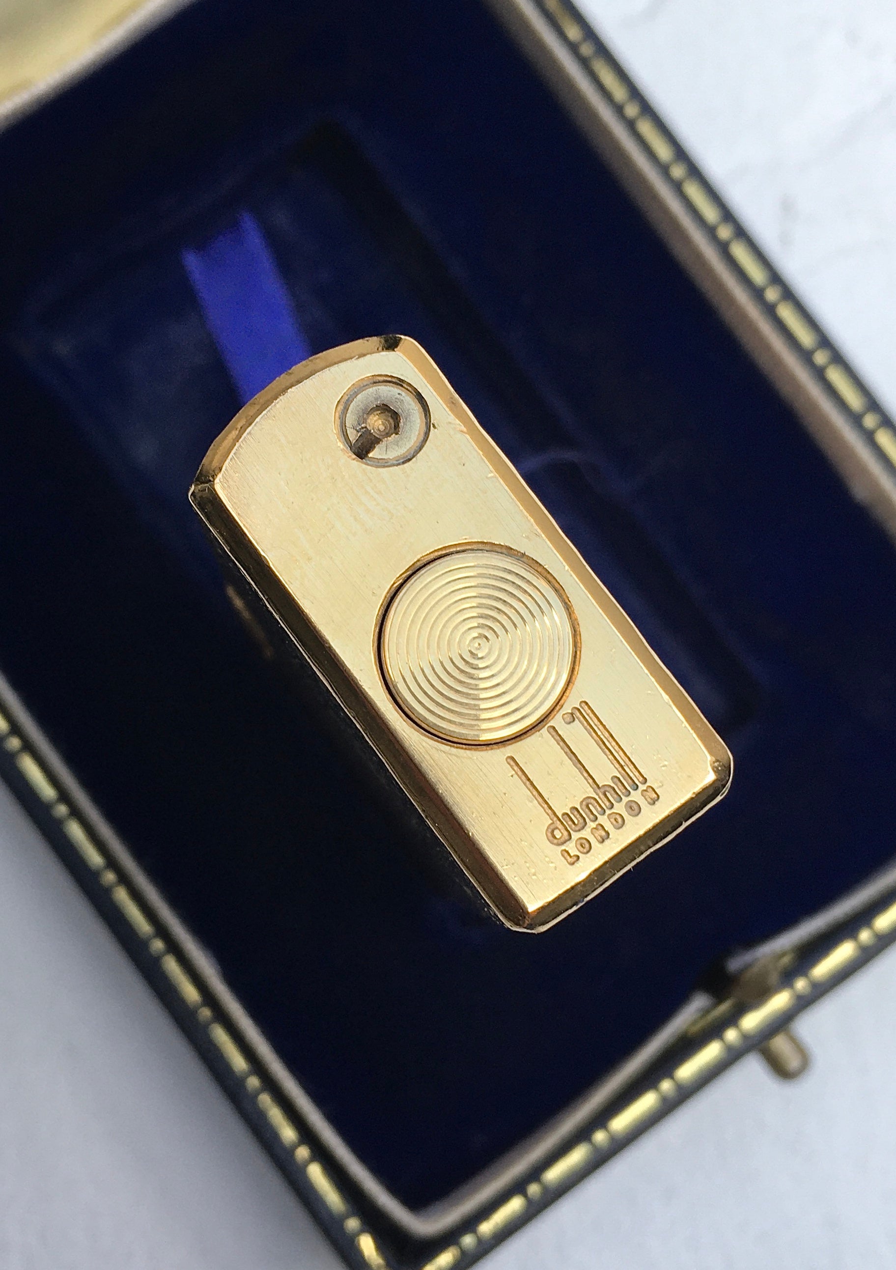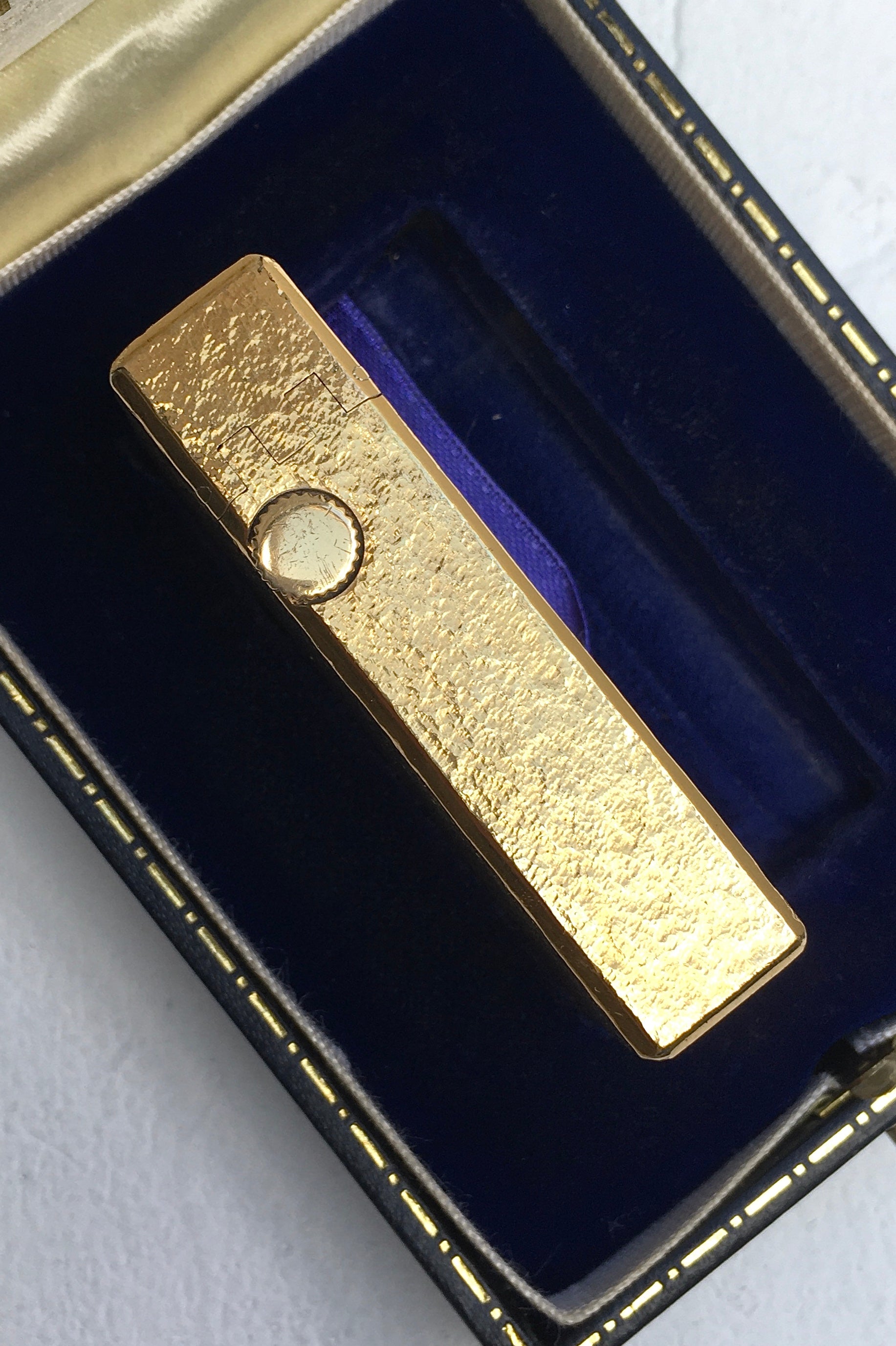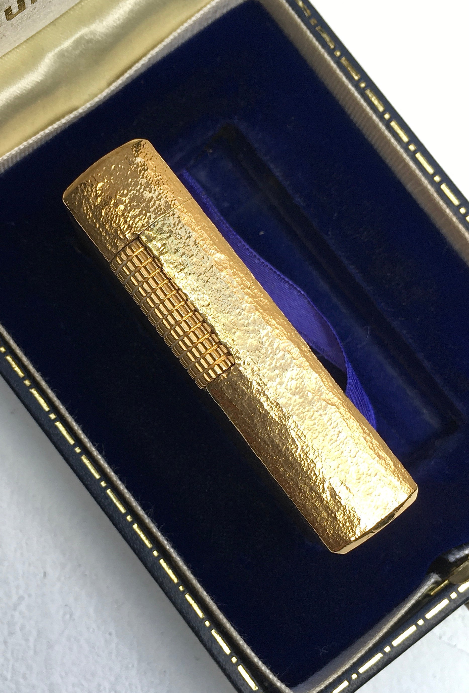 A proper British made piece is this c.1970 18k gold plated ‘bark’ finish Dunhill 70 butane lighter
