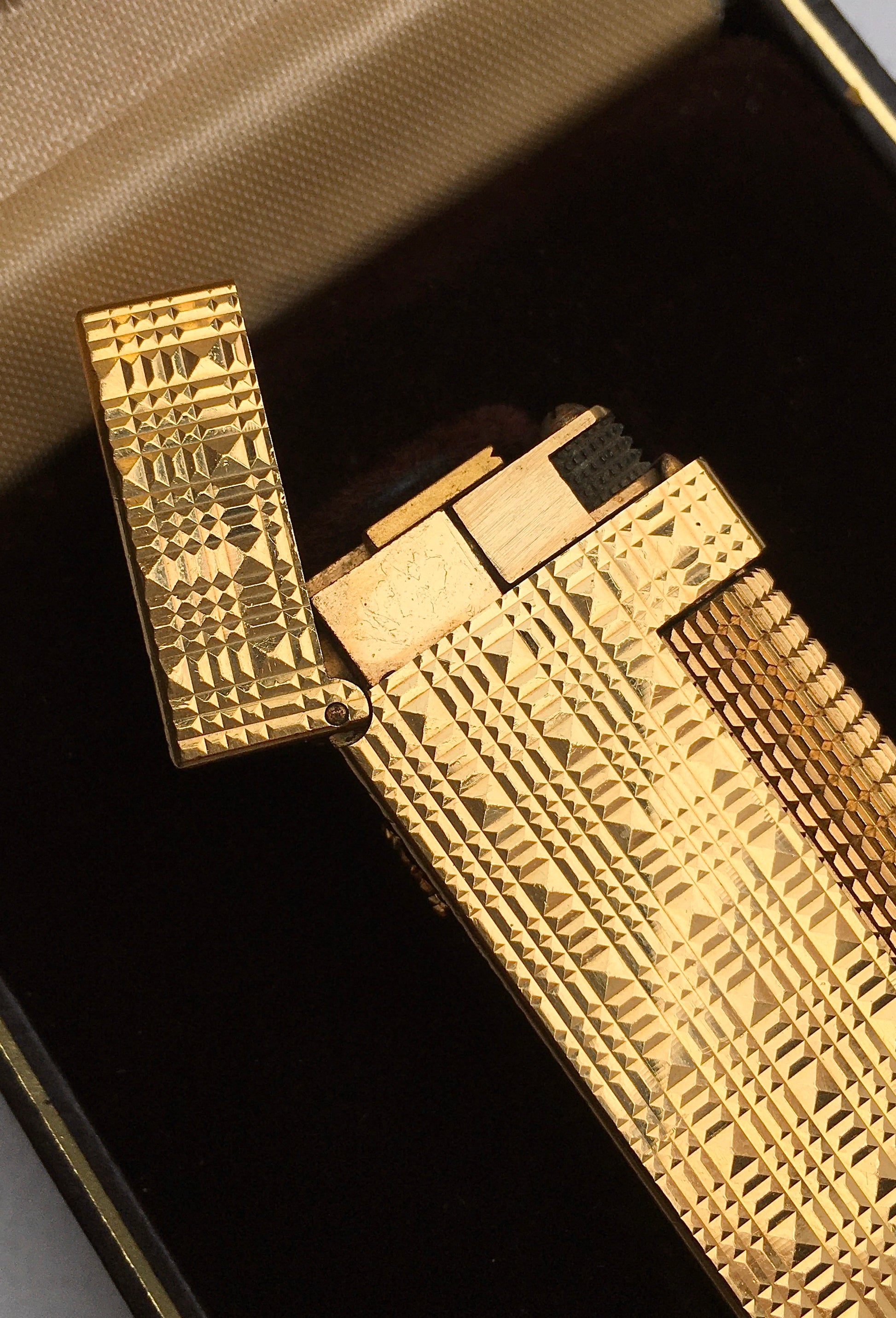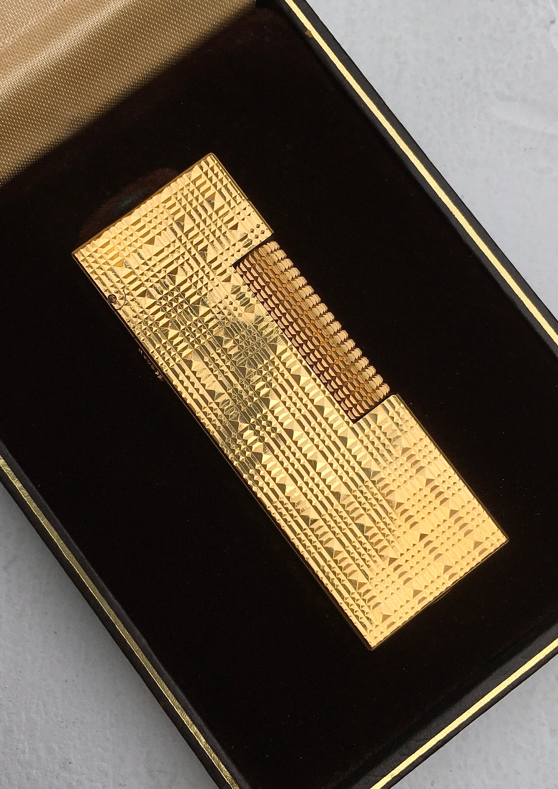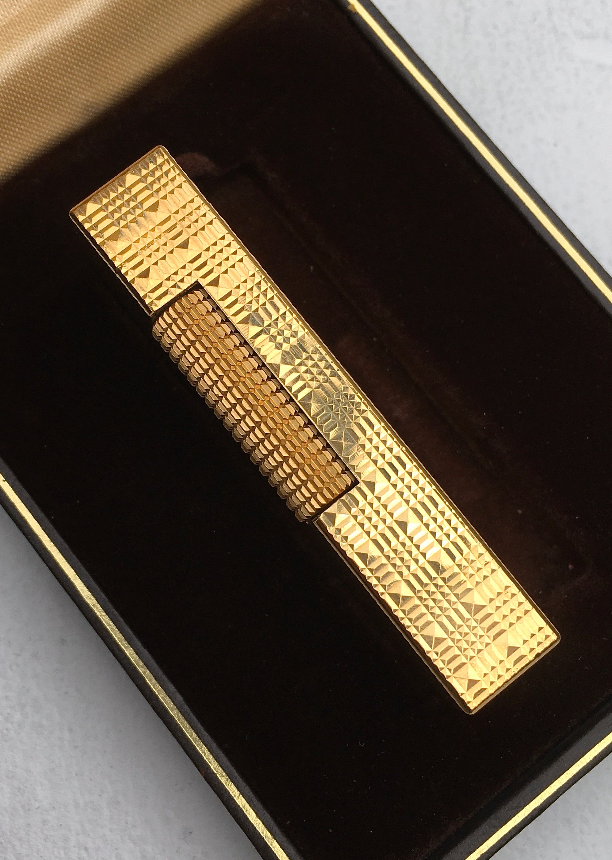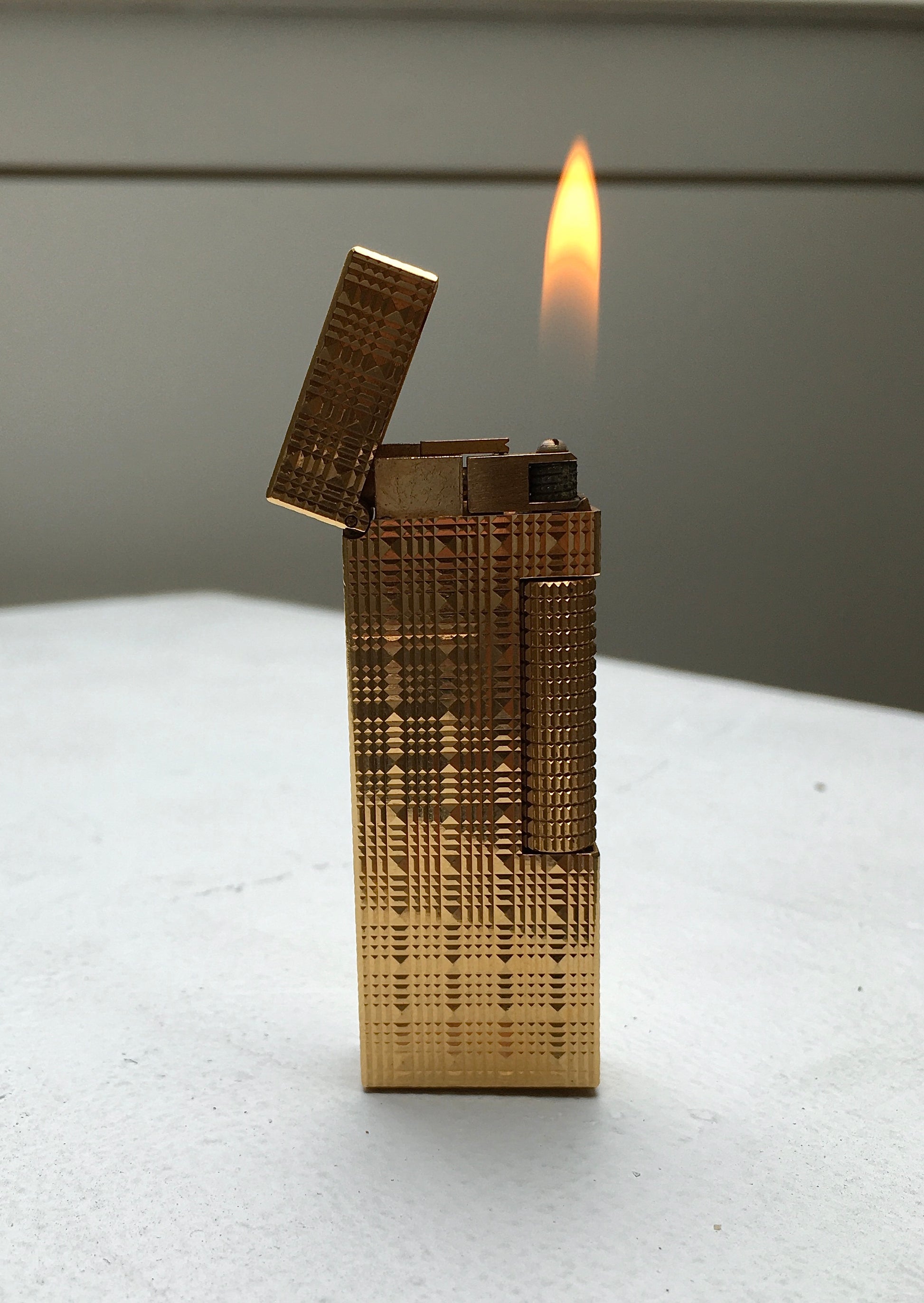 An outstanding 1970s 18k gold plated ‘Tartan’ finish Dunhill Rollagas butane lighter