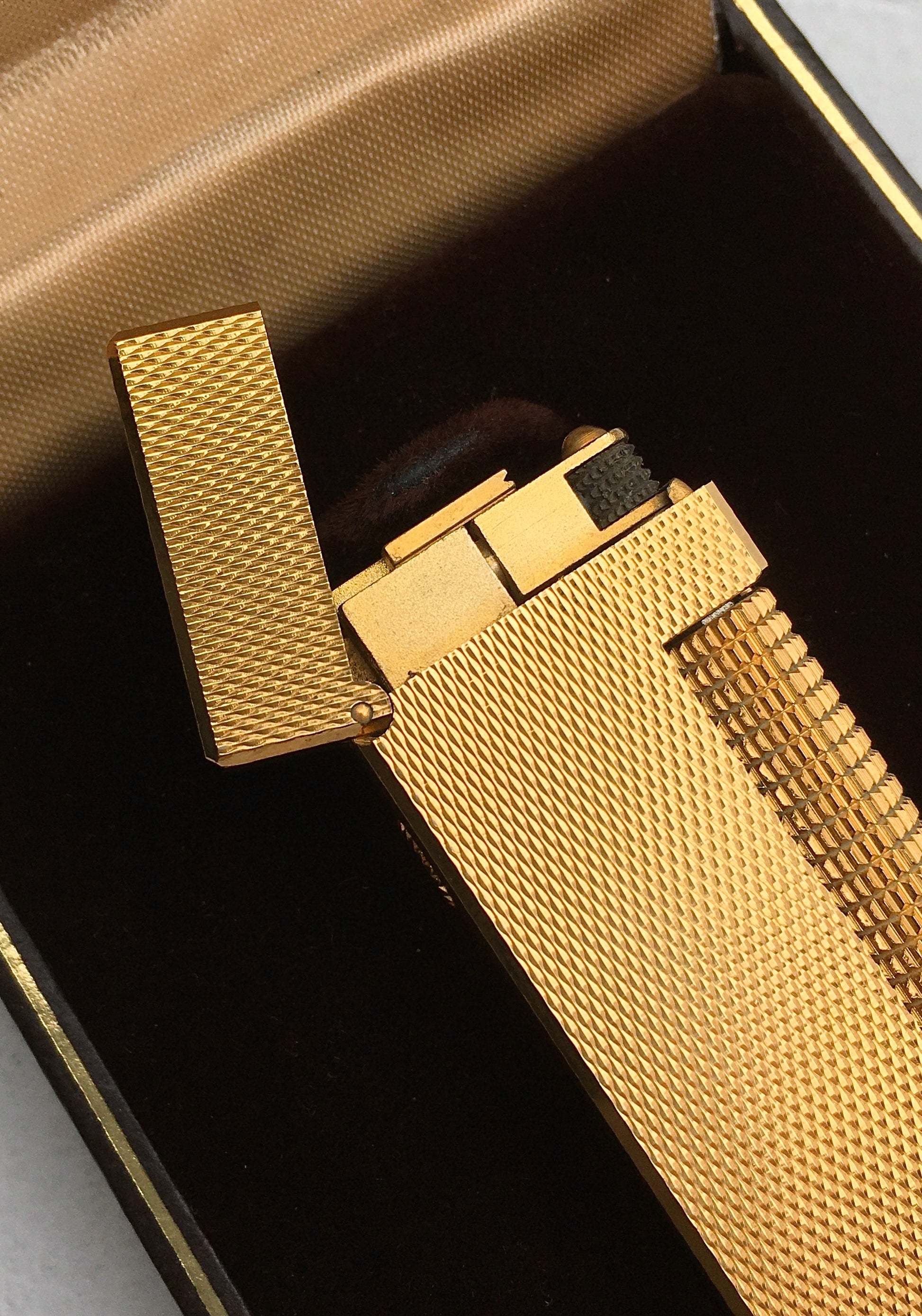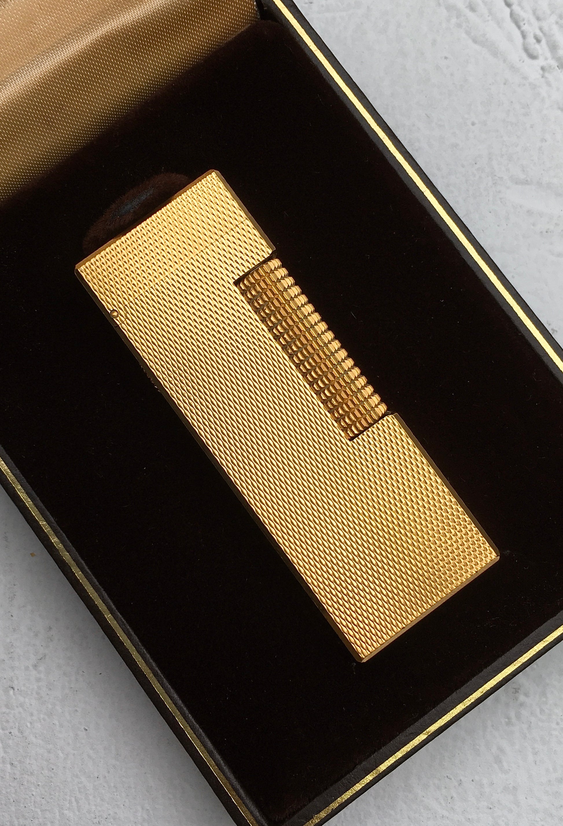 An outstanding 1970s 18k gold plated ‘Barley’ finish Dunhill Rollagas butane lighter