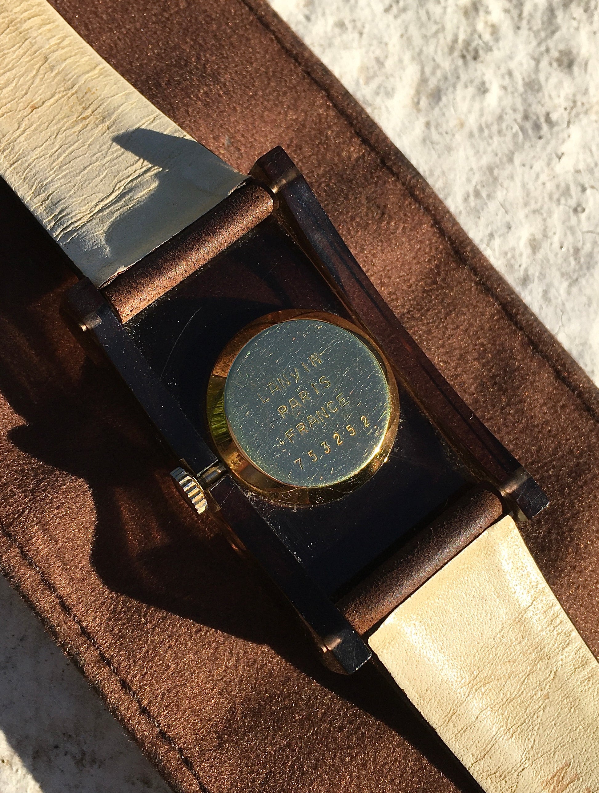 The plated case back is stamped ‘Lanvin, Paris, France’ with a reference of ‘753252’