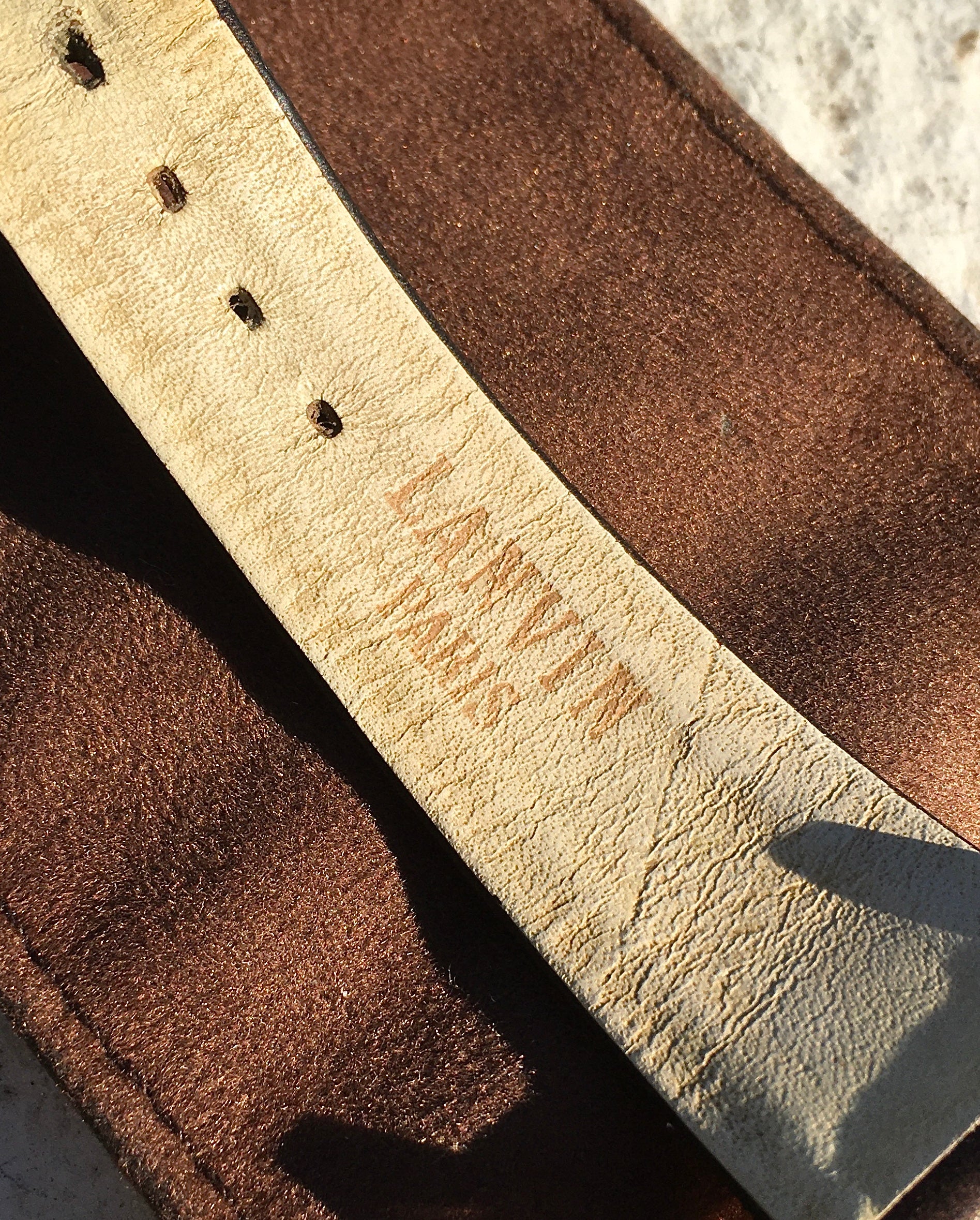 Fitted is the original Lanvin stamped brown leather strap
