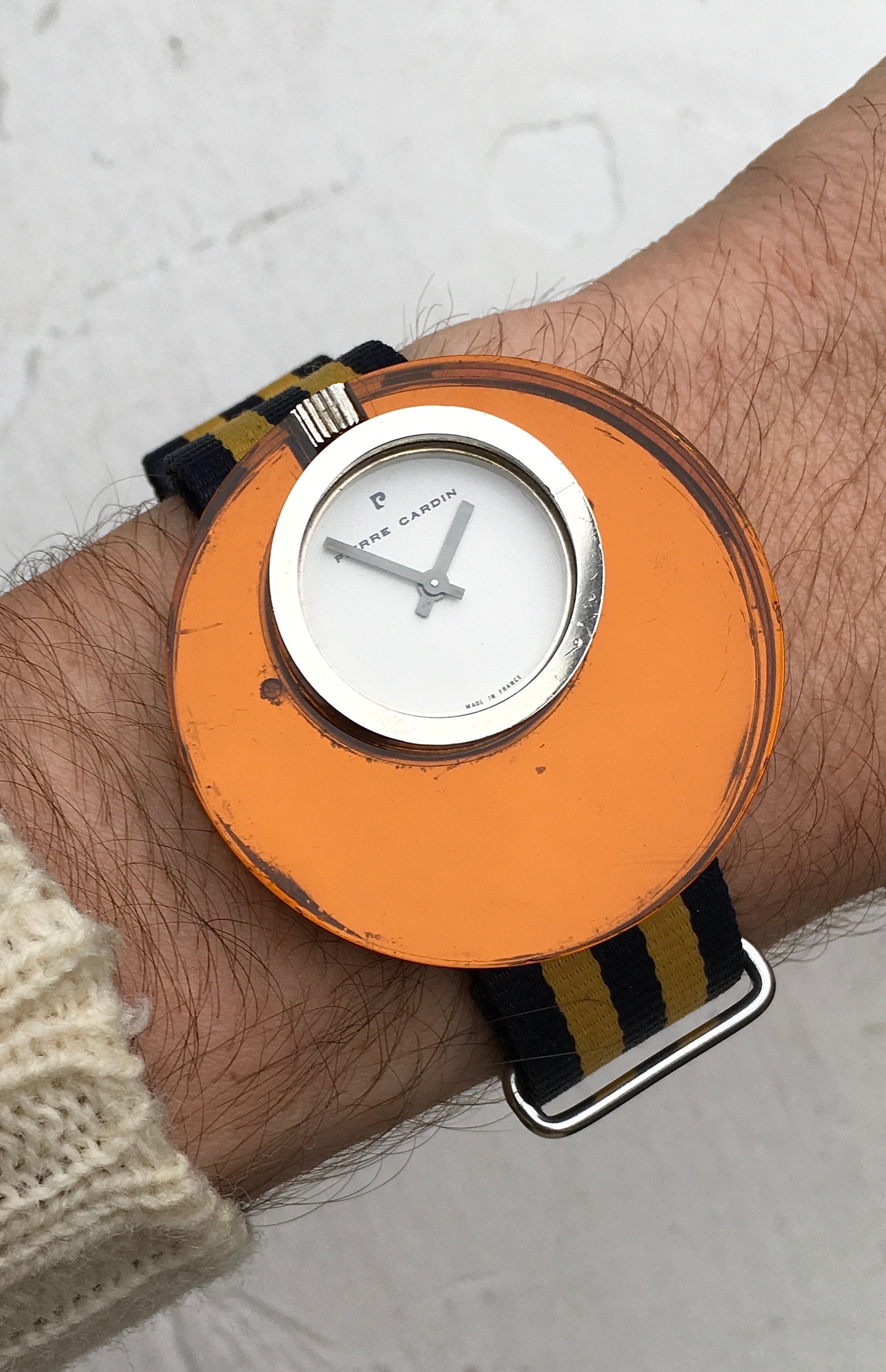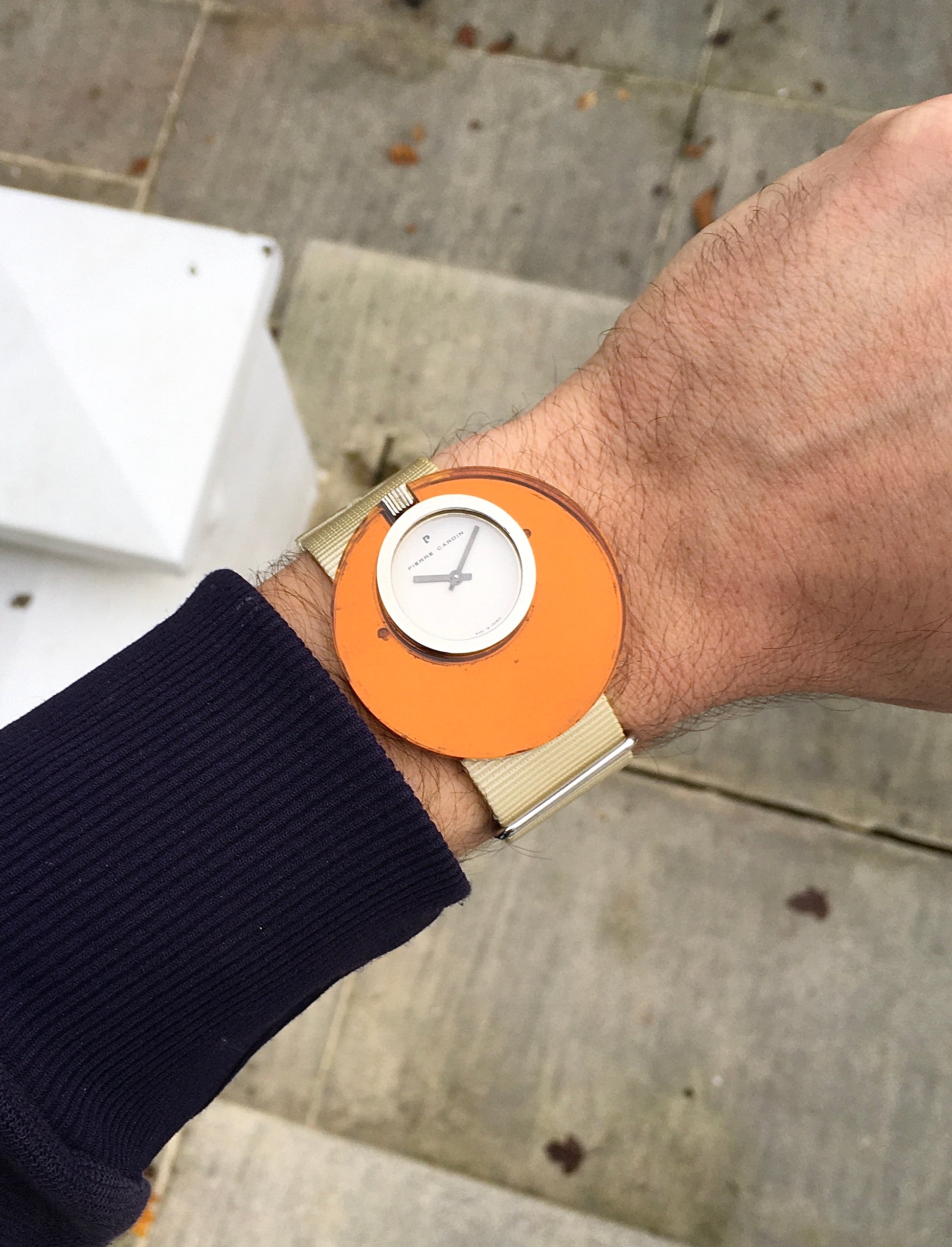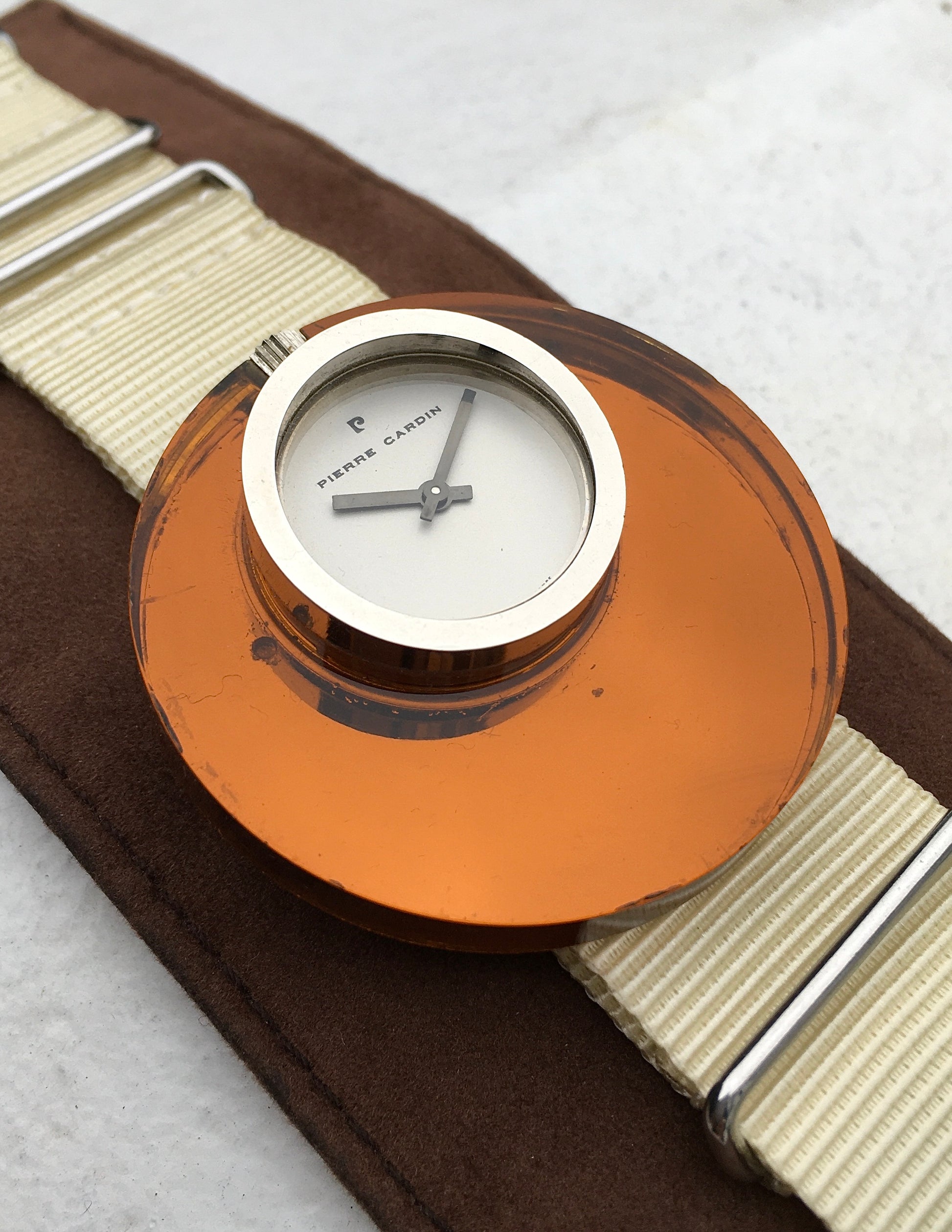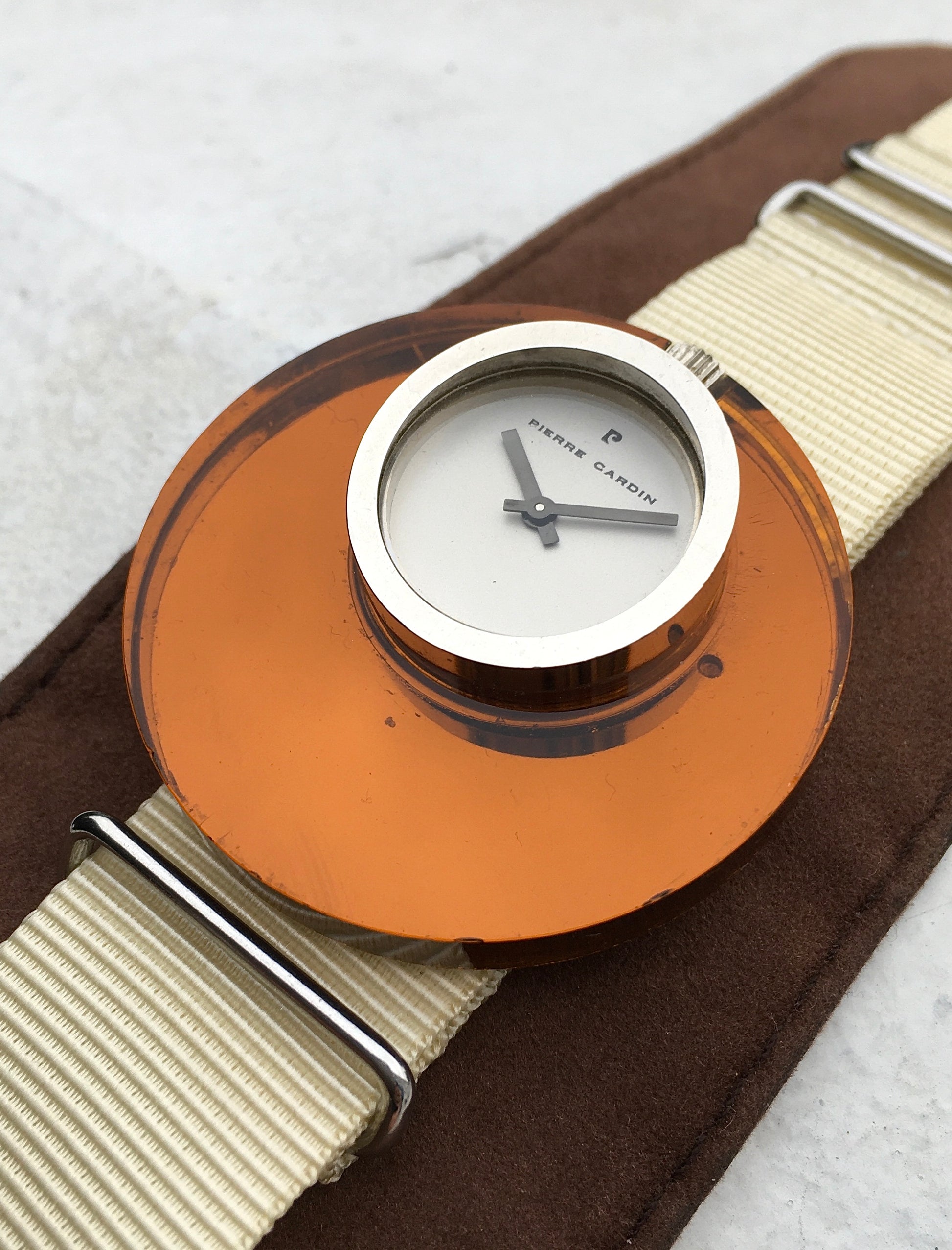 An insane piece from the Italian-French fashion designer Pierre Cardin’s 1971 ‘Espace’ line of wristwatches