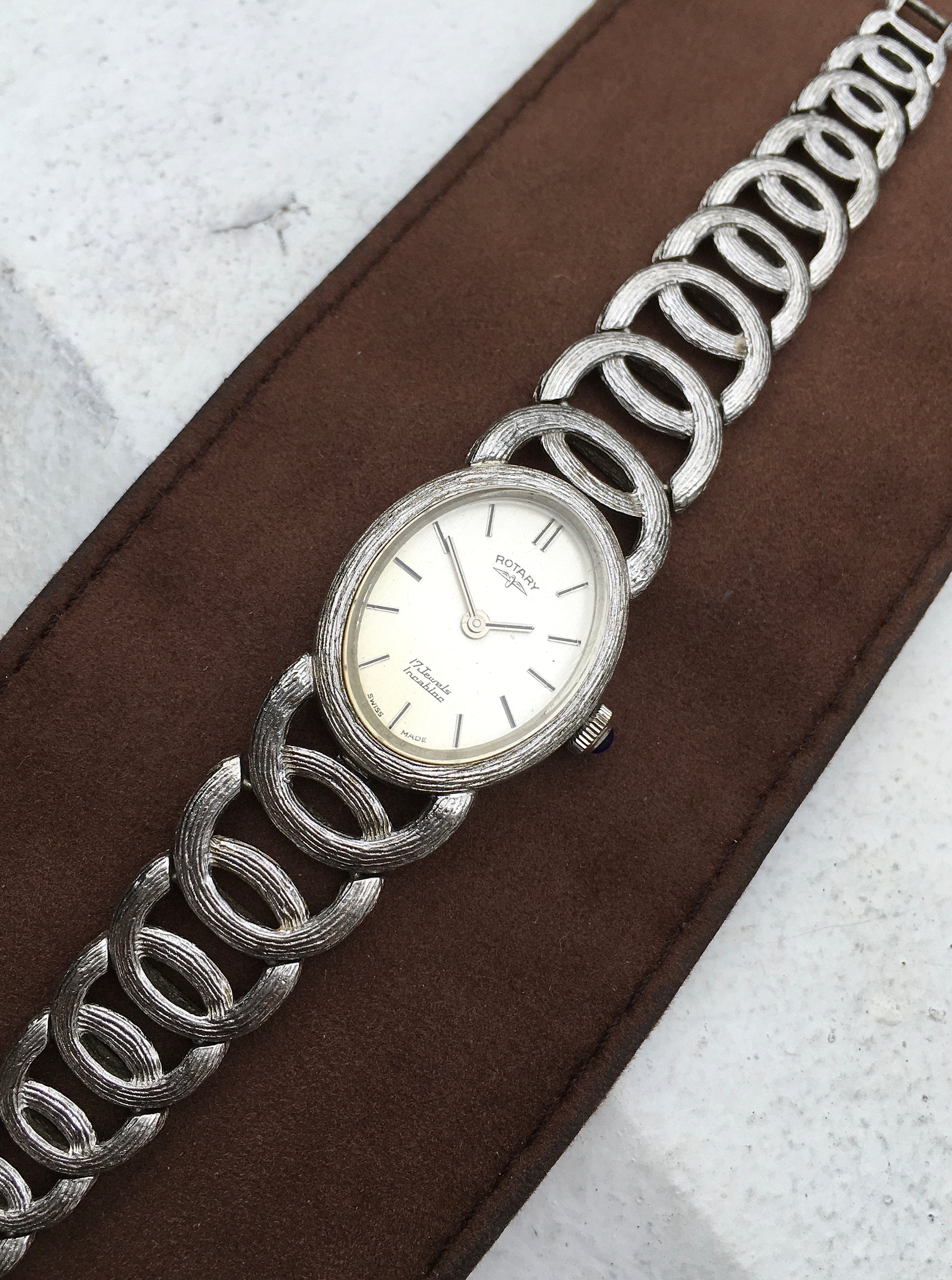 The Swiss made, Rotary signed, FHF cal. manual wind movement runs smoothly and keeps good time