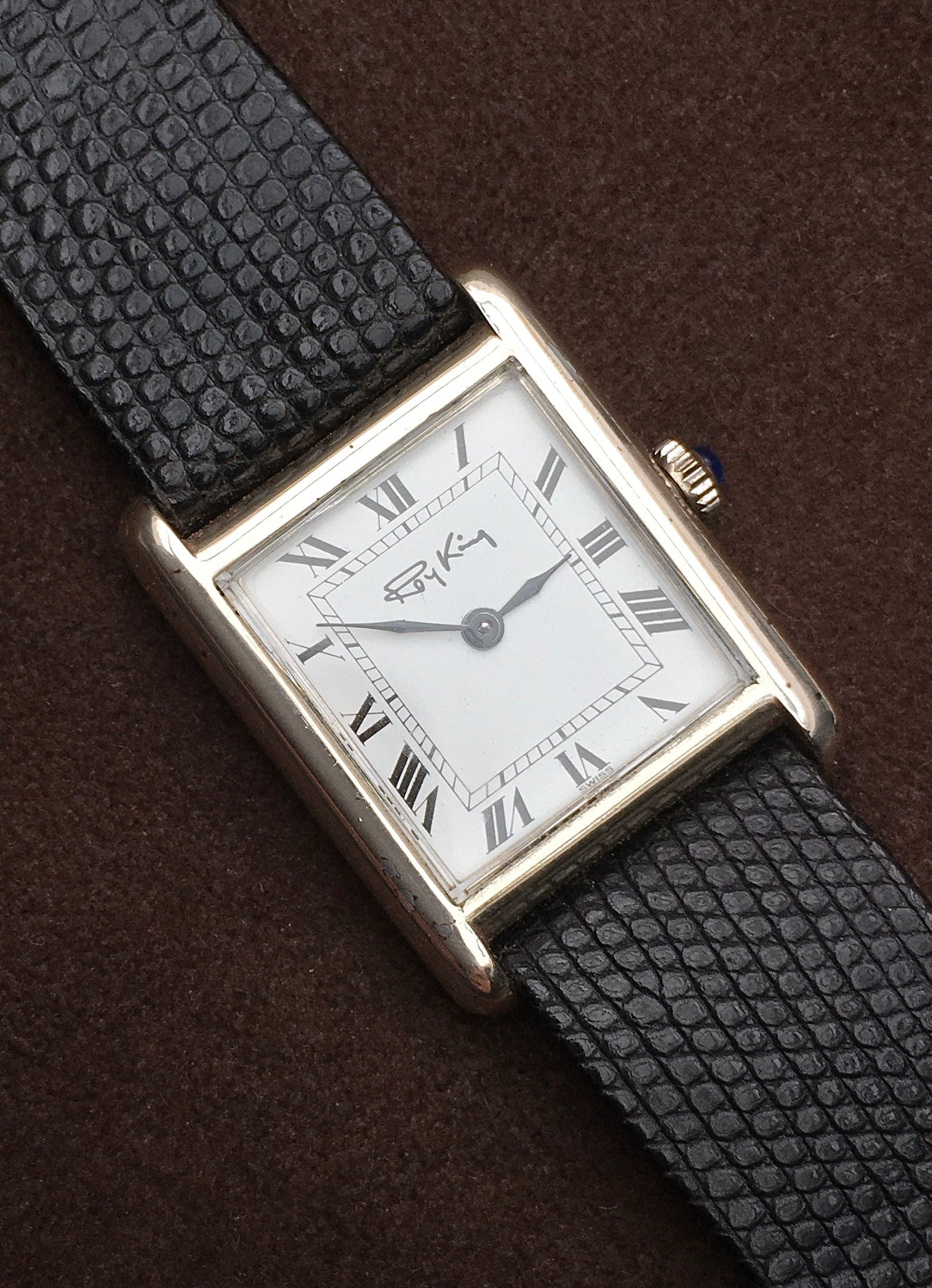The case-back features the standard Roy King hallmarks as well as the late Queen’s profile as the watch was assayed the year of her Silver Jubilee