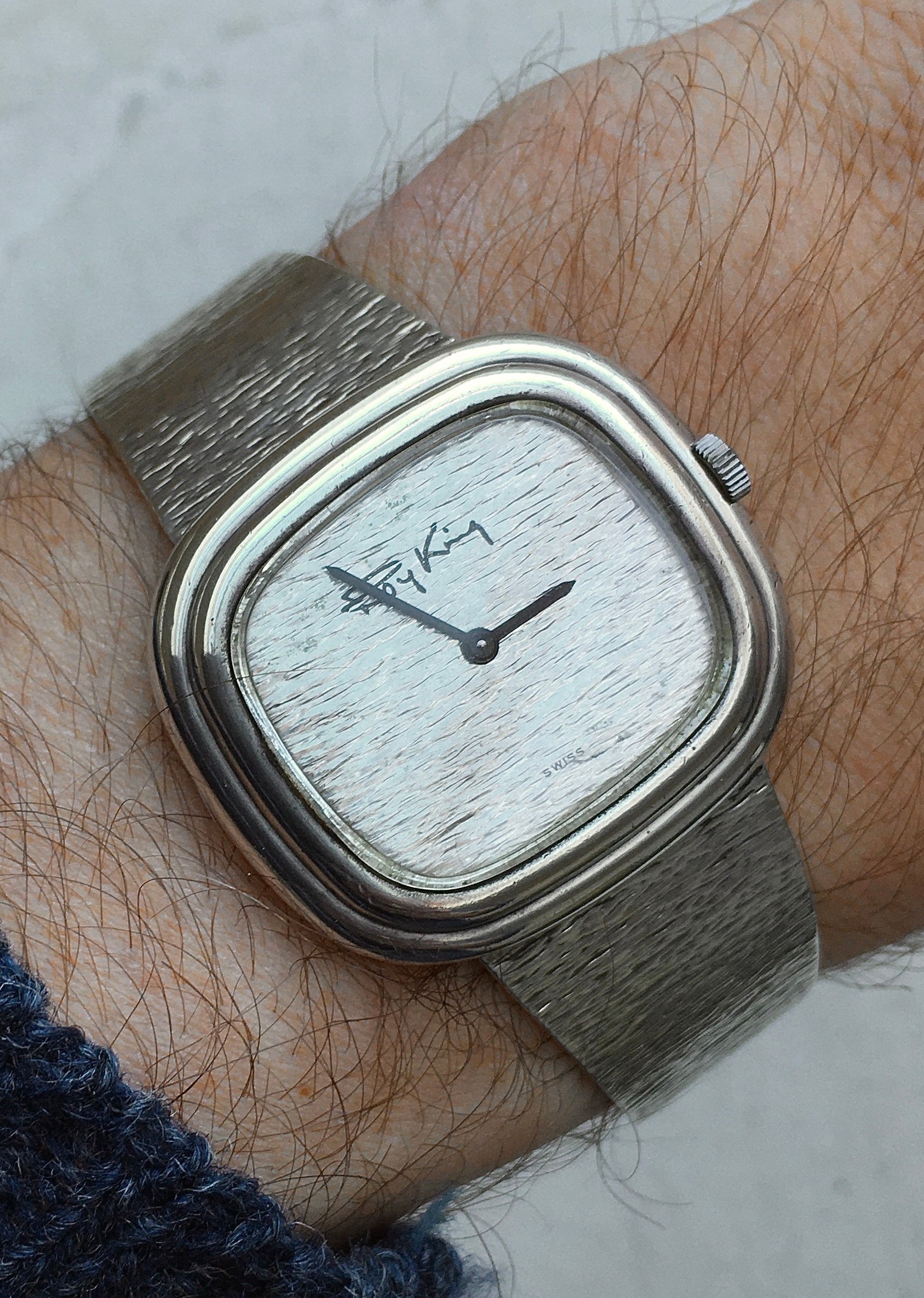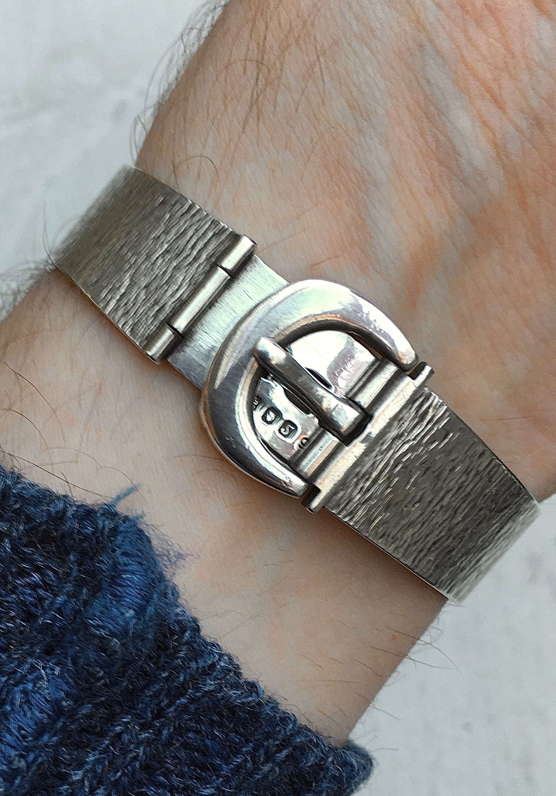 A Sterling Silver wristwatch by esteemed jeweller Roy King, winner of two first prizes, a second and a third at the British Modern Jewellery Exhibition in 1961. The winning pieces are now in the permanent collection of Goldsmith’s Hall
