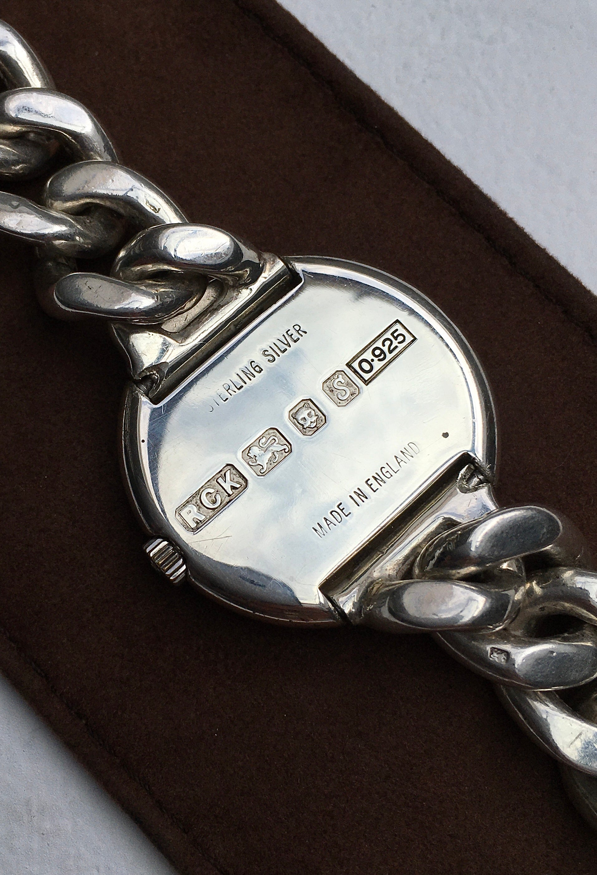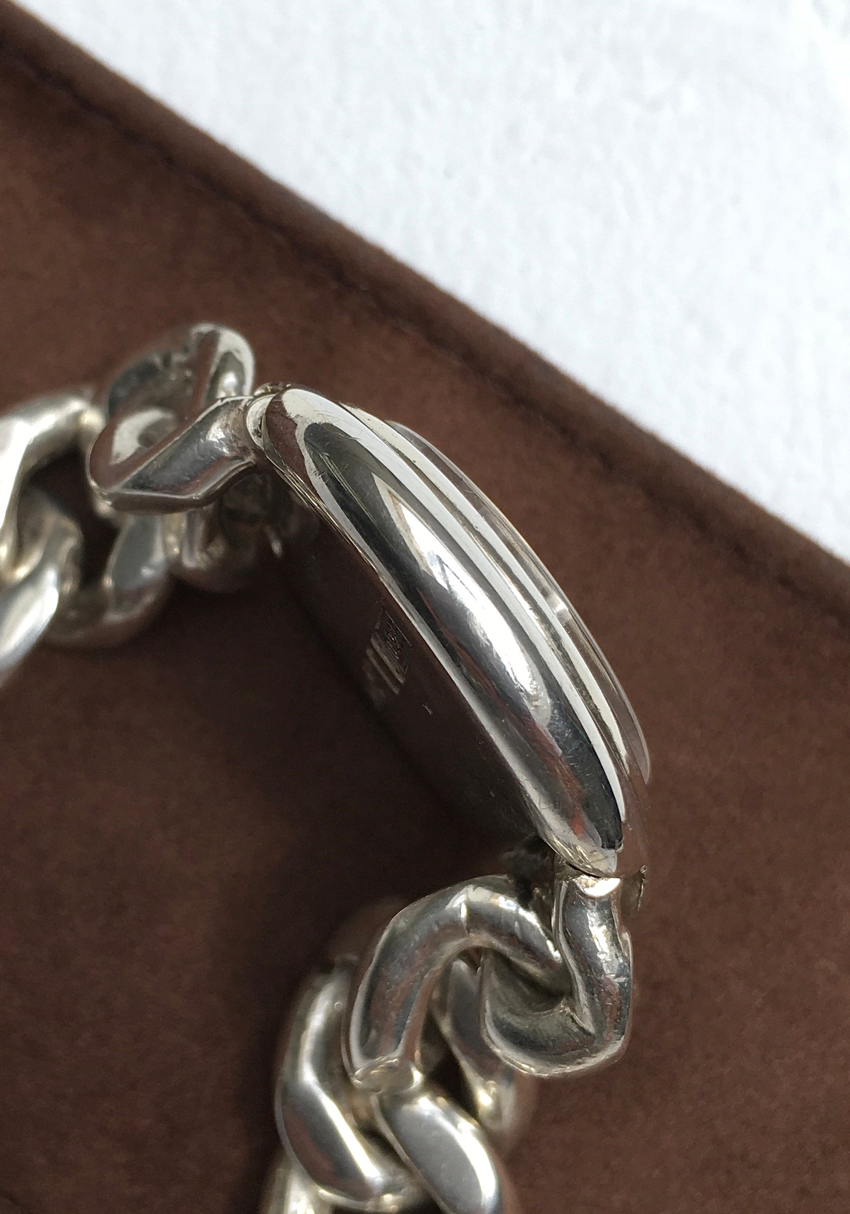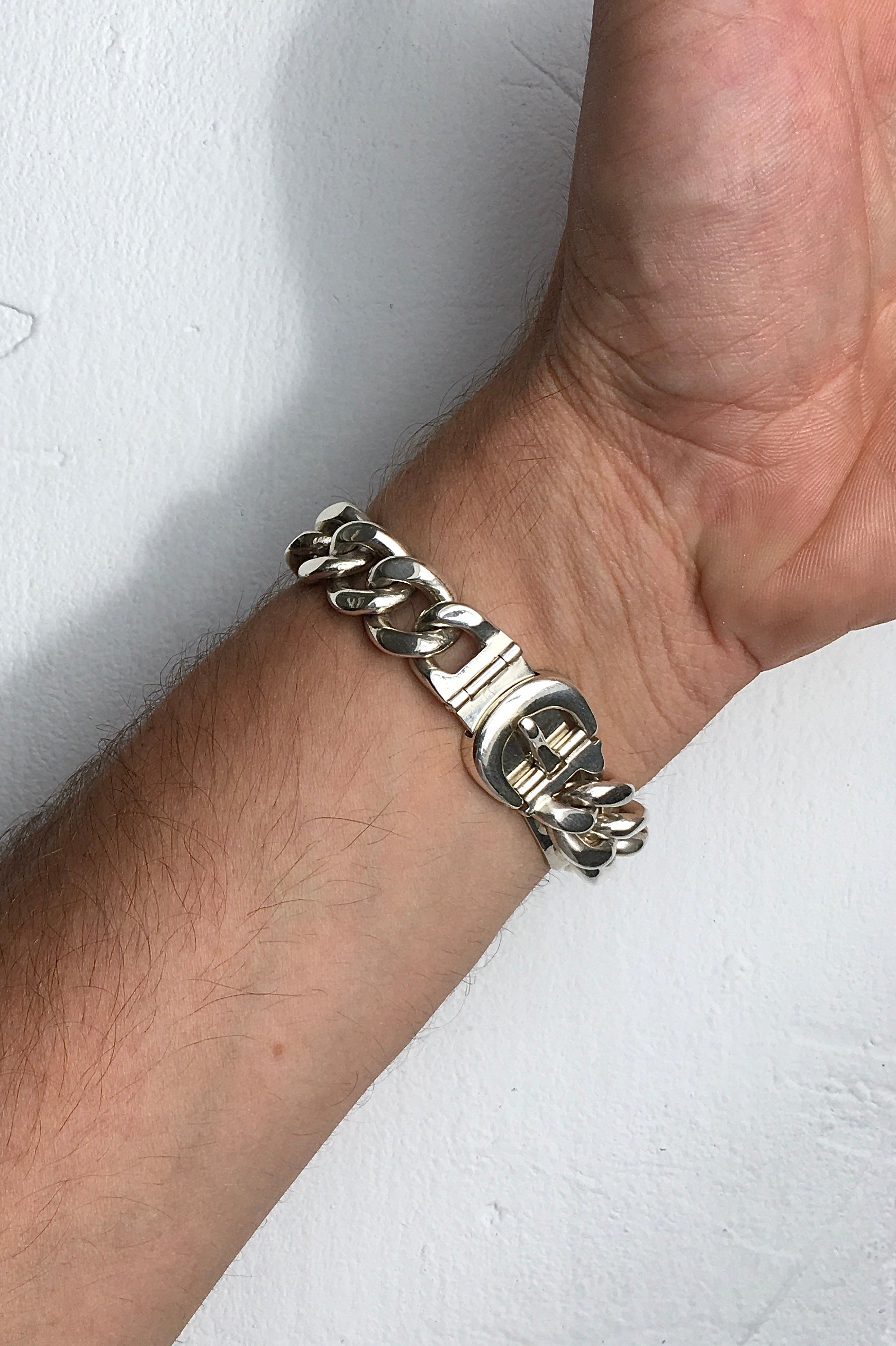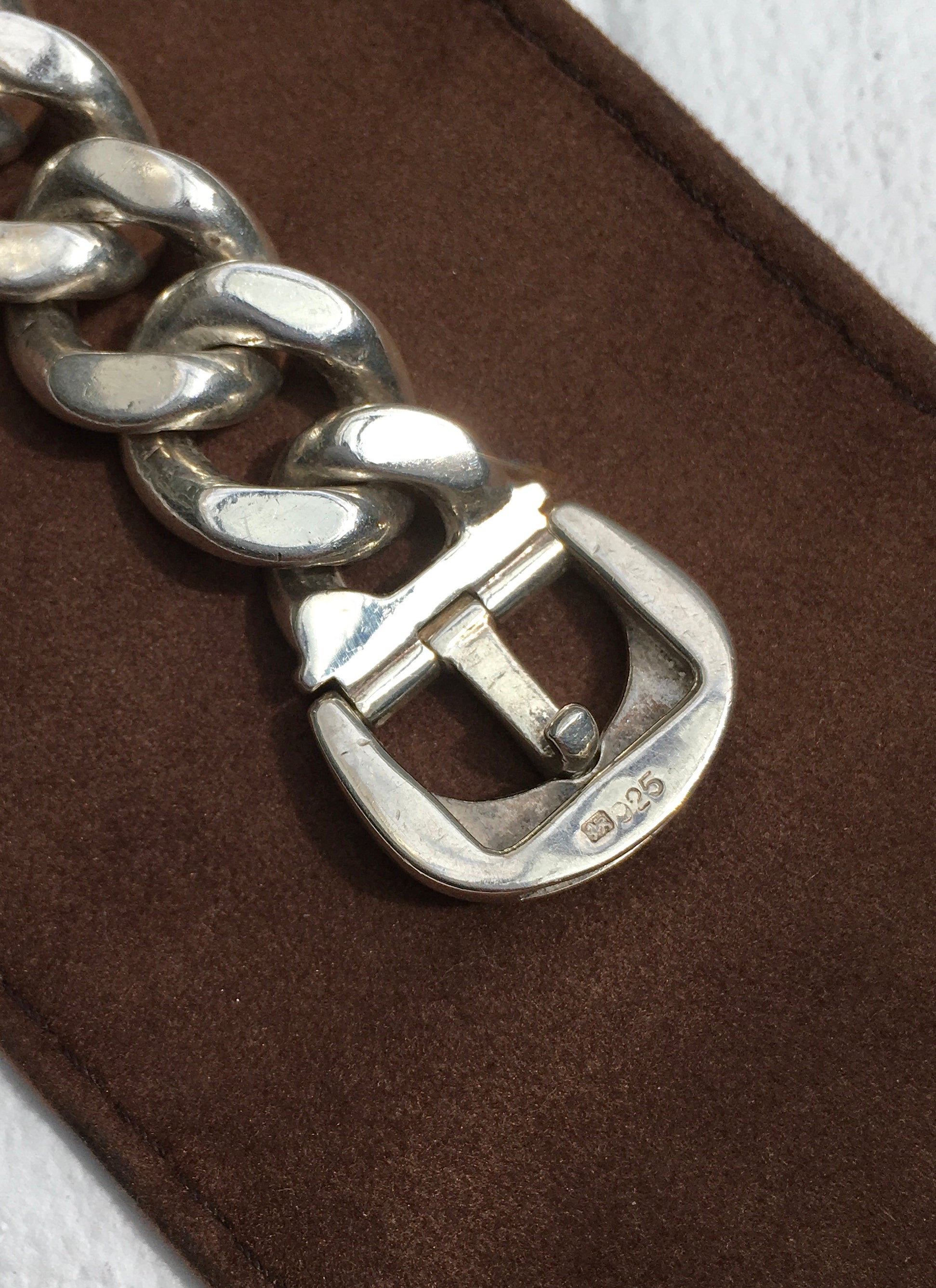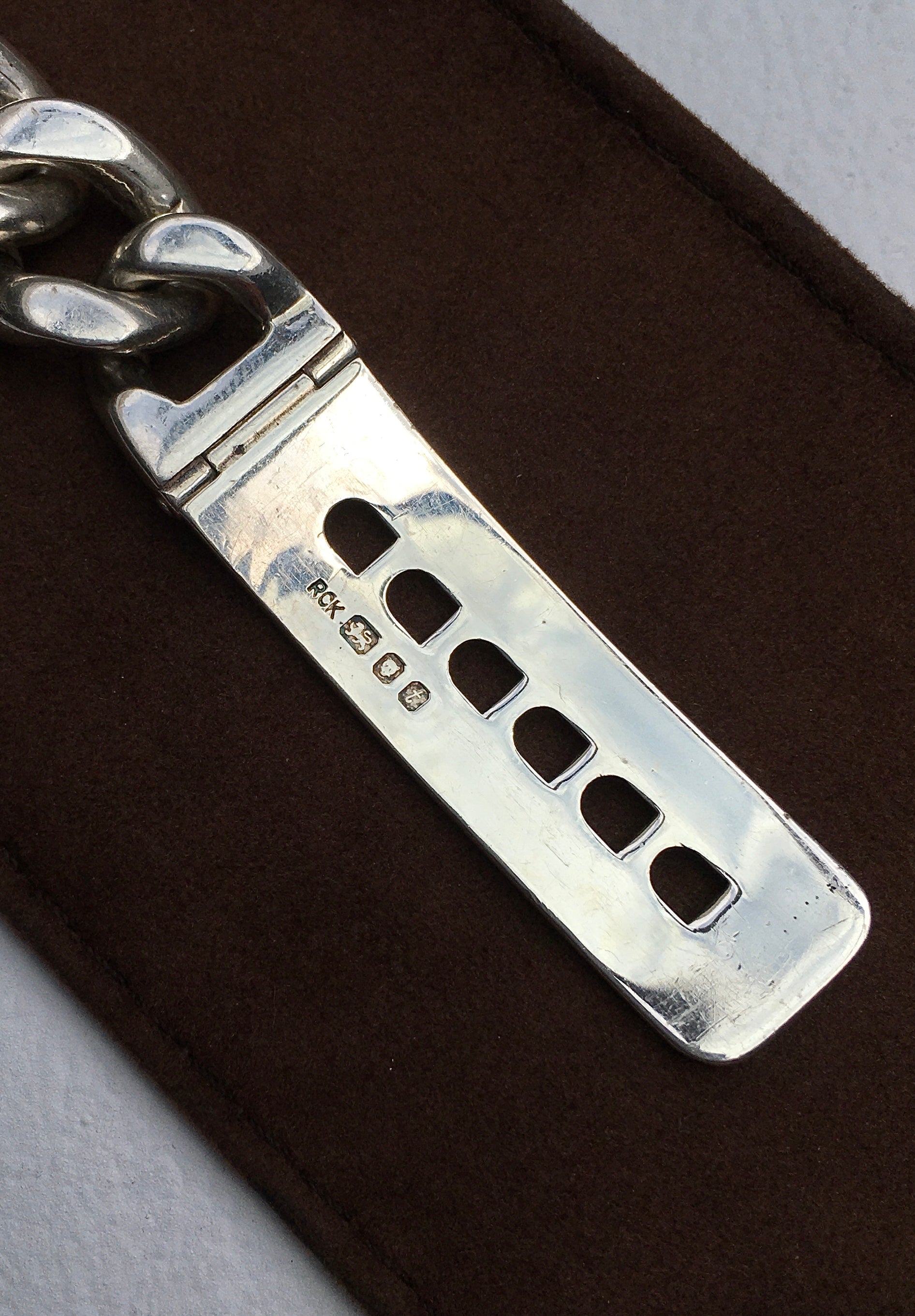 The professionally polished HEAVY curb link bracelet (London 1974) is presented in outstanding condition. It boasts bold hallmarks to two of the links as well as more in depth assay and fineness markings to both ends of King’s iconic buckle clasp fastening