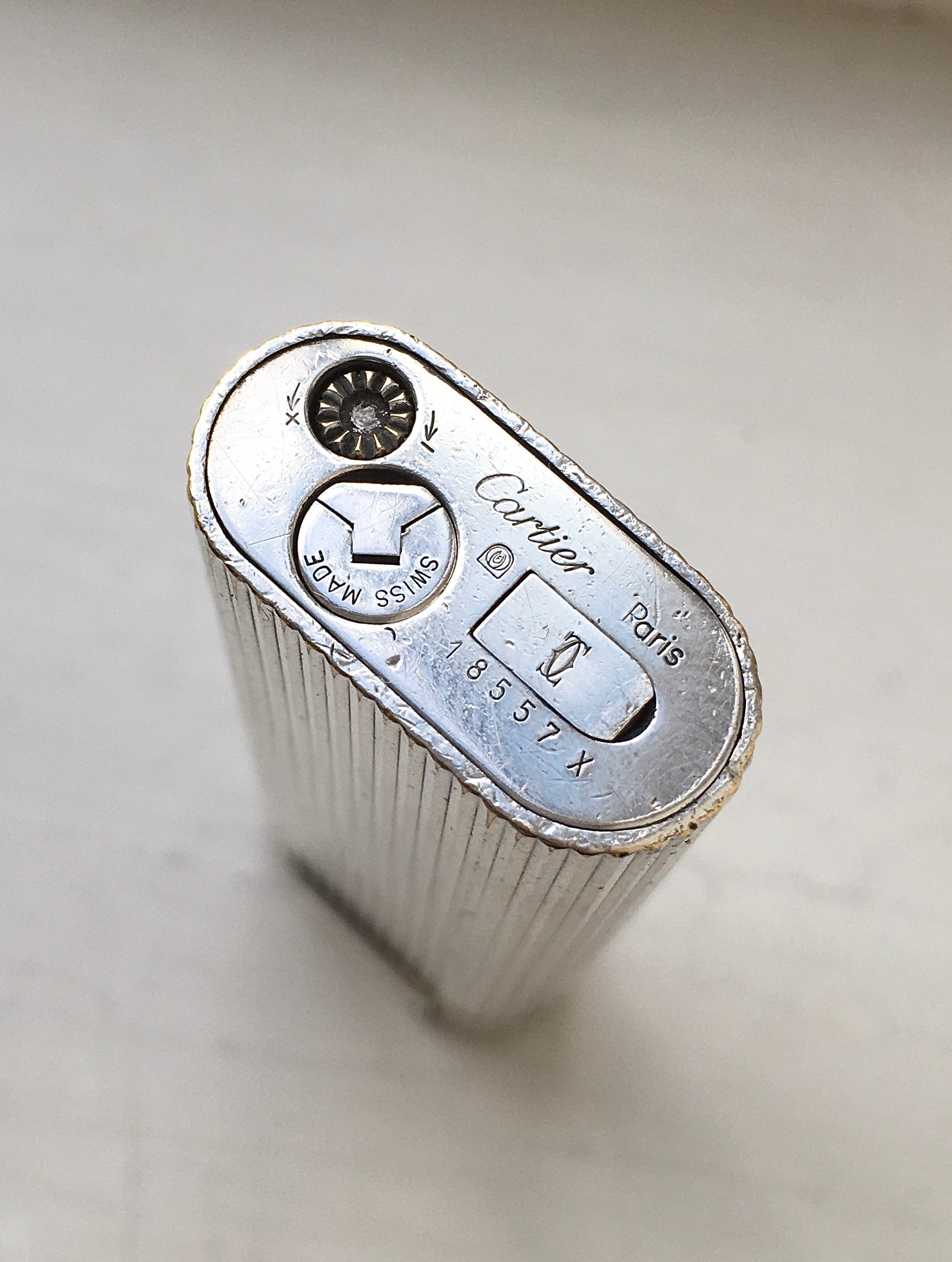 A true classic in the Tobacciana world is this 1980s 30 micron silver plated Cartier ‘Godron’ butane lighter