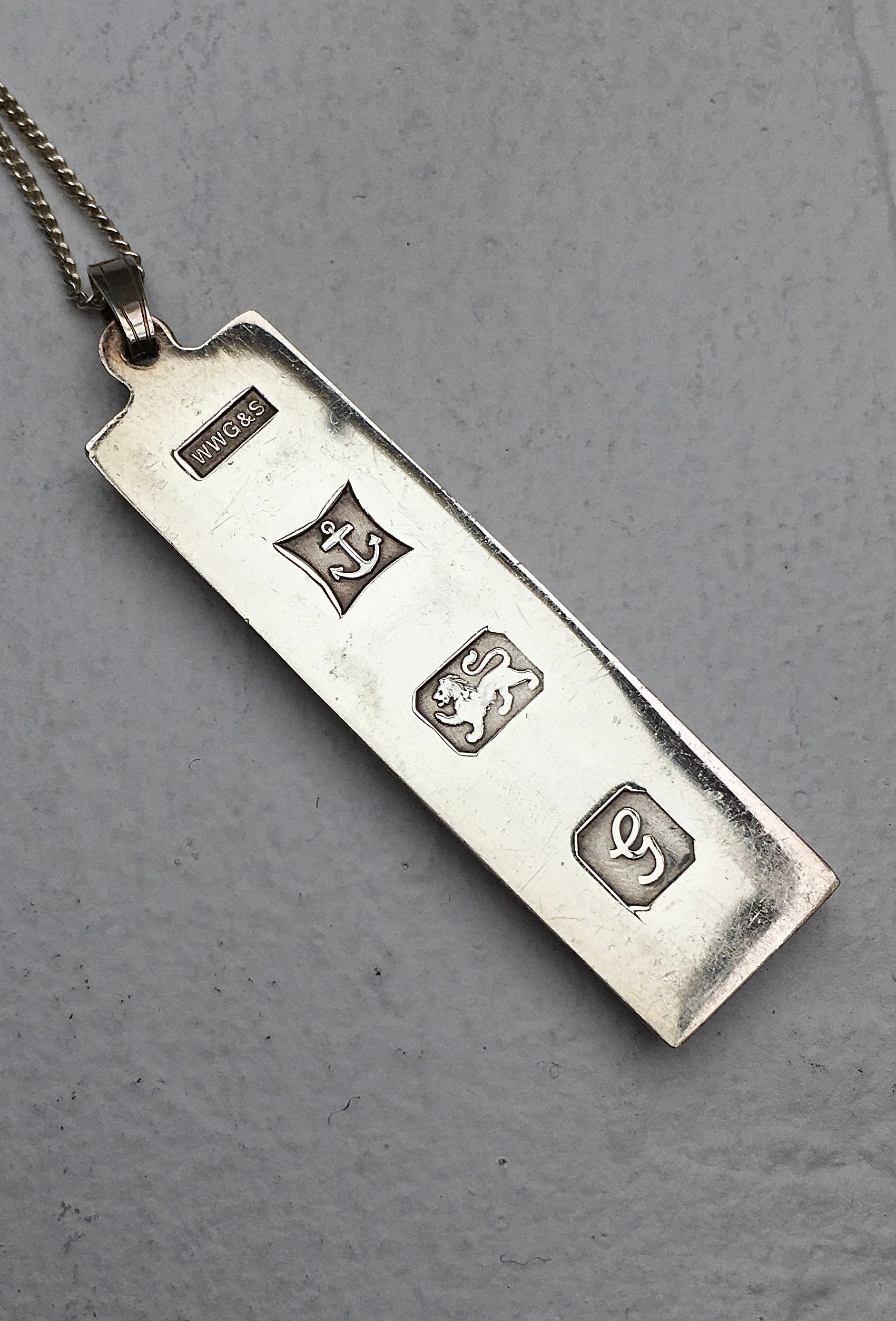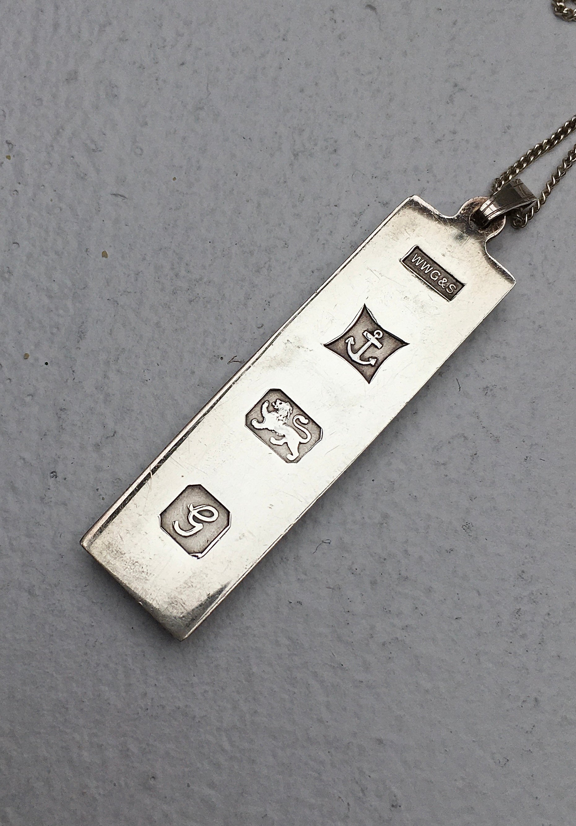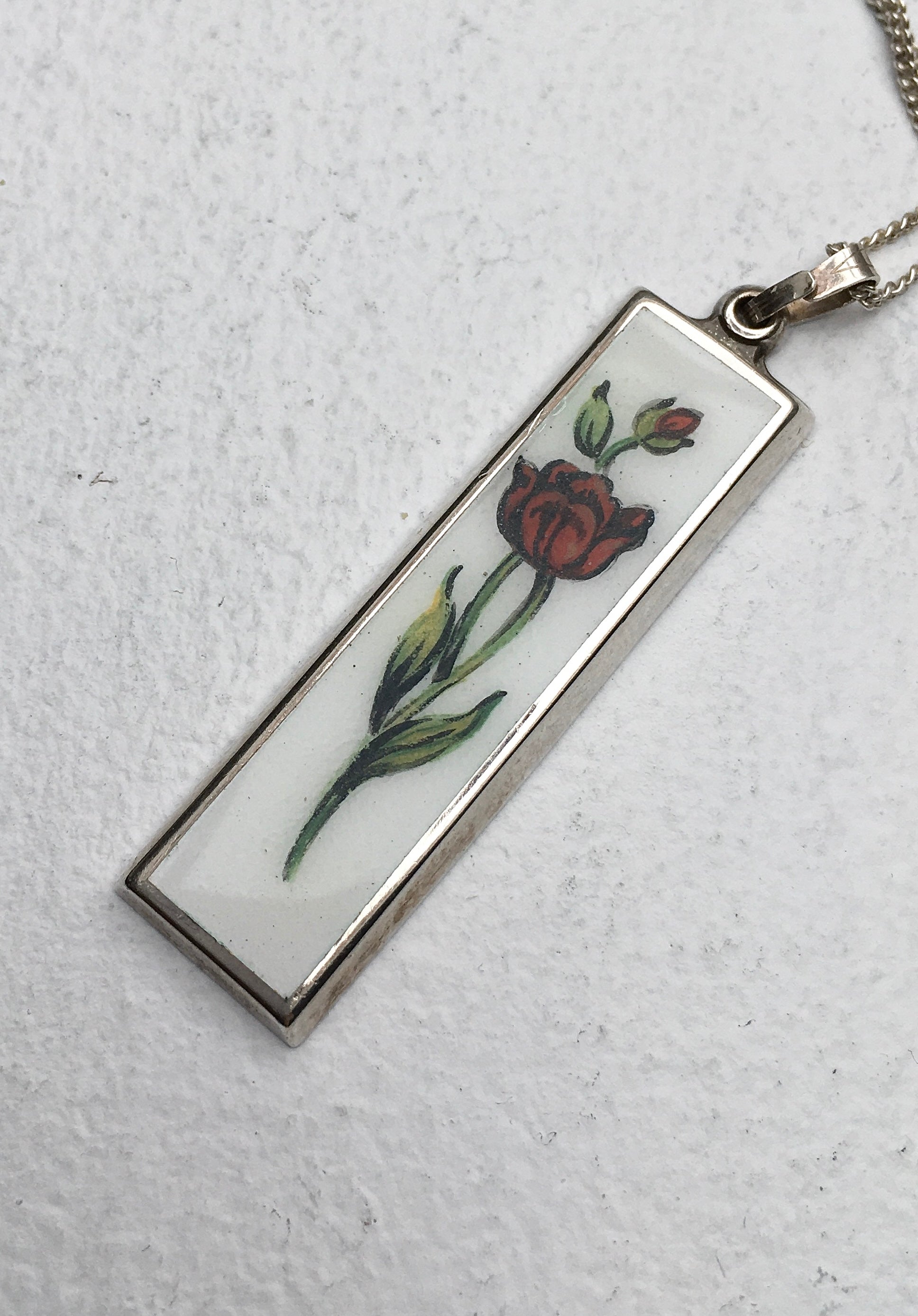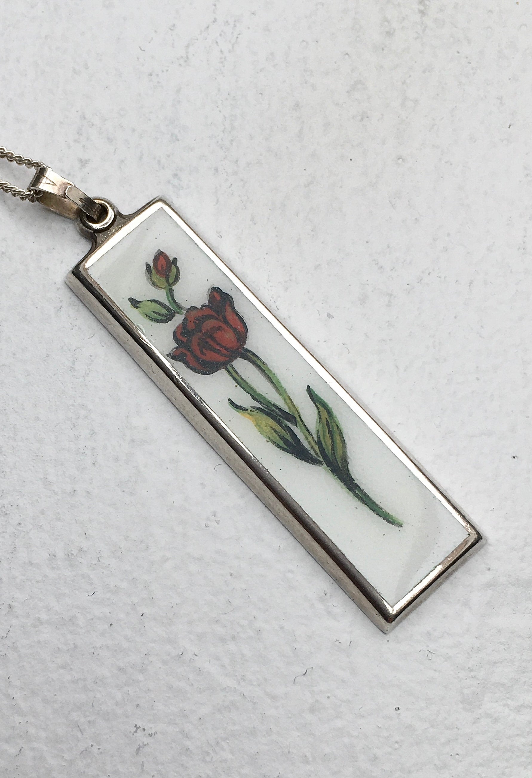 A vintage 1980s Sterling Silver ingot with an enamel rose panel
