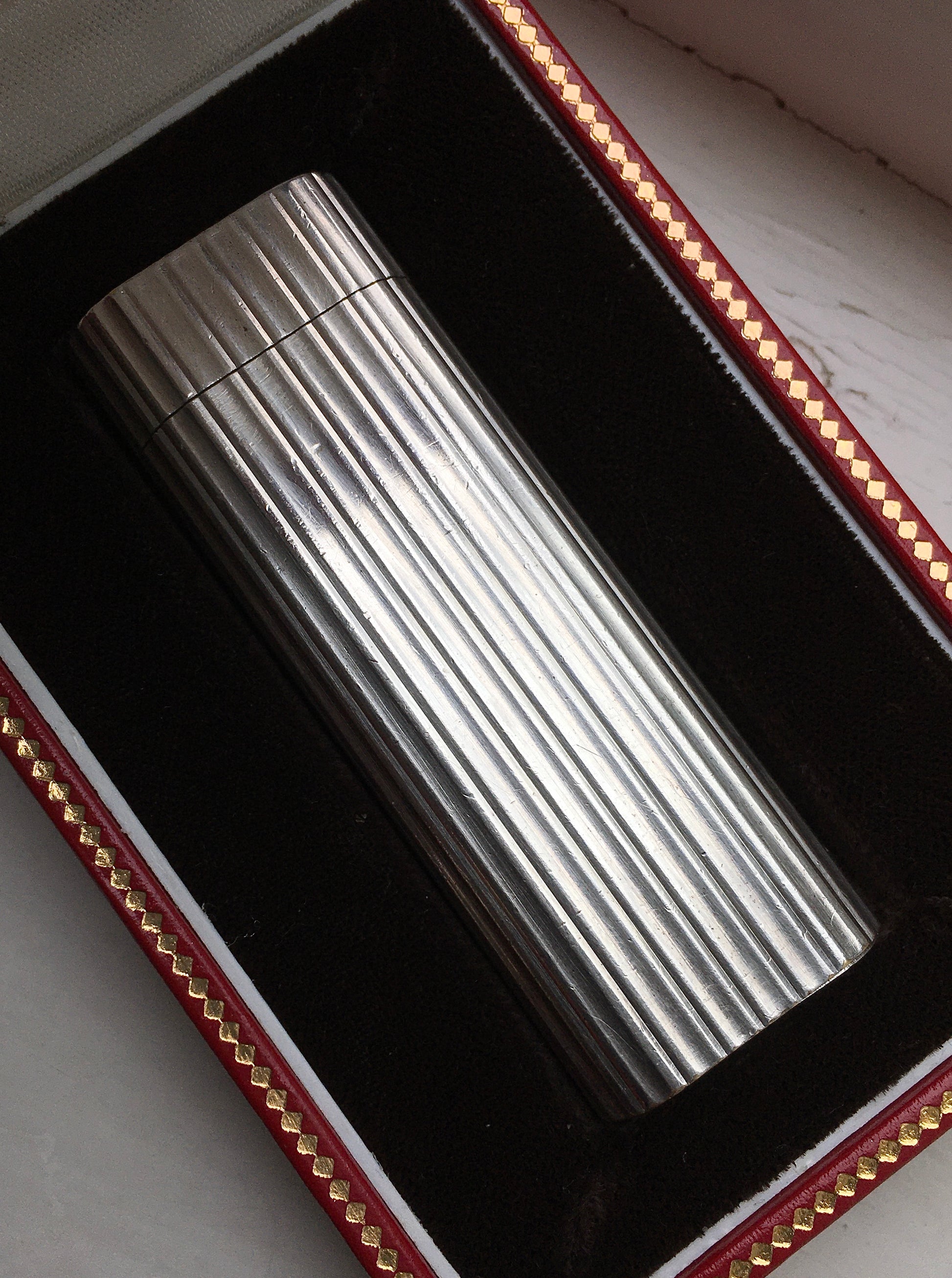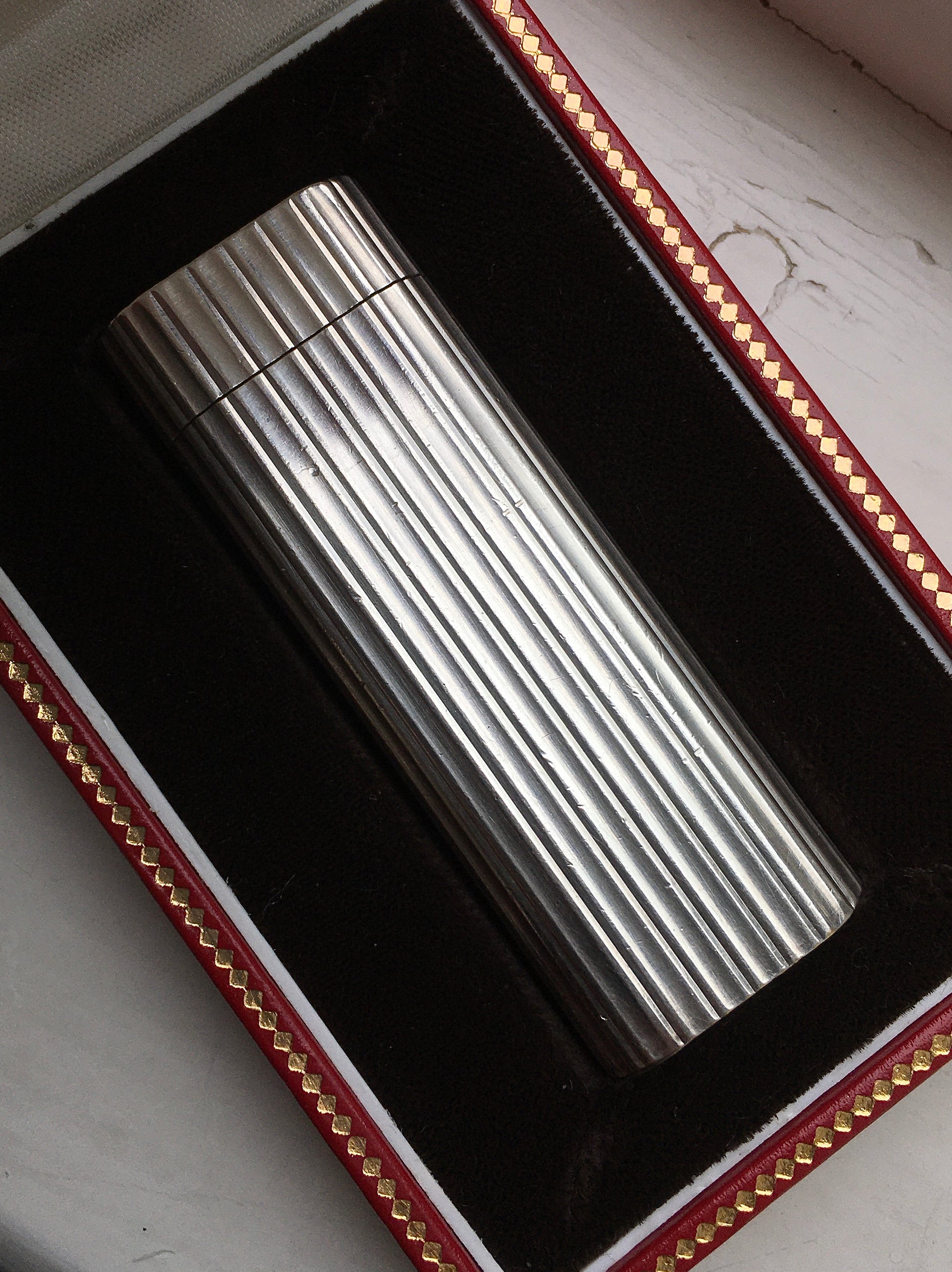 A true classic in the Tobacciana world is this 1980s 30 micron silver plated Cartier ‘Godron’ butane lighter