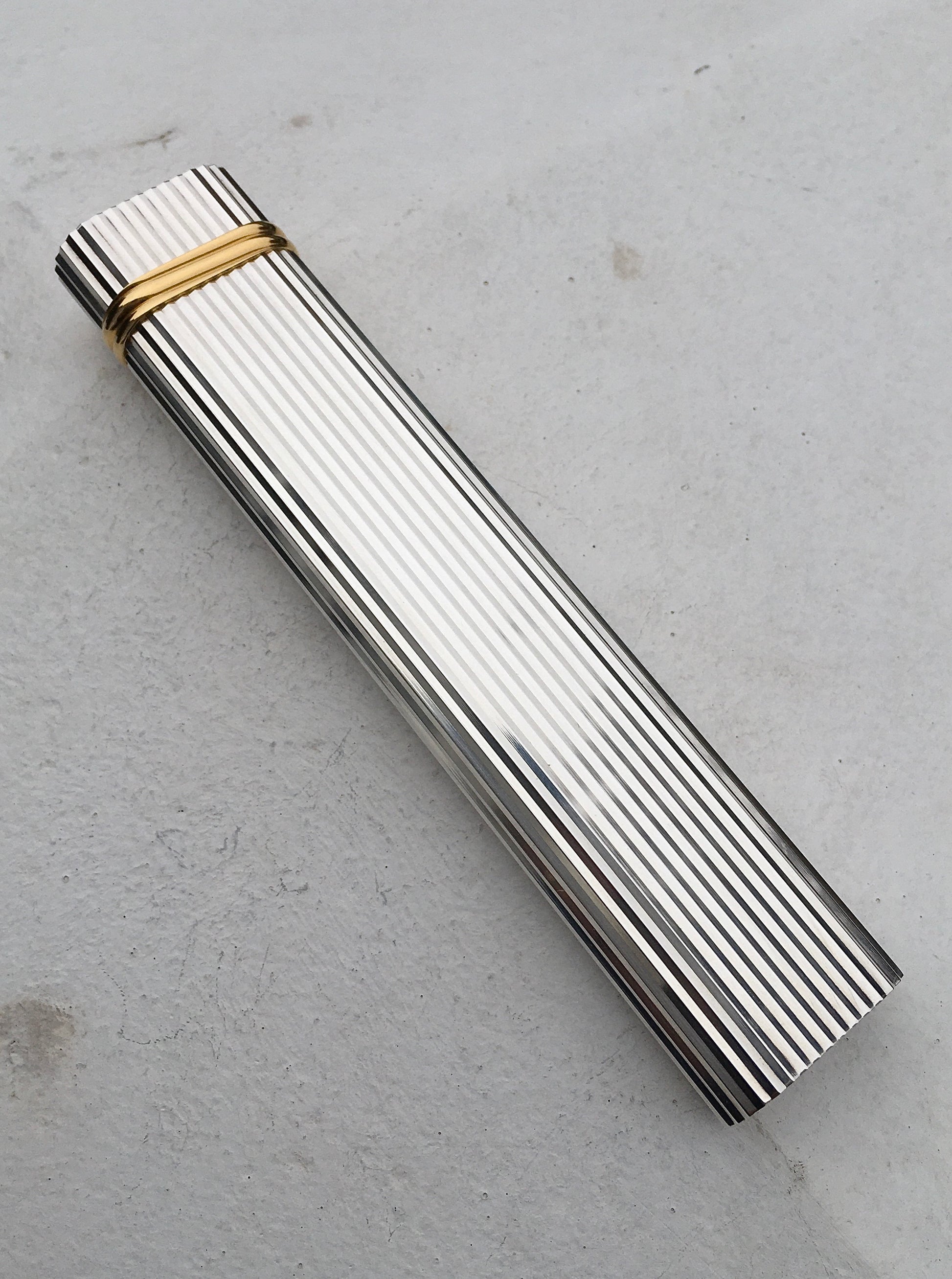 A MINT 1980s silver plated Cartier Trinity Longboy Table Lighter