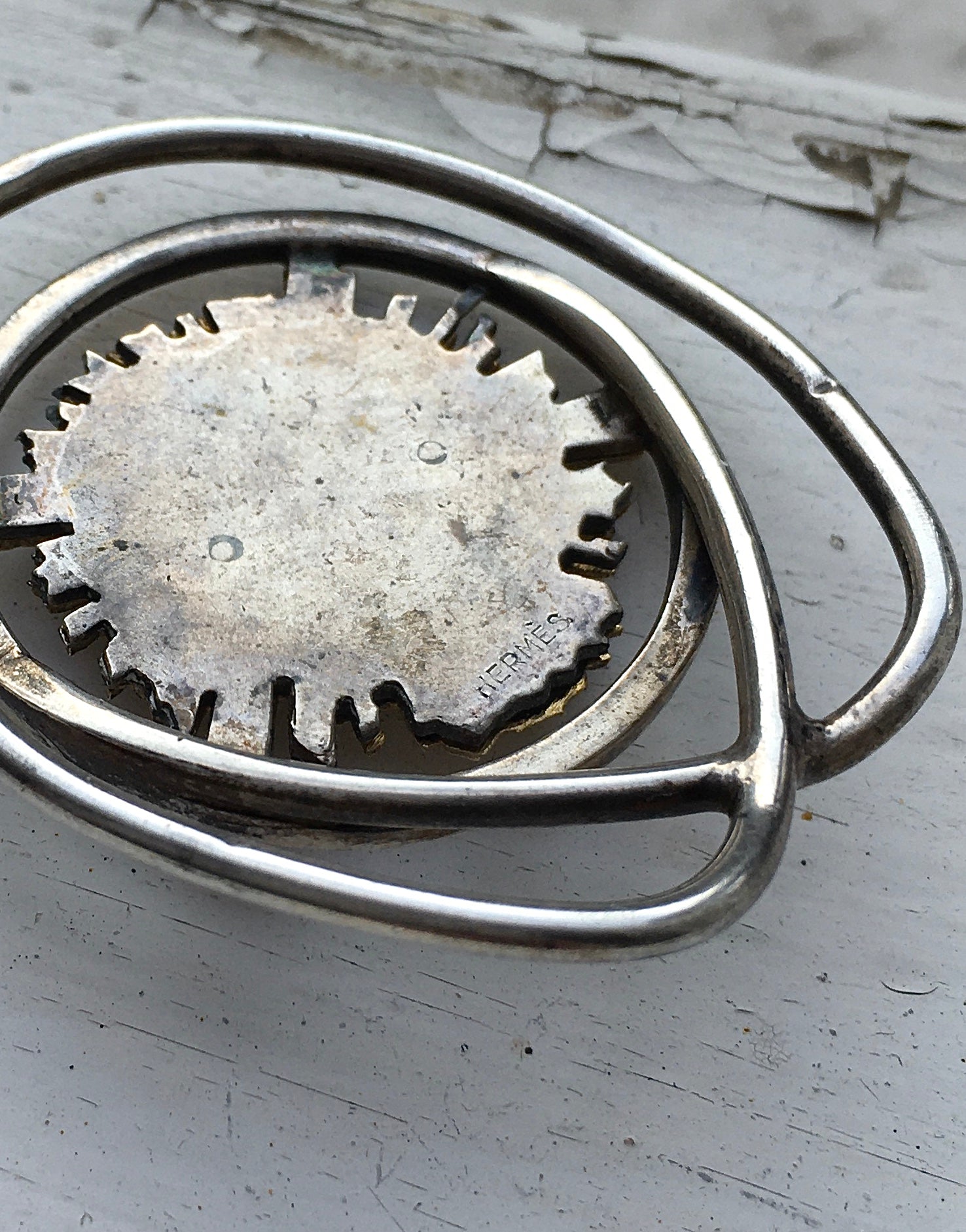 Centre set is the vermeil head of Medusa, in Greek mythology the Gorgon that Hermes aided his half brother Perseus in killing. The reverse of the head is stamped ‘HERMÈS’ at the base