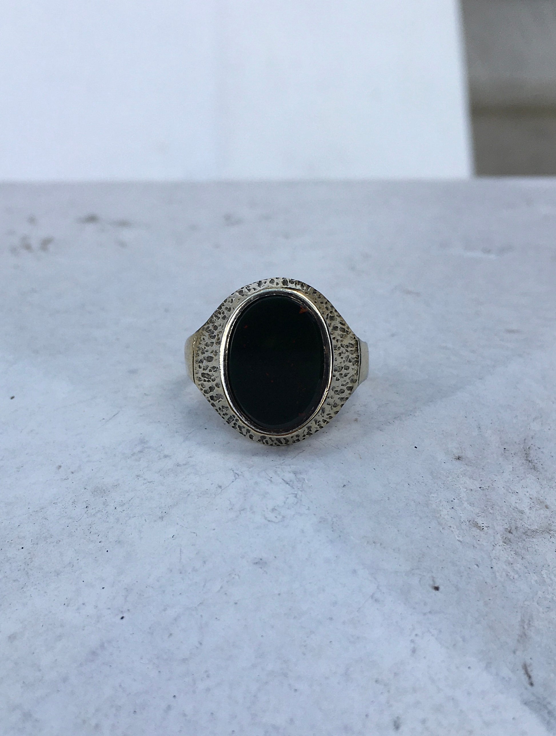 Vintage circa 1970 Sterling silver vermeil signet ring set with flat top cut Bloodstone